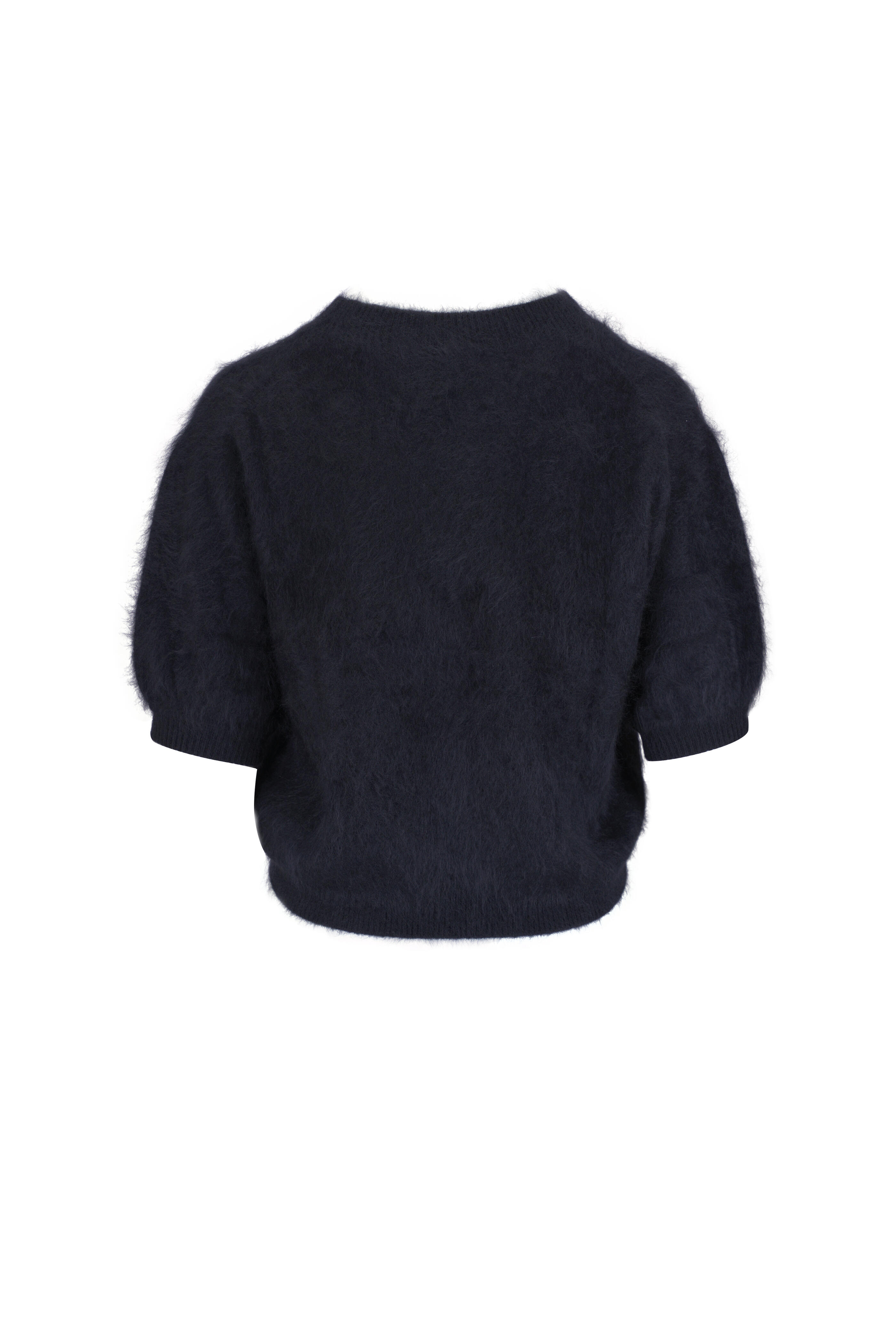 Crew neckline. Ribbed trims. Short sleeves. Imported. 100% cashmere.