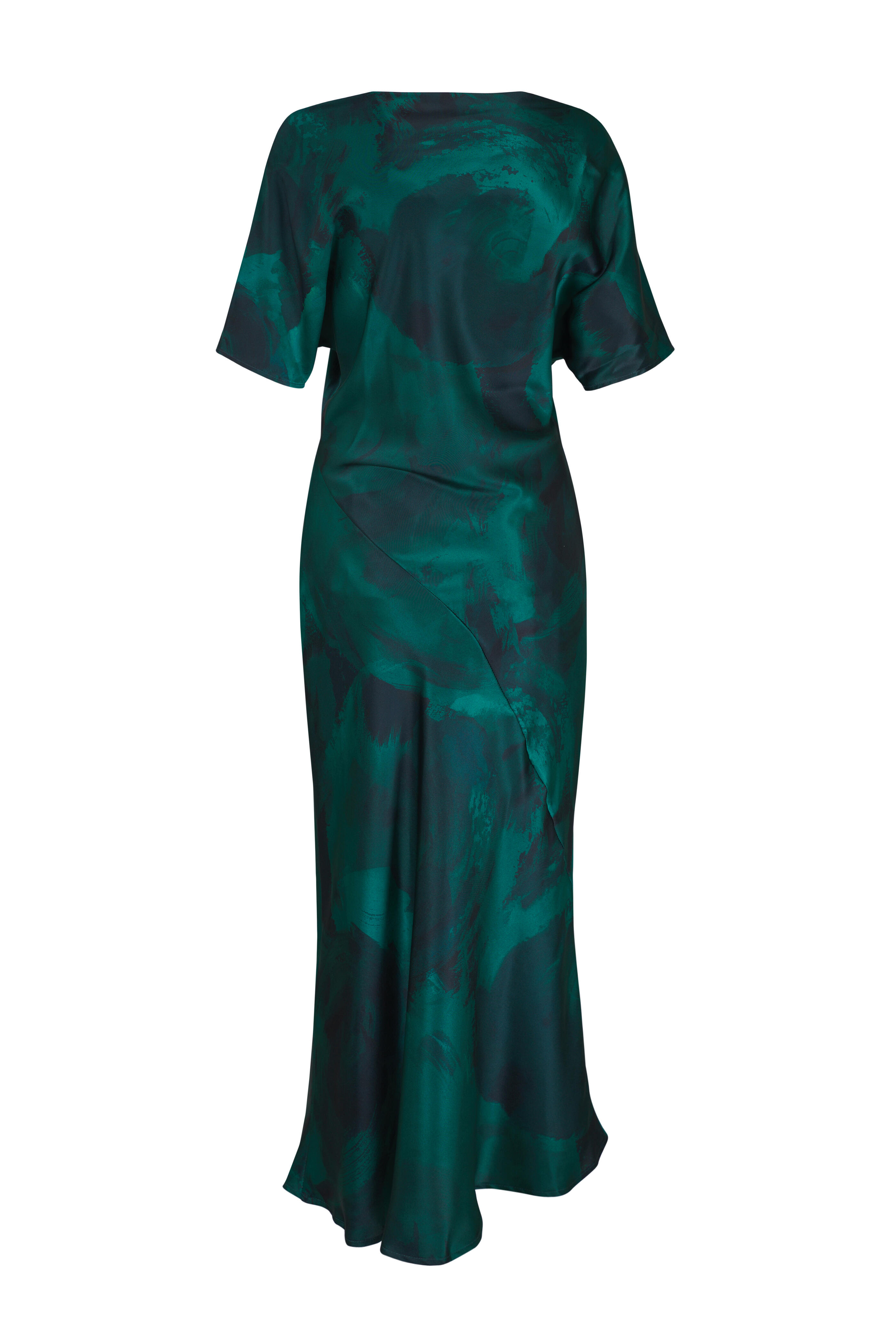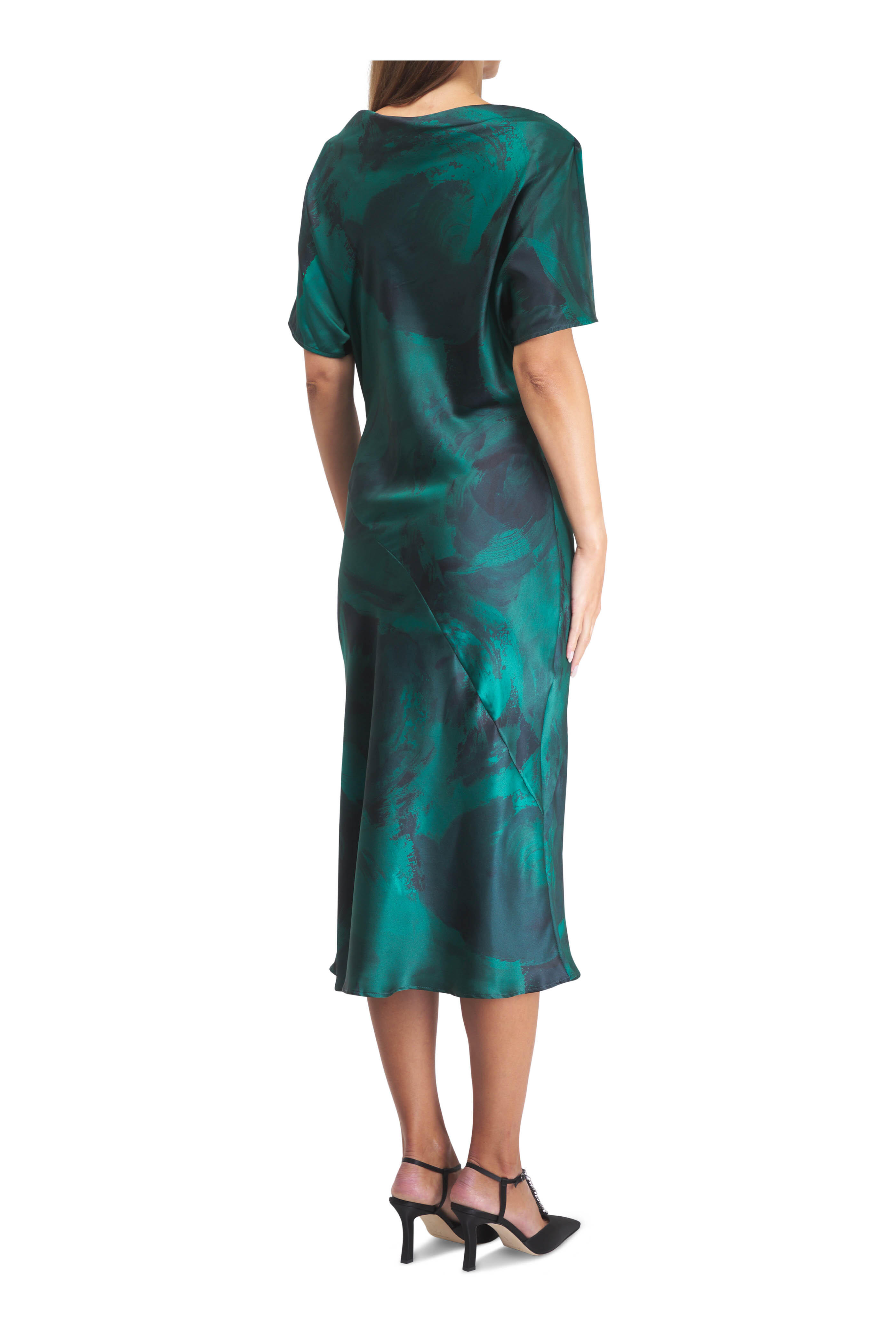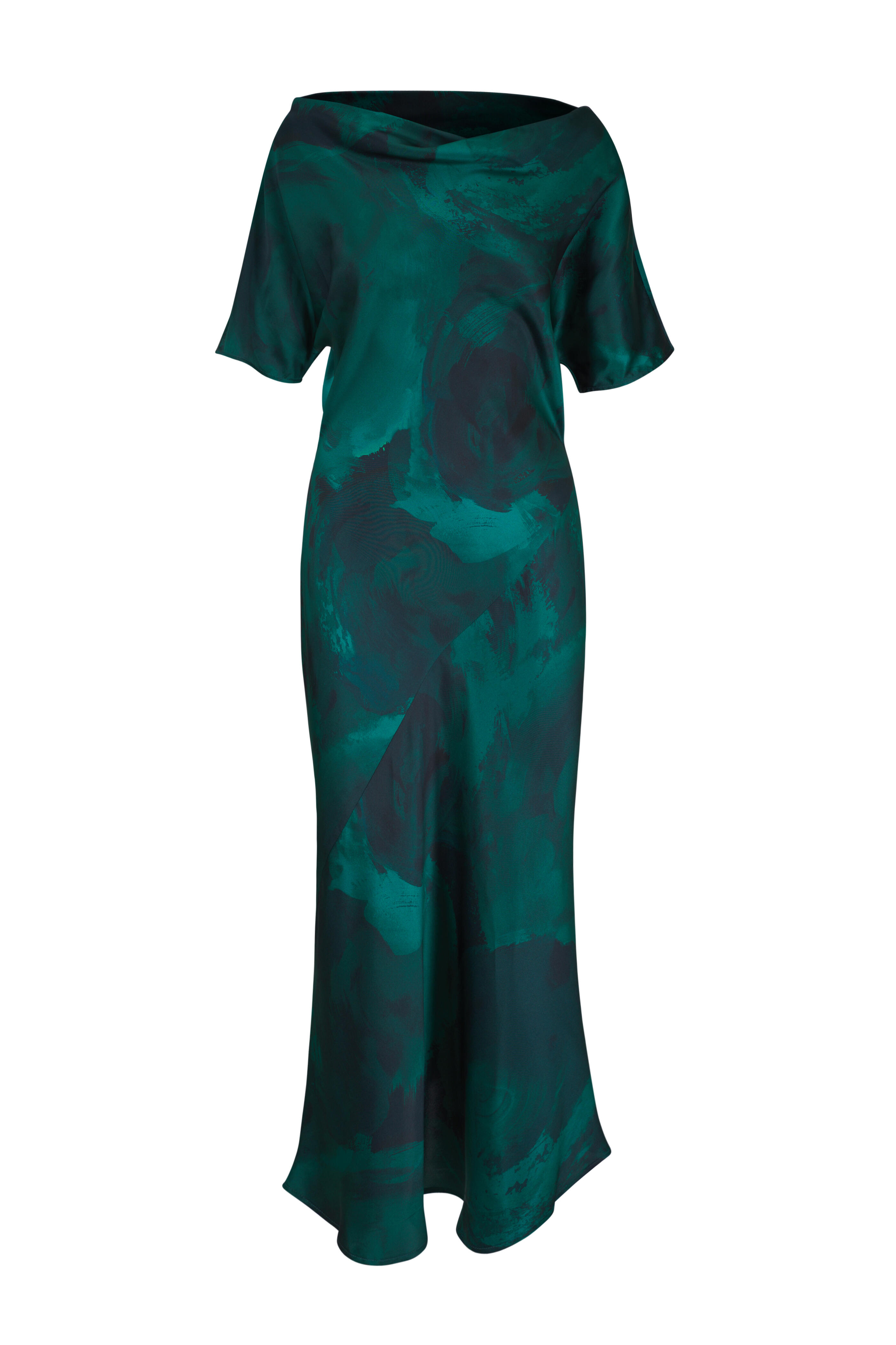 Cowl neckline. Slip-on style. Made in Italy. Approximately 50" shoulder to hem (measurements taken from size 4). 100% silk. Dry clean.