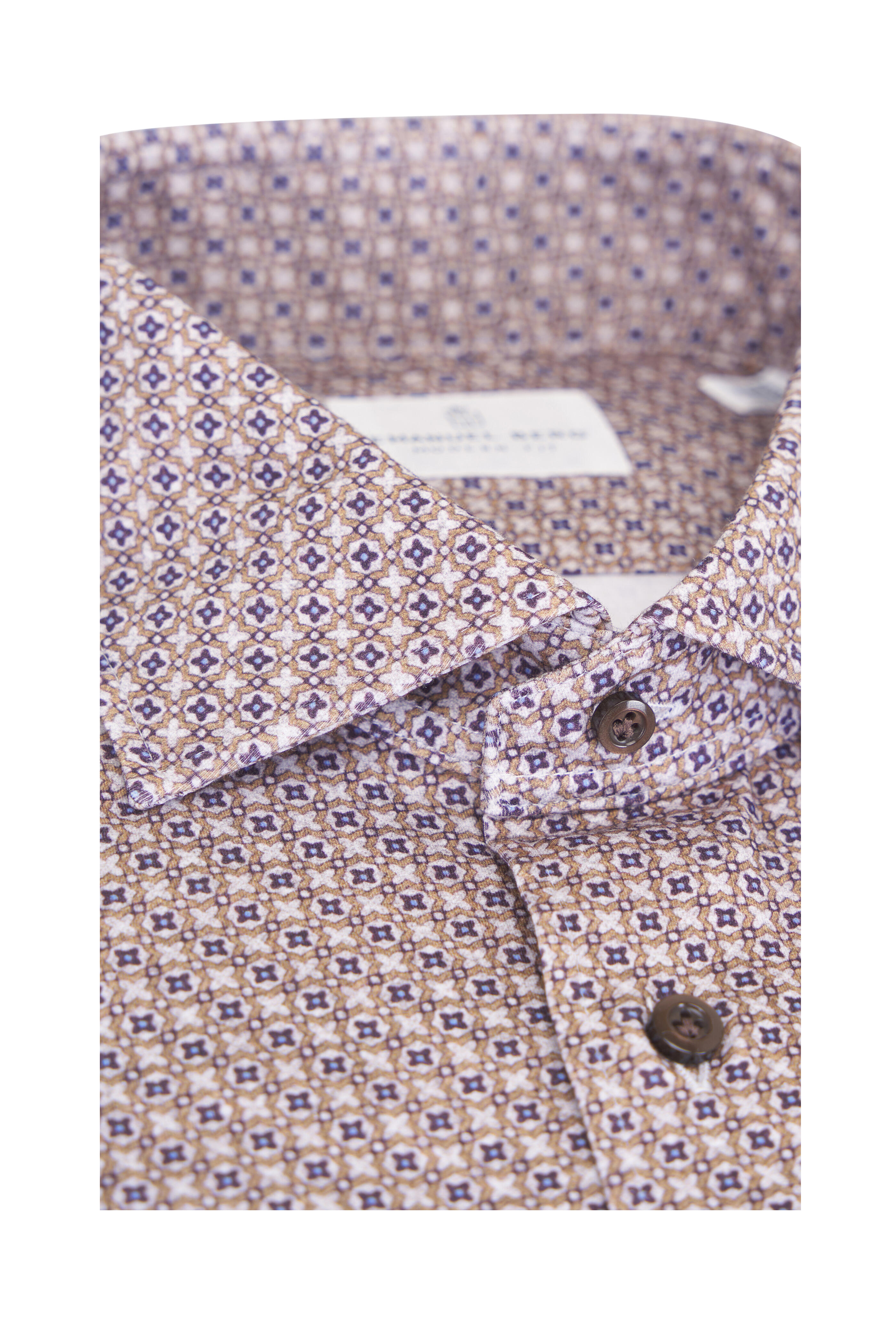 Brown Geometric Print Jersey Button Down Shirt