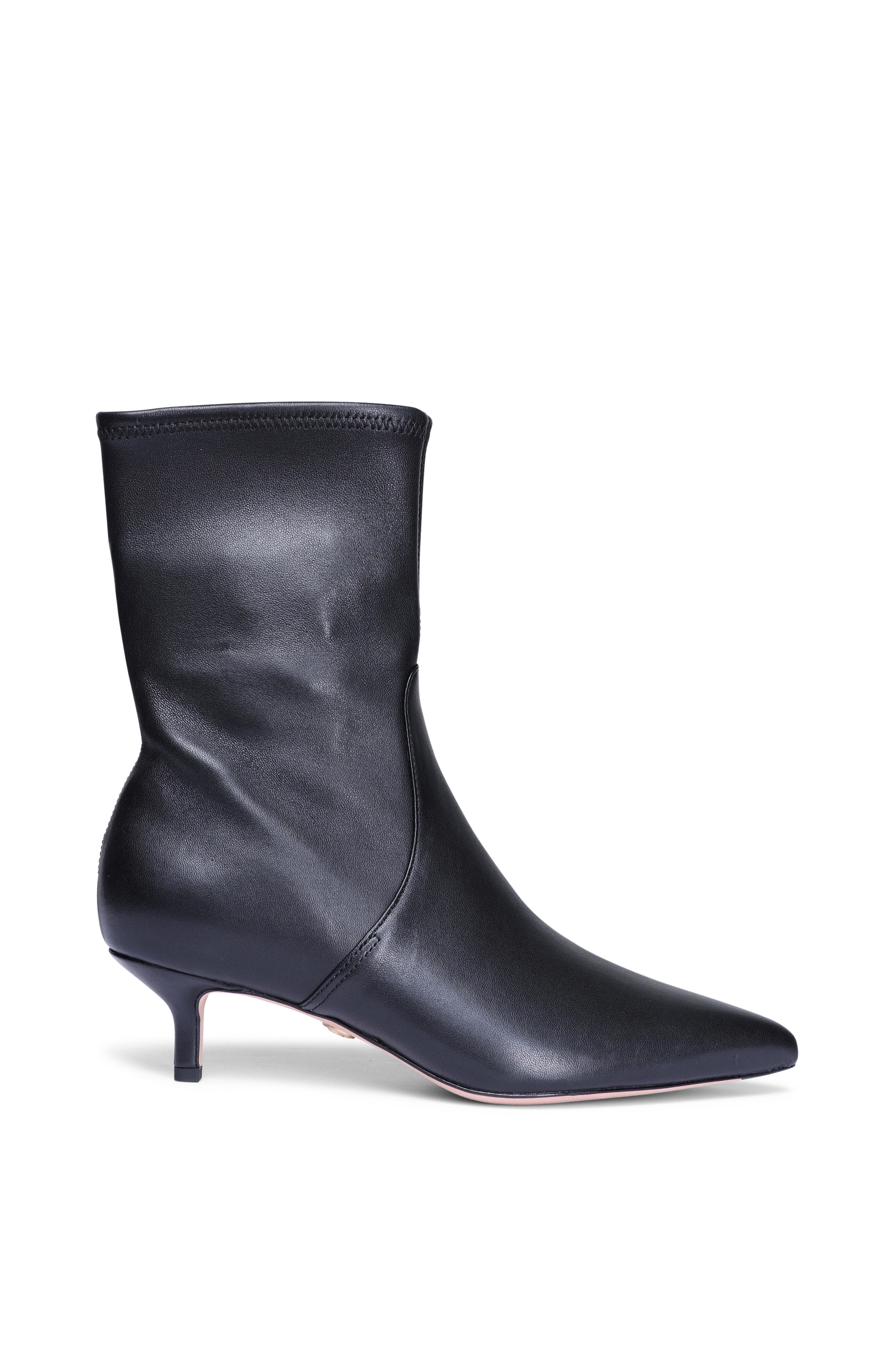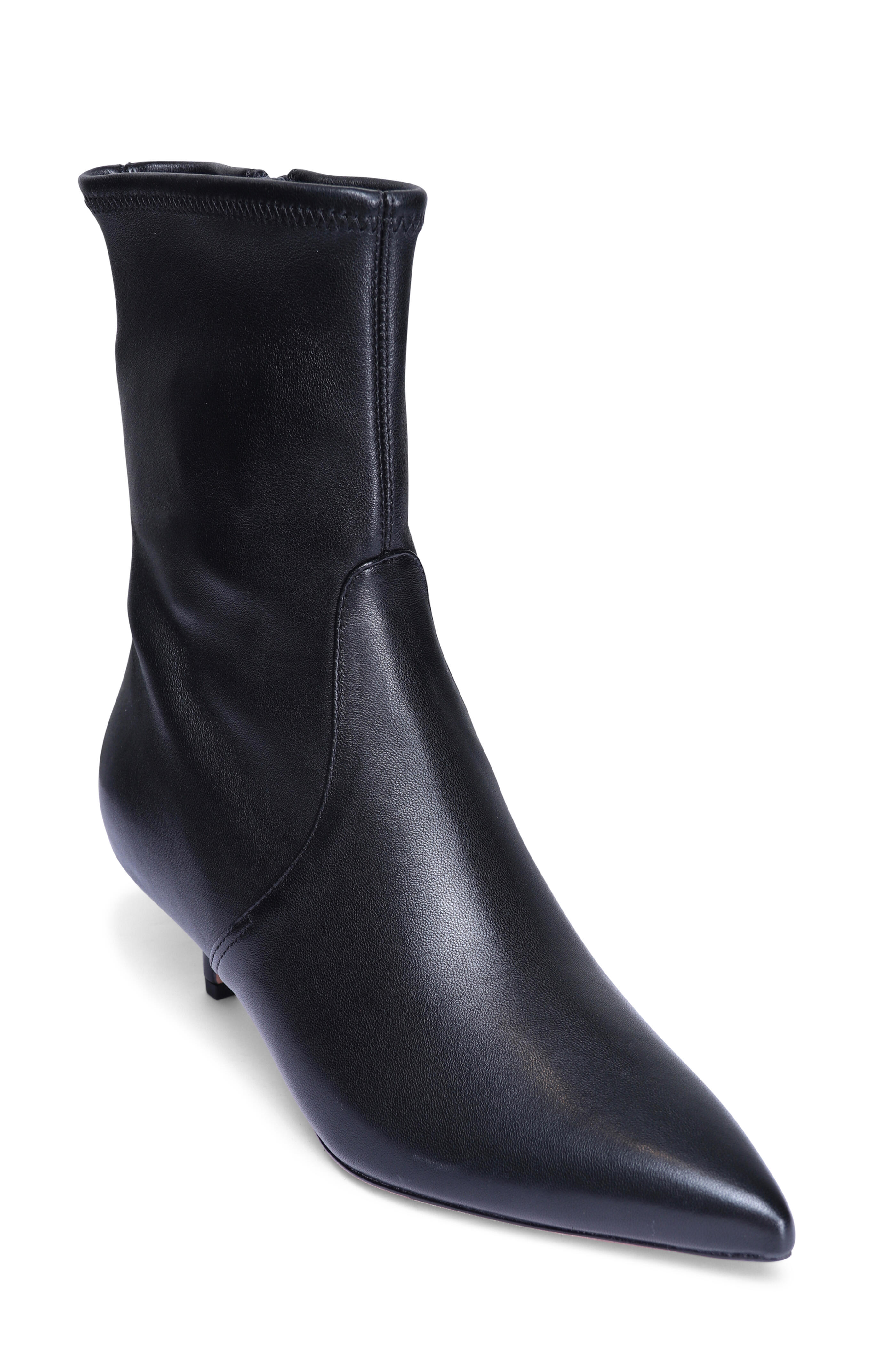 Leather upper, lining, and sole. Pointed toe. Side zip closure. Stretchy shaft. Tapered kitten heel. Imported. Heel measurement: 45mm.