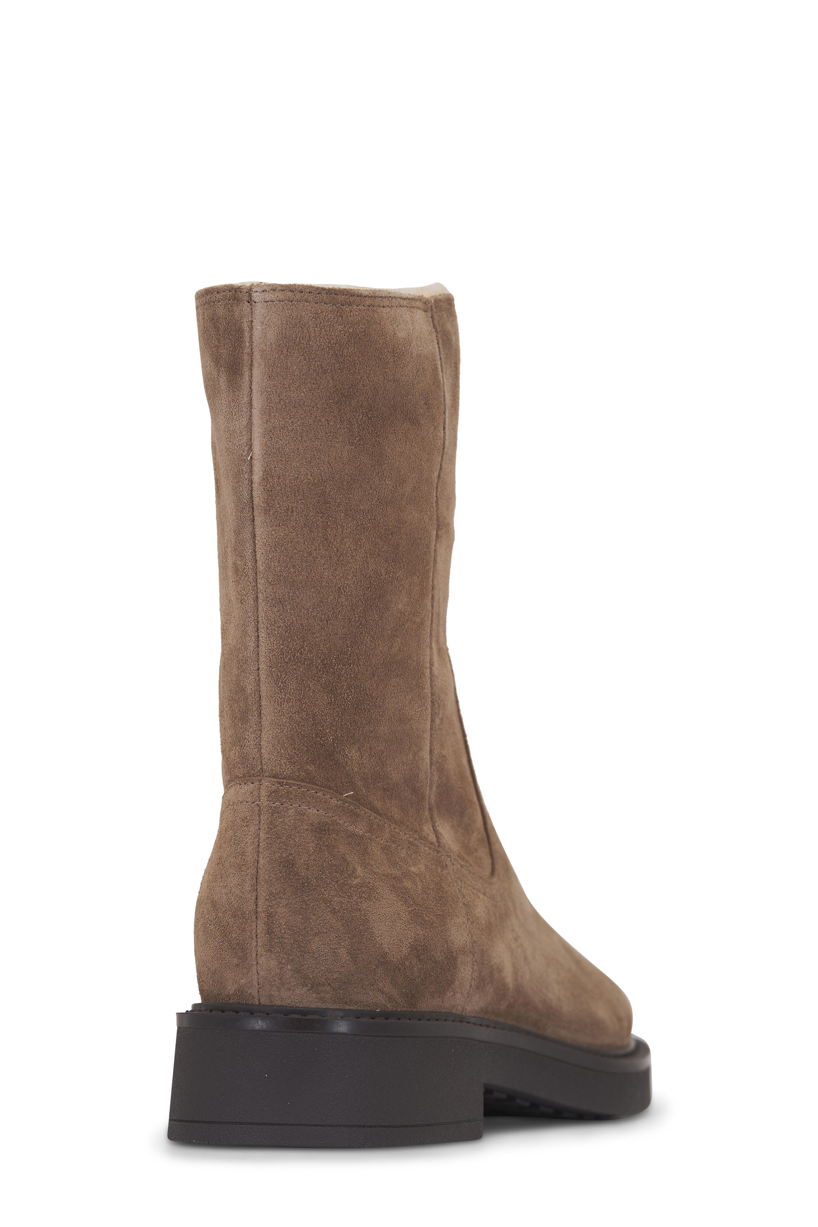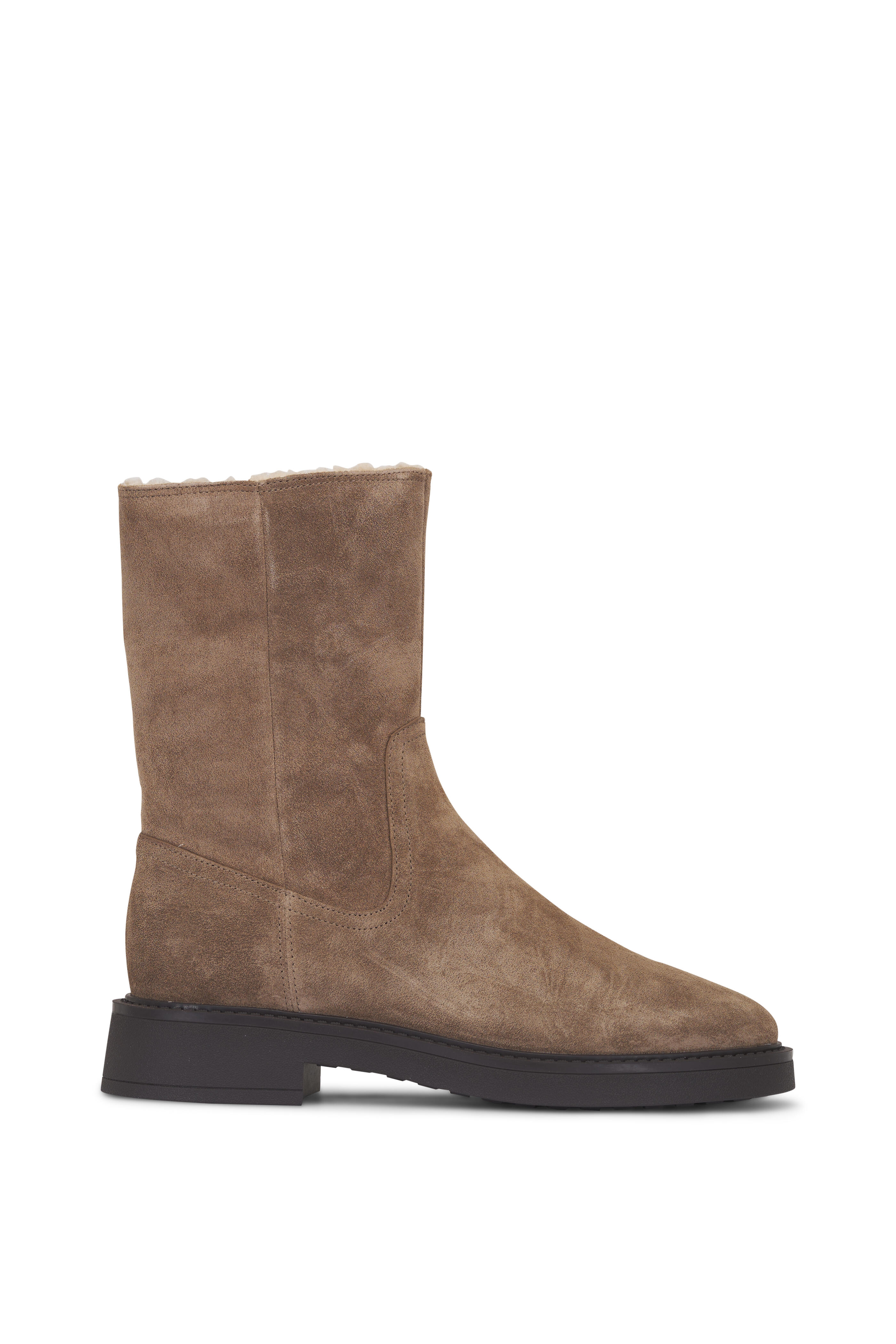 Suede upper. Round toe. Side zip closure. Sheerling lining. Rubber sole. Imported. Heel Height: 1.25”.
