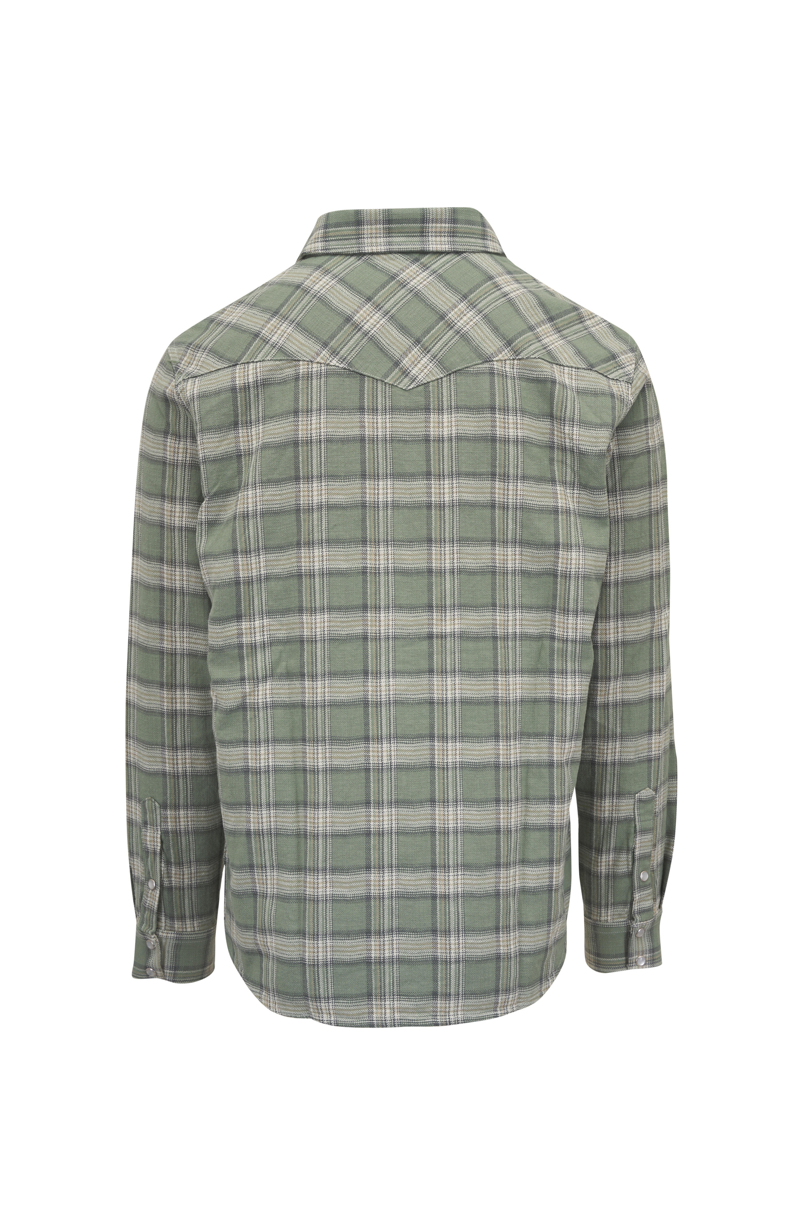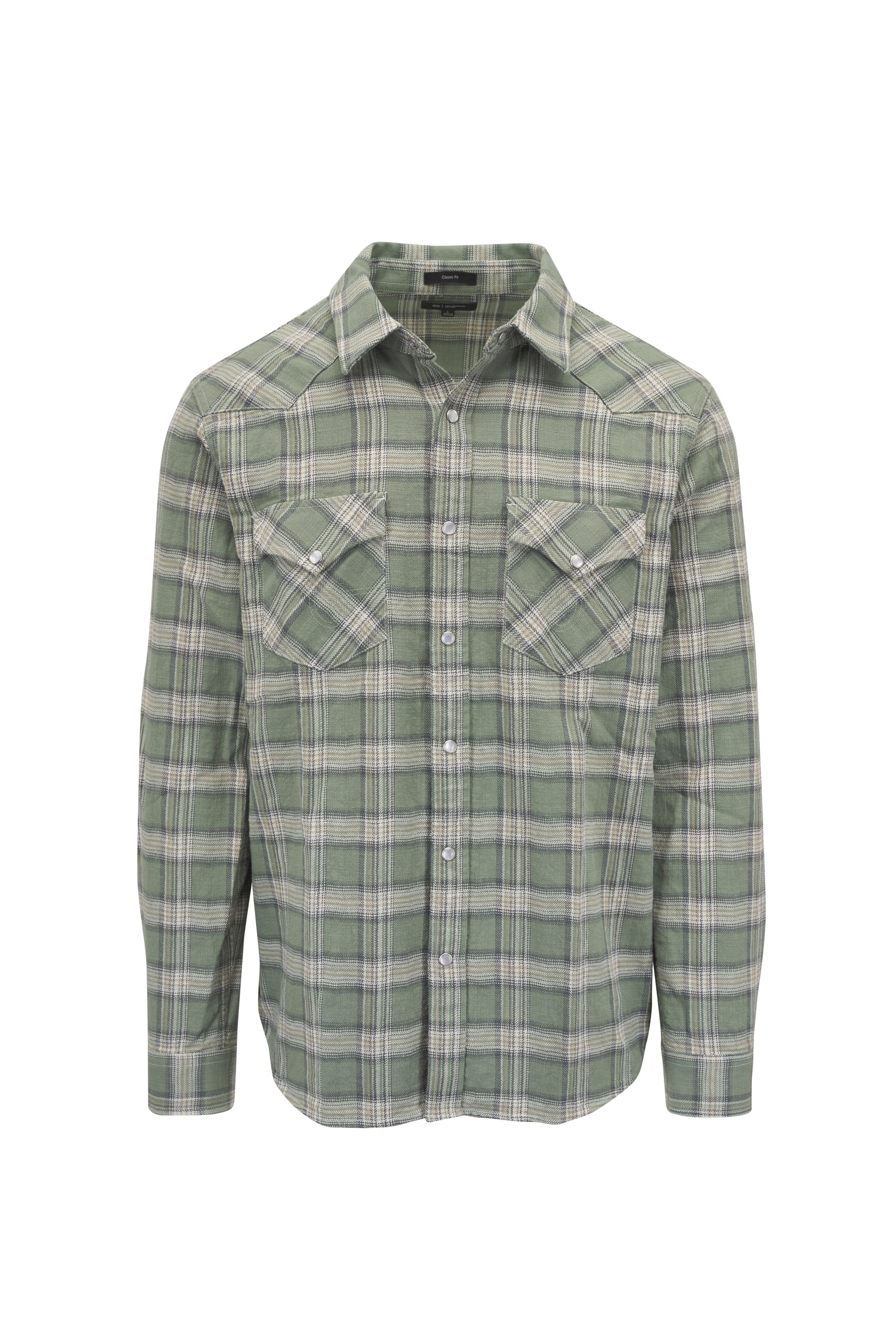 Point collar. Front snap button placket. Chest flap pockets with snap buttons. Double snap button cuffs. Imported. Approximately 28" shoulder to hem (measurements taken from size L). Classic fit. 100% cotton. Machine wash.