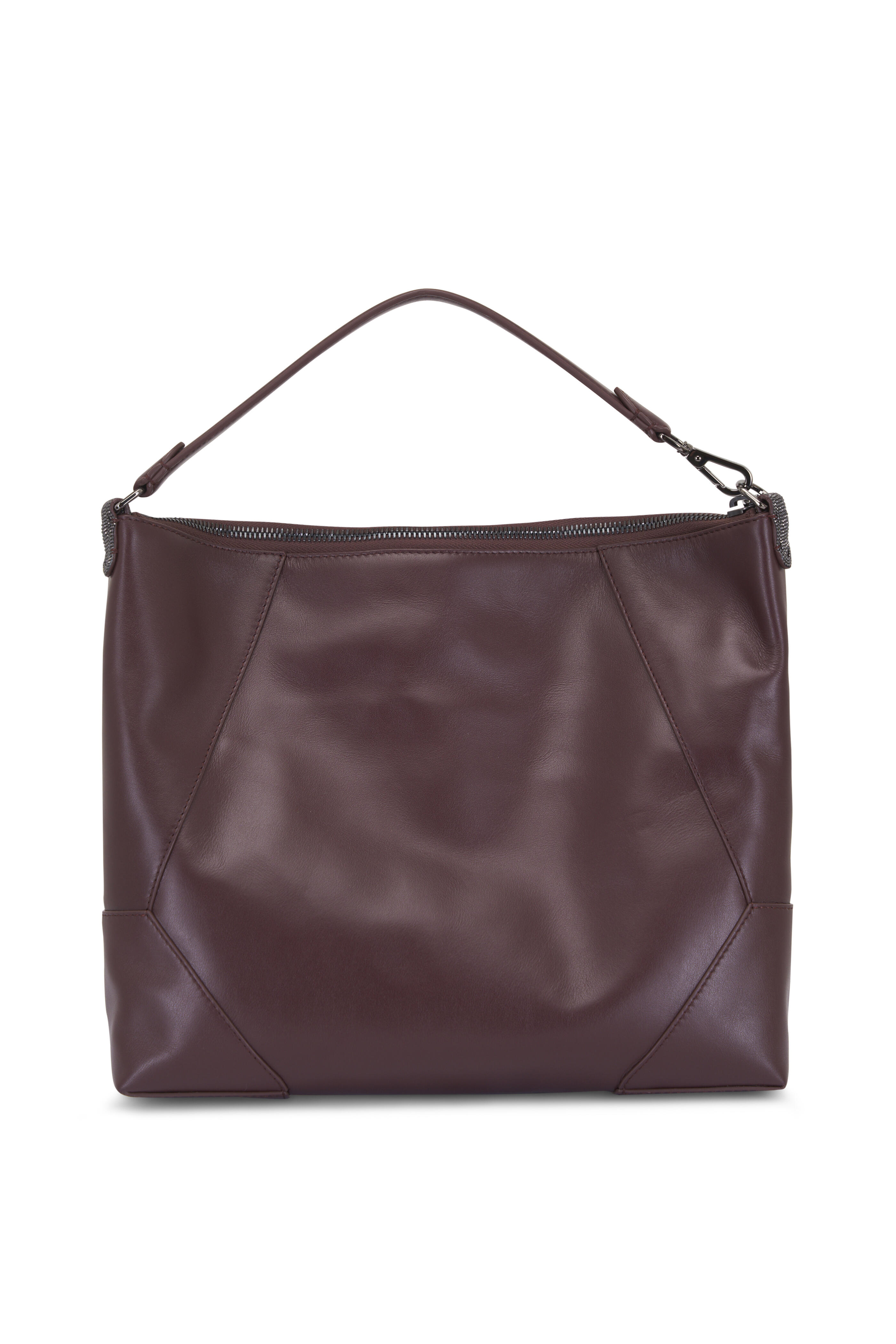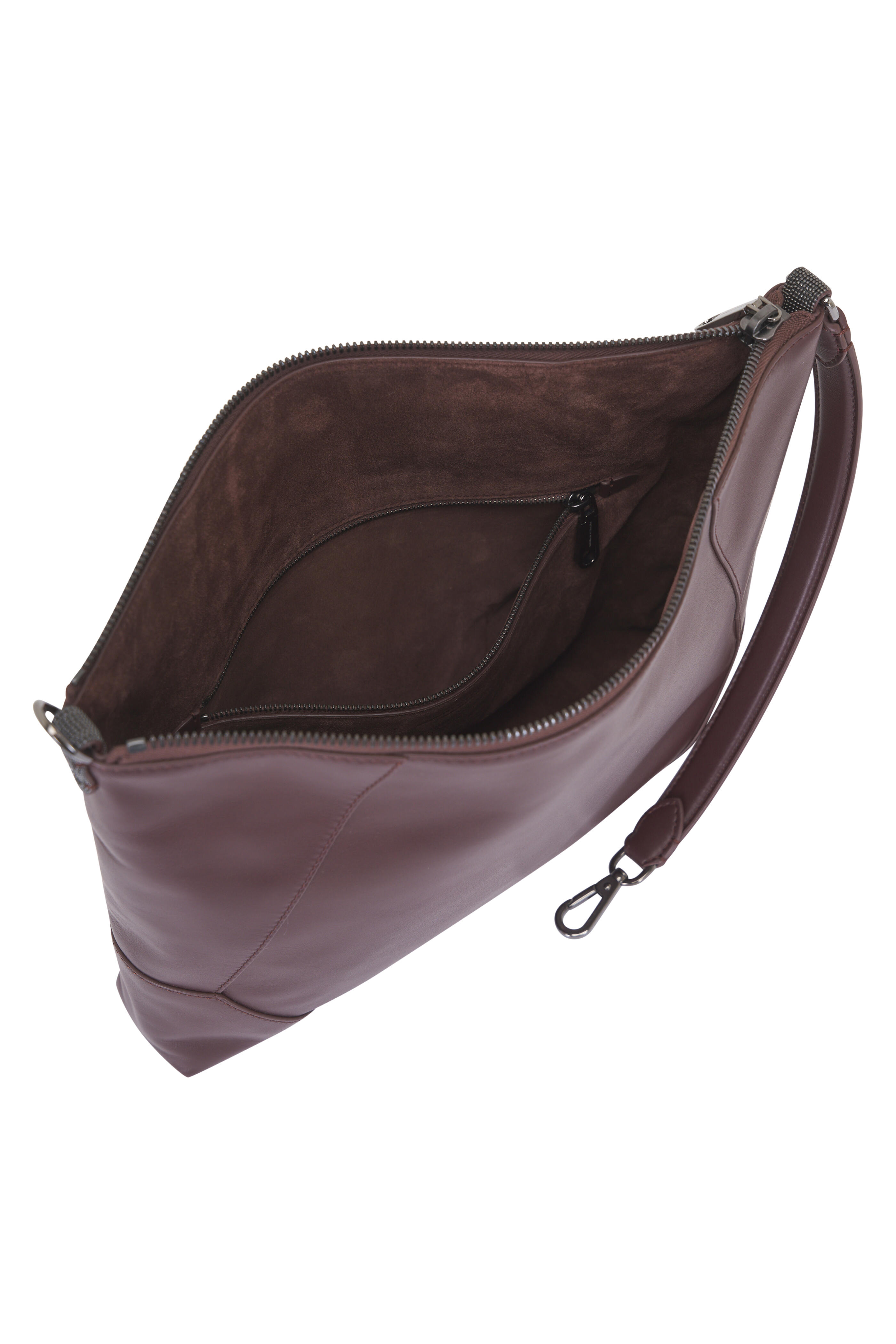 Leather. Top zip closure. Top handle. Adjustable and detachable shoulder strap. Internal pocket with zip closure. Suede lining. Monili detailing. Made in Italy. Length: 12.99". Height: 10.24". Width: 2.17".