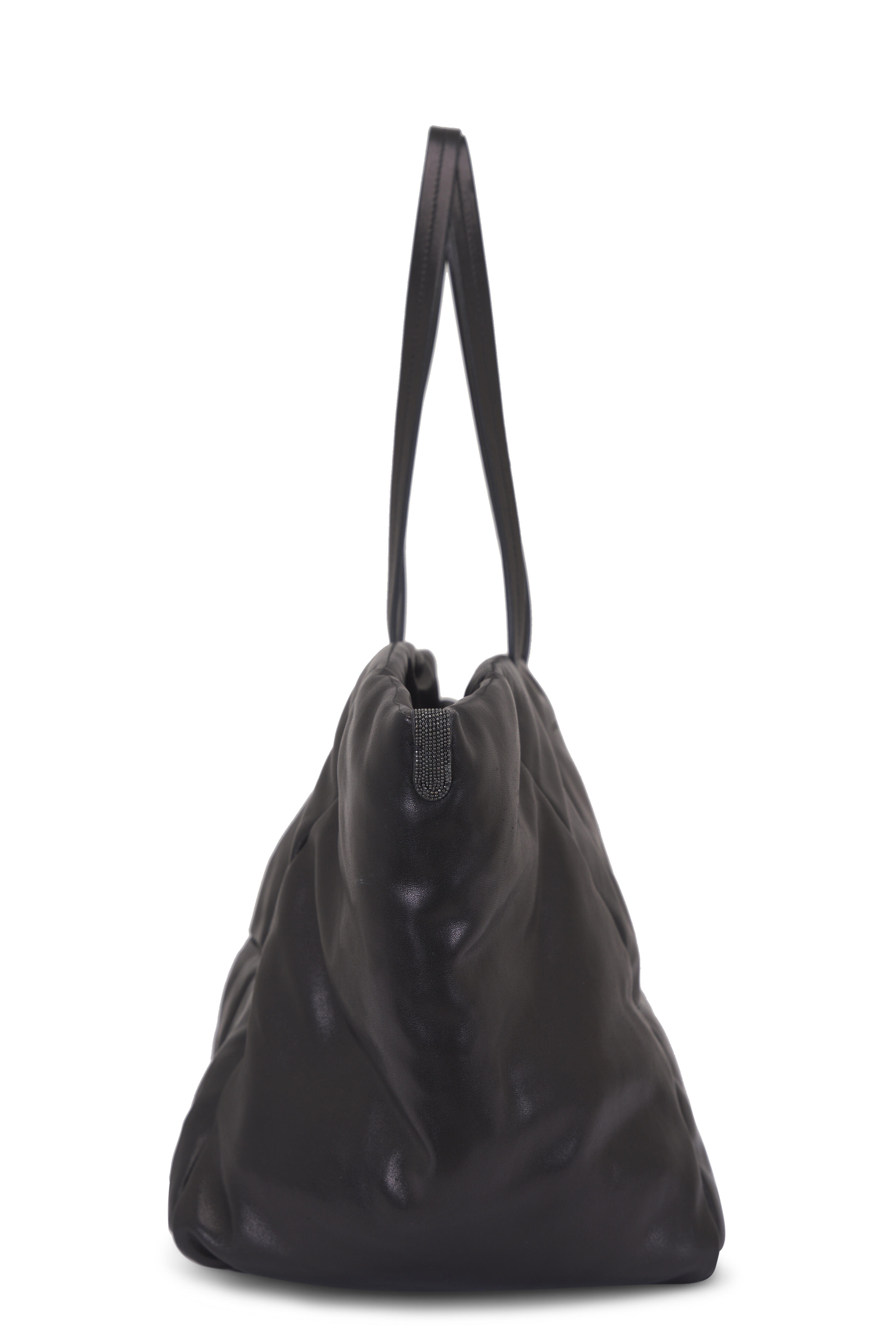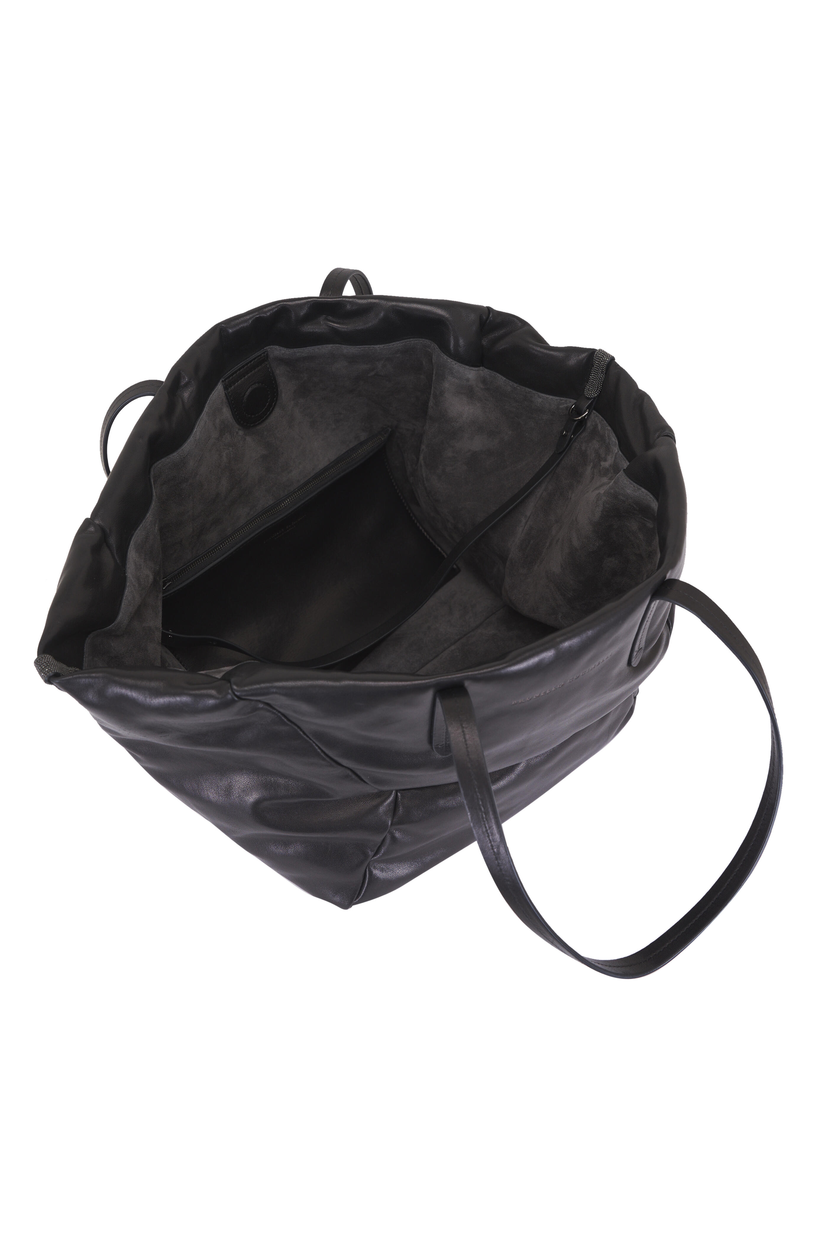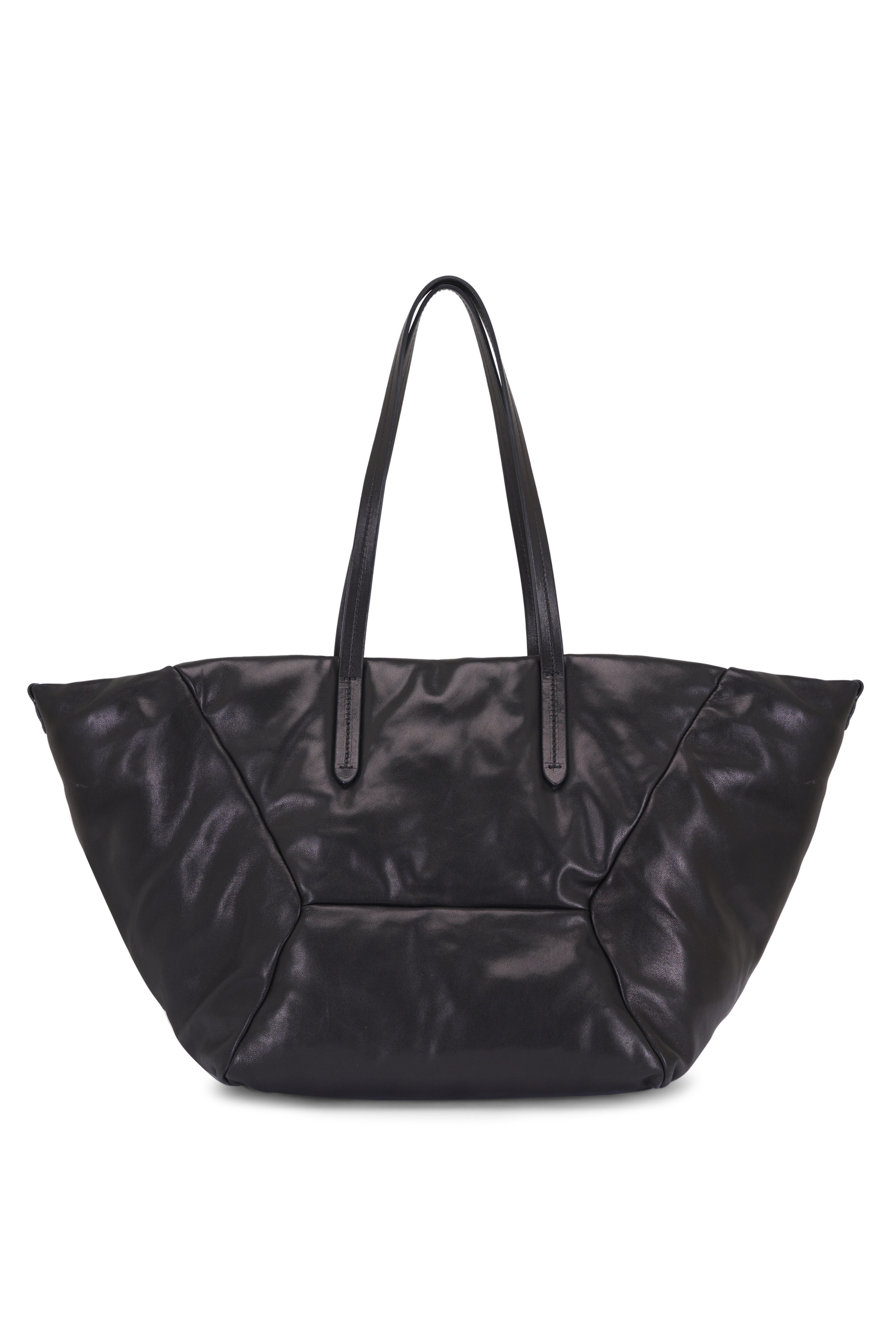 Leather outer. Dual top handles. Interior magnetic closure. Detachable leather pouch. Leather lining. Made in Italy. Length: 20.8". Height: 10.6". Width: 9.8".
