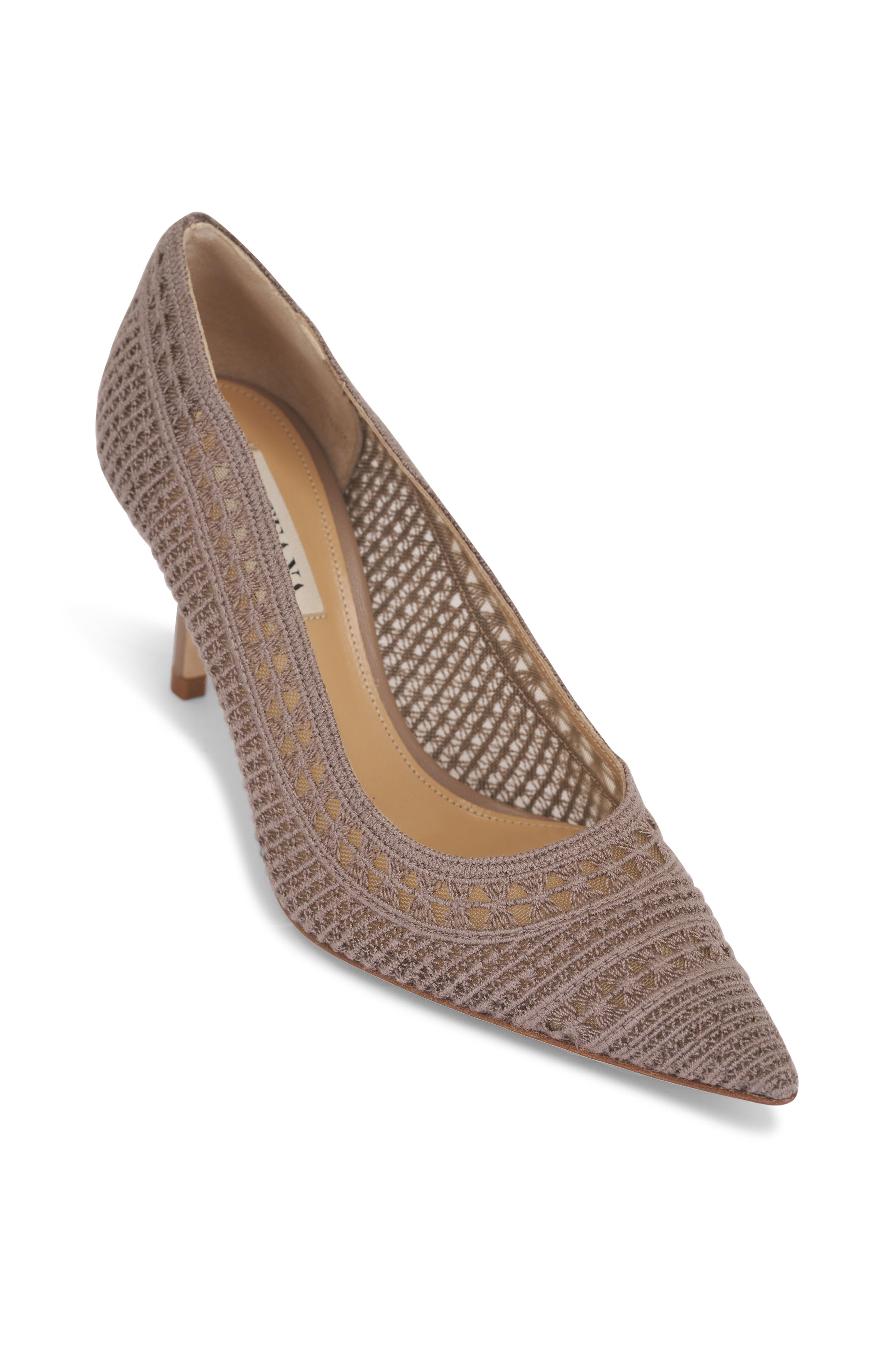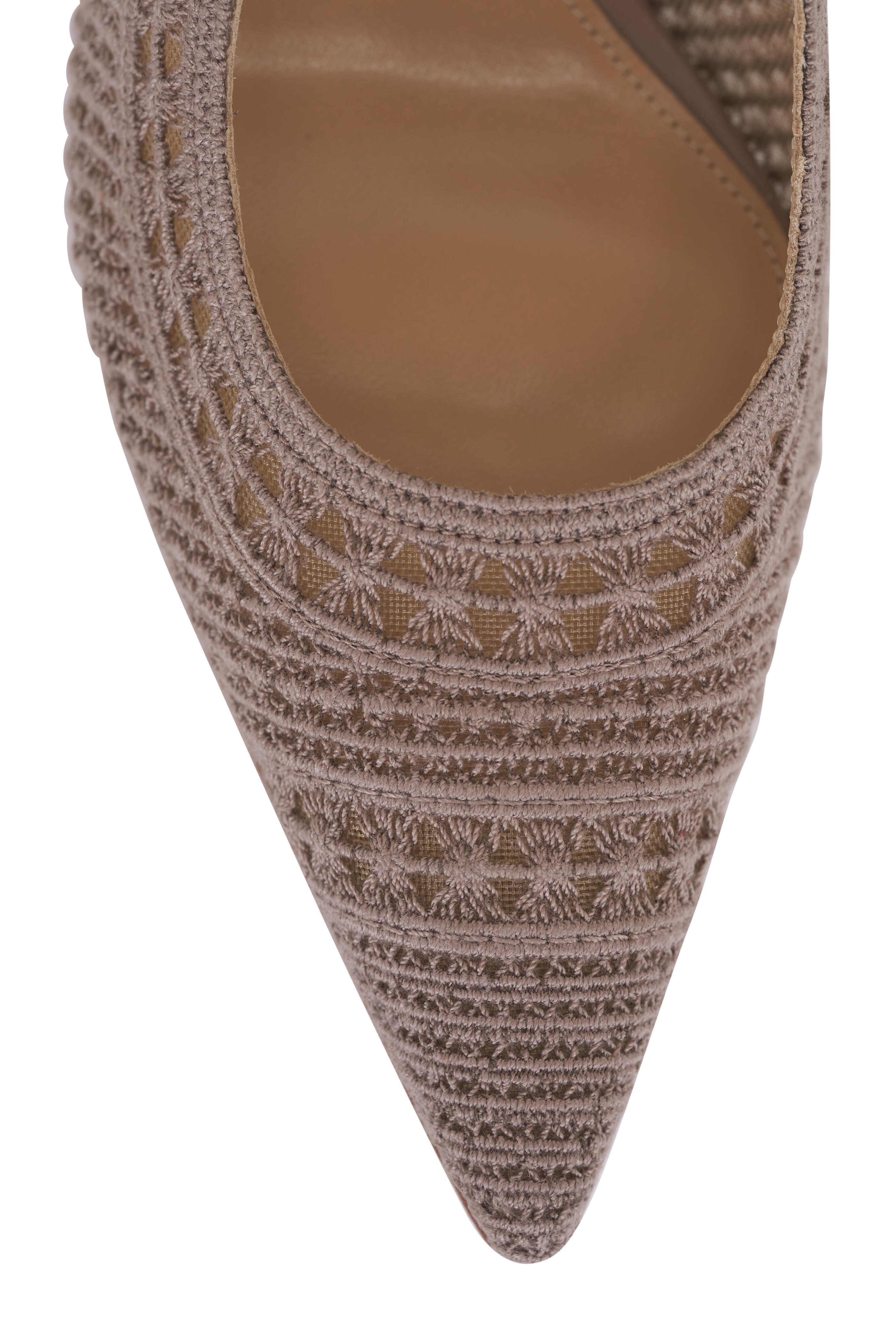 Crochet mesh textile upper. Pointed toe. Slip-on style. Leather lining and insole. Leather stiletto heel. Leather sole. Made in Italy. Heel measurement: 75mm (Approx. 3").