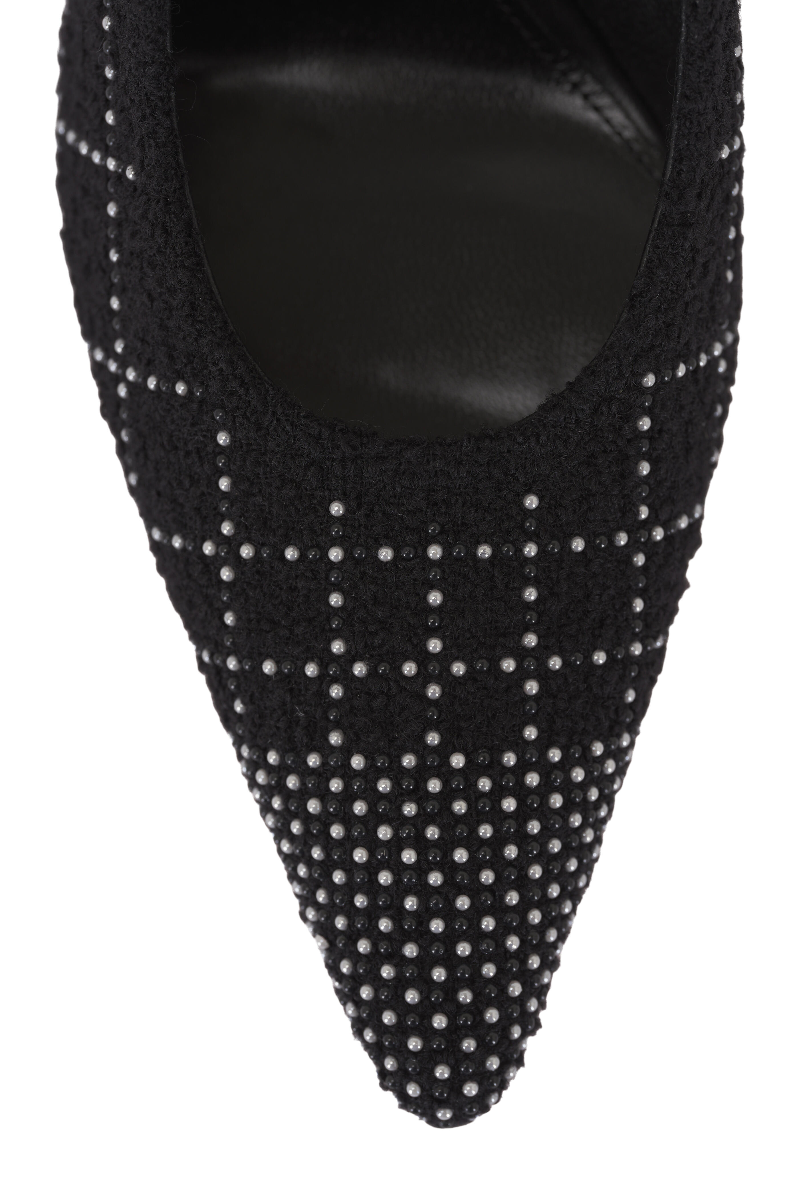 Tweed & pearl textile upper. Pointed toe. Slip-on style. Leather lining and insole. Leather stiletto heel. Leather sole. Made in Italy. Heel measurement: 75mm.