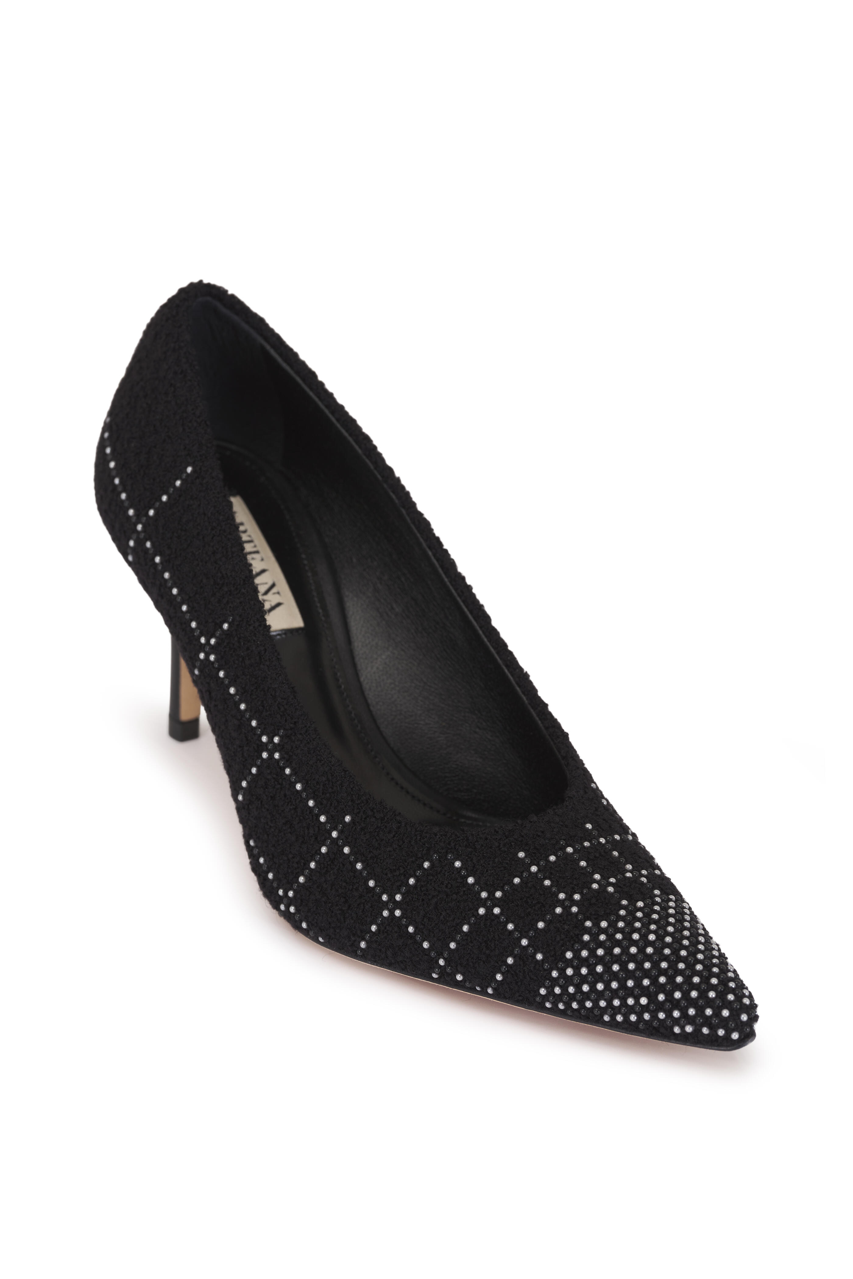 Perla Black Tweed & Pearl Embellished Pump, 75mm