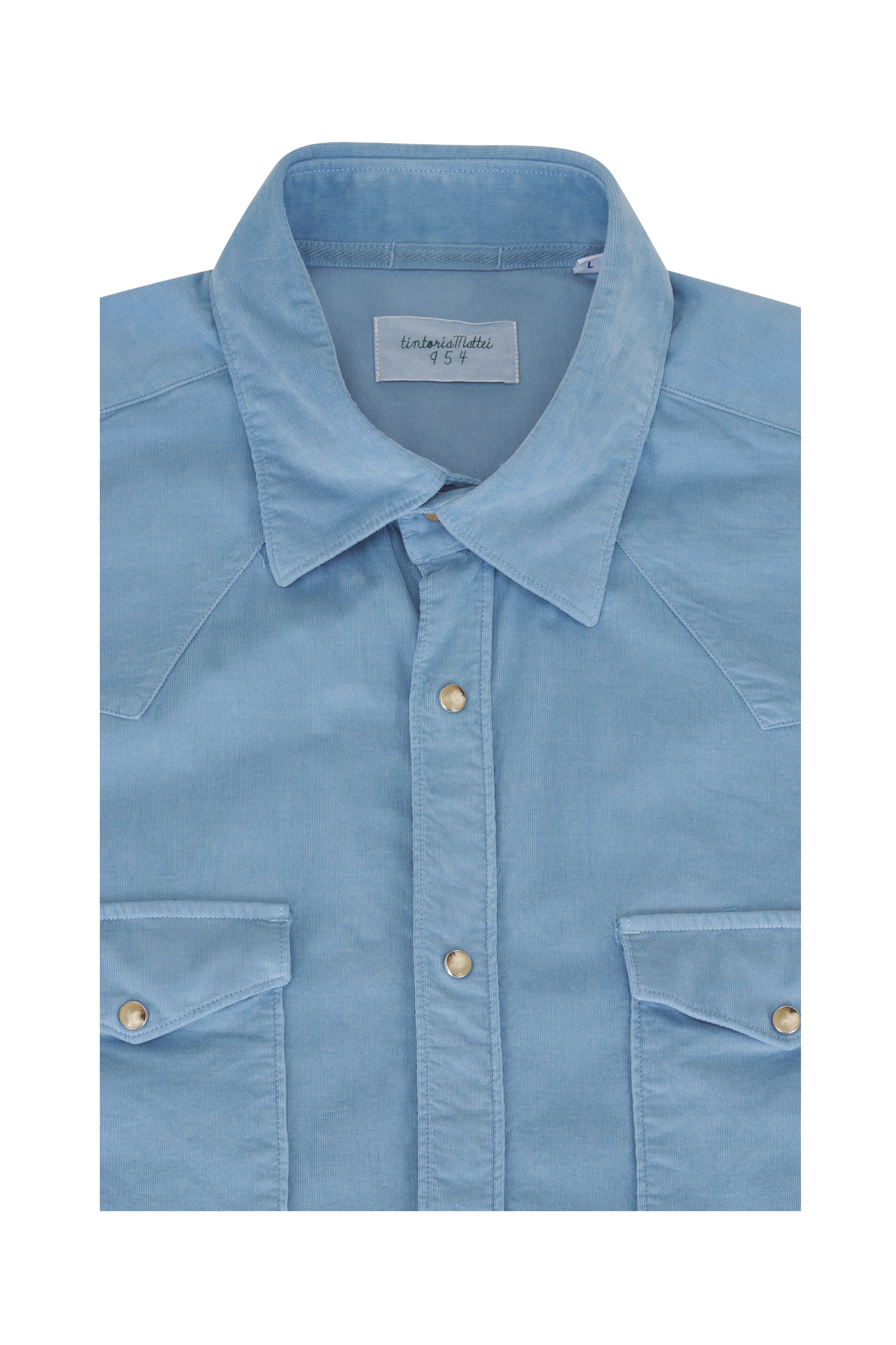 Blue Garment Dyed Lux Mini Corduroy Sport Shirt
