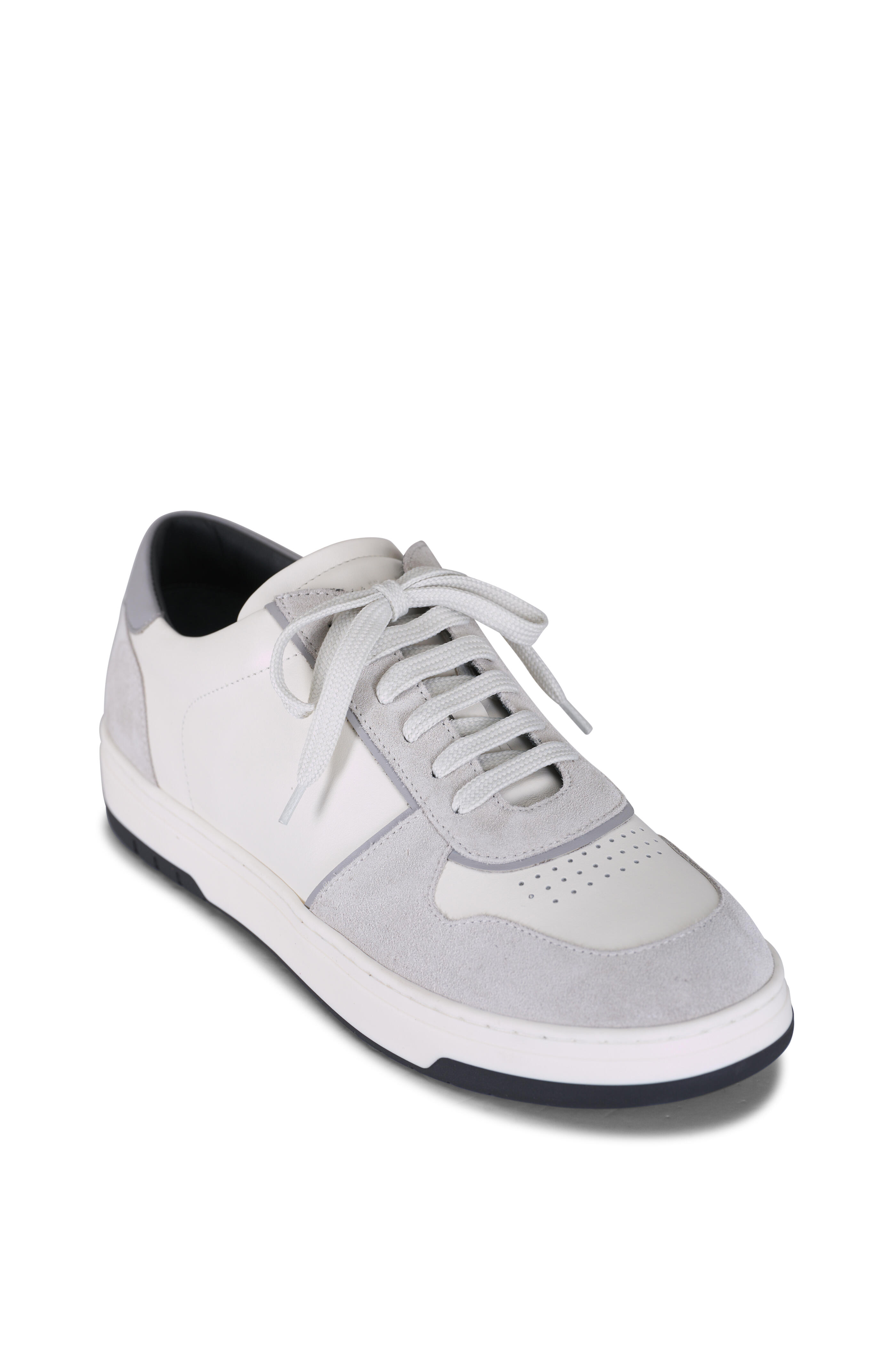 Leather and suede upper. Round toe. Lace-up closure. Leather lining and insole. Rubber sole. Made in Italy.