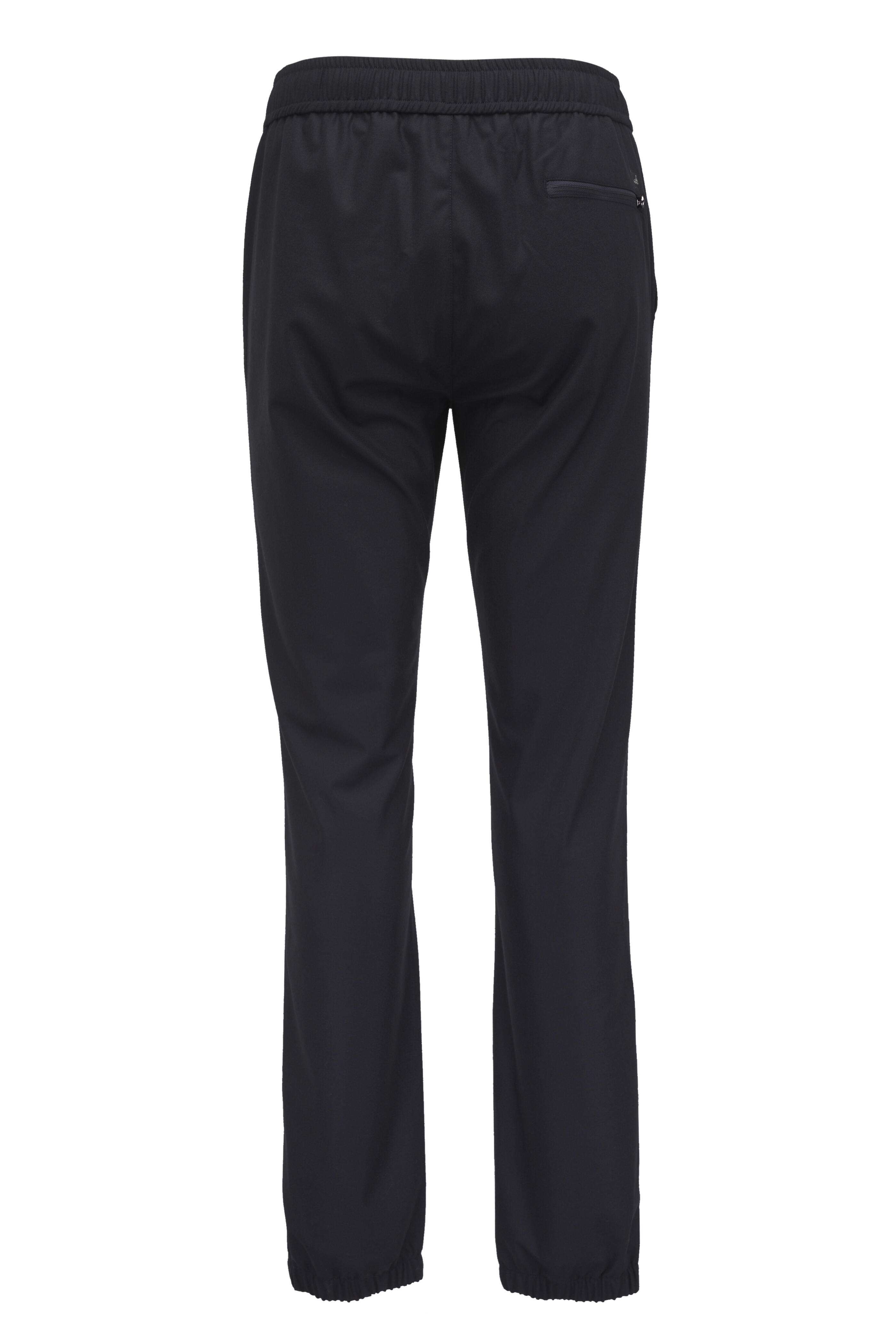 Pull on style. Elasticized waist. Front slip pockets; back zip pocket. Made in Portugal. 31" inseam. 95% virgin wool, 5% elastane. Machine wash.