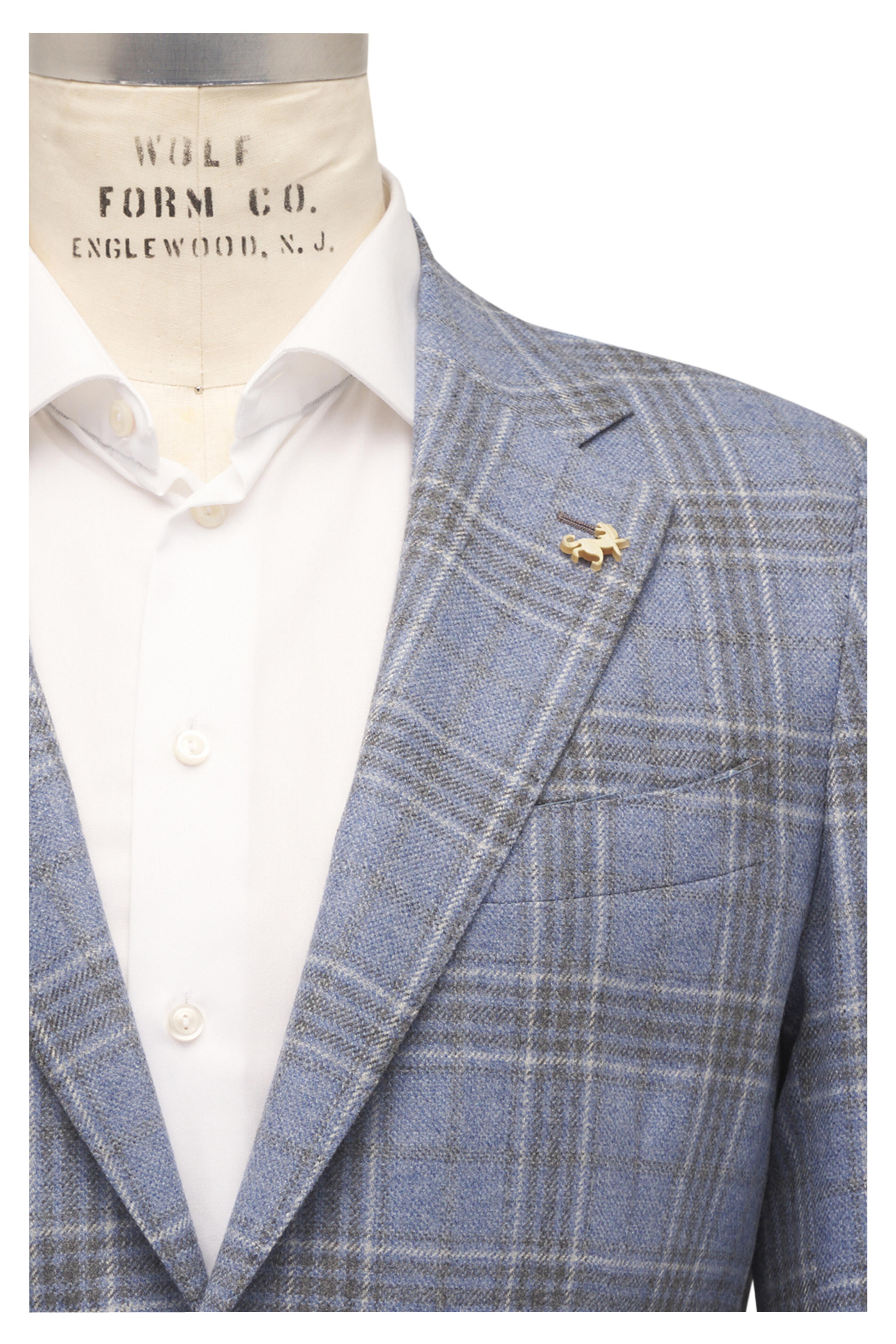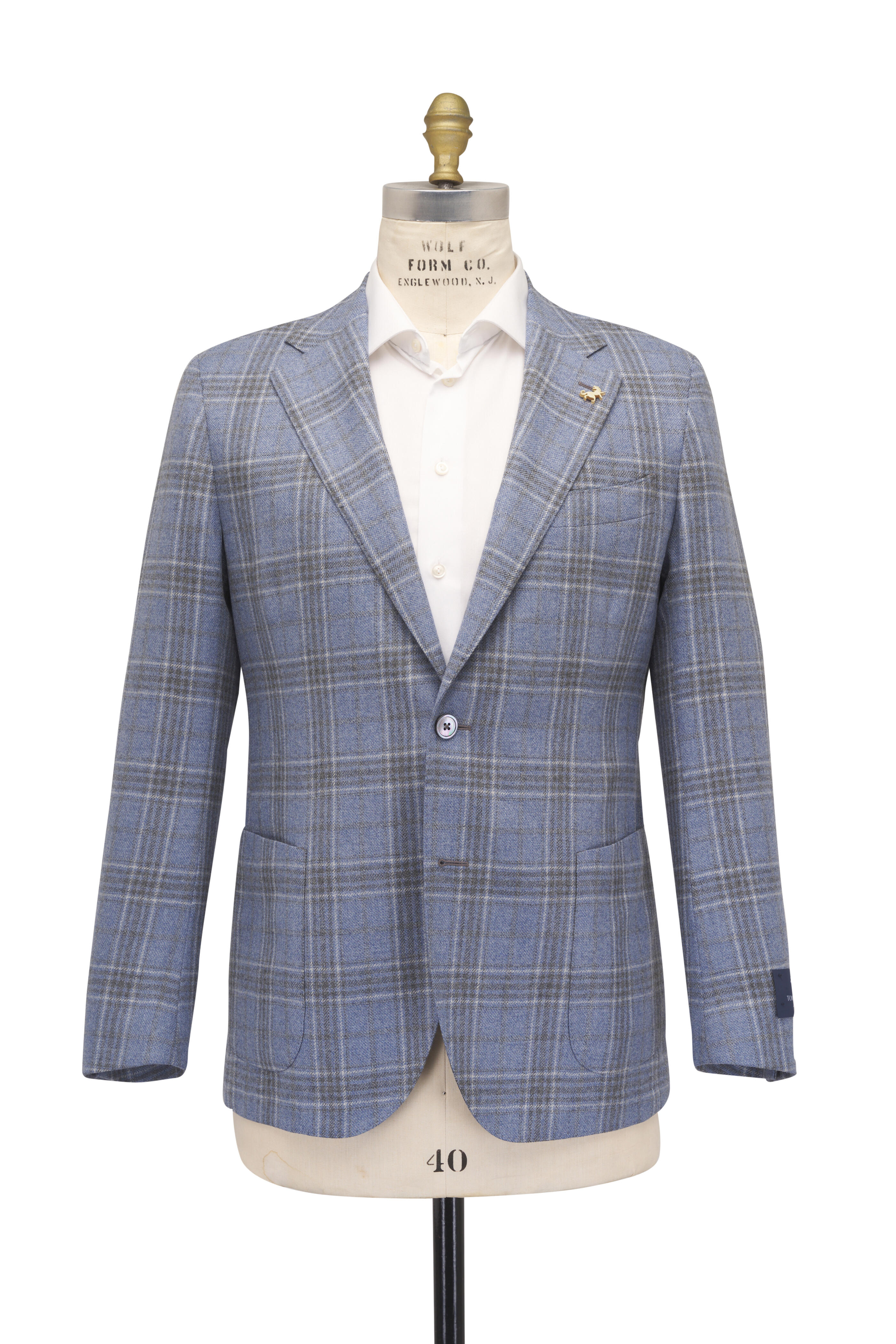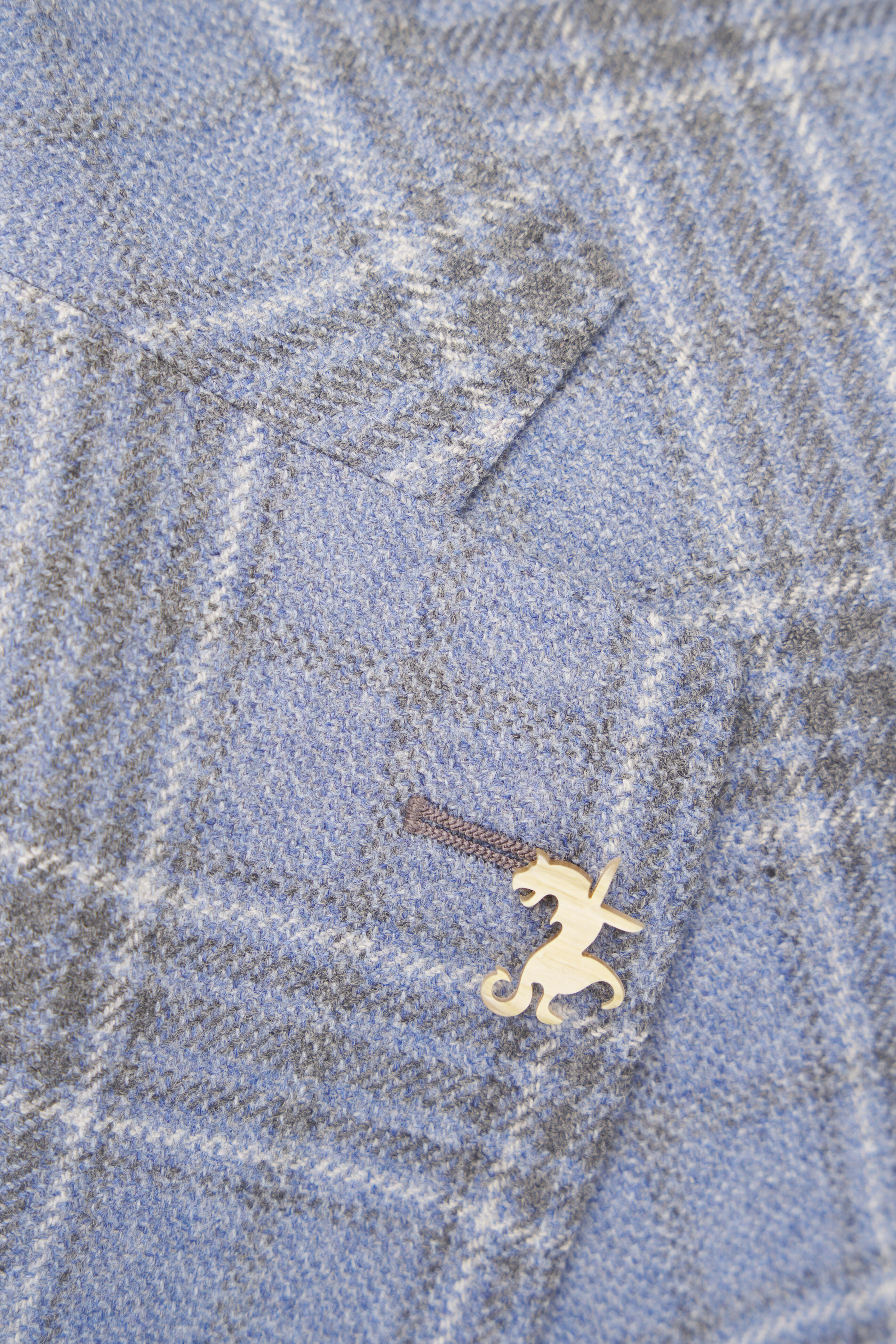 Notched lapels. Two button closure. Lower patch pockets; chest welt pocket. Unfinished buttonholes. Made in Italy. 93% virgin wool, 7% cashmere; unlined. Dry clean.