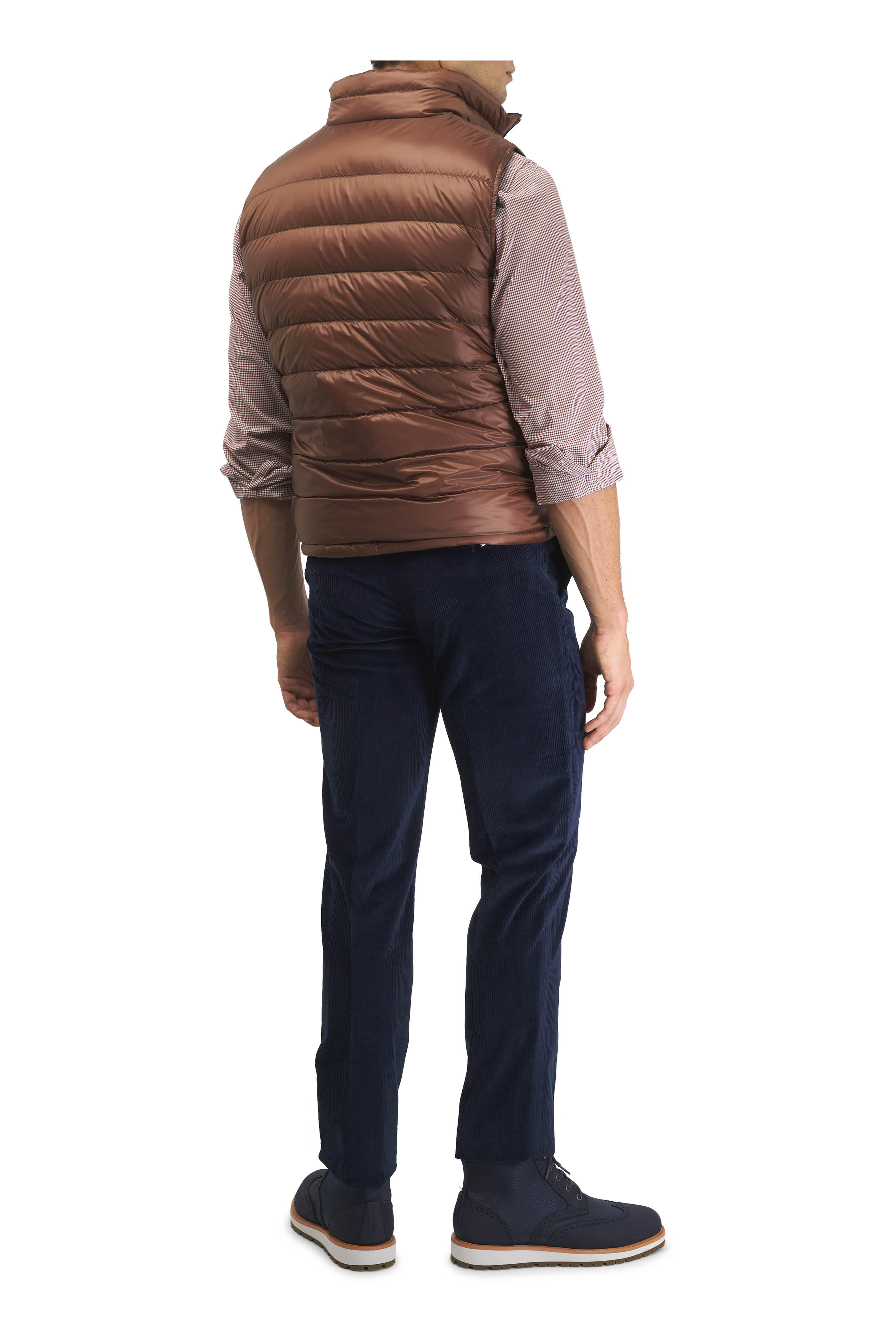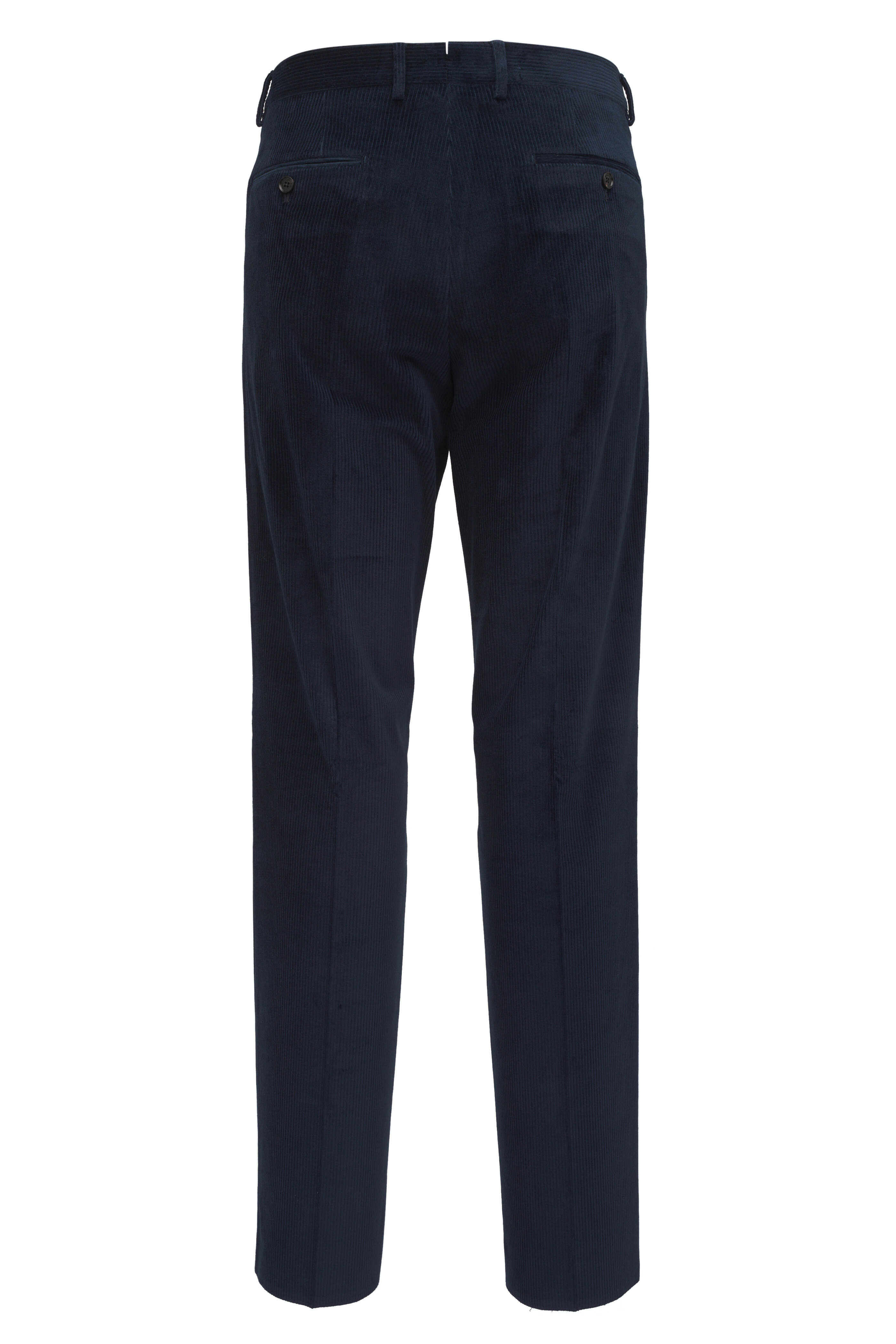 Zip fly; button tab closure. Banded waist; belt loops. Side slip pockets; back welt pockets. Made in Italy. 35" Inseam (size 36). 98% cotton, 2% elastane. Dry clean.