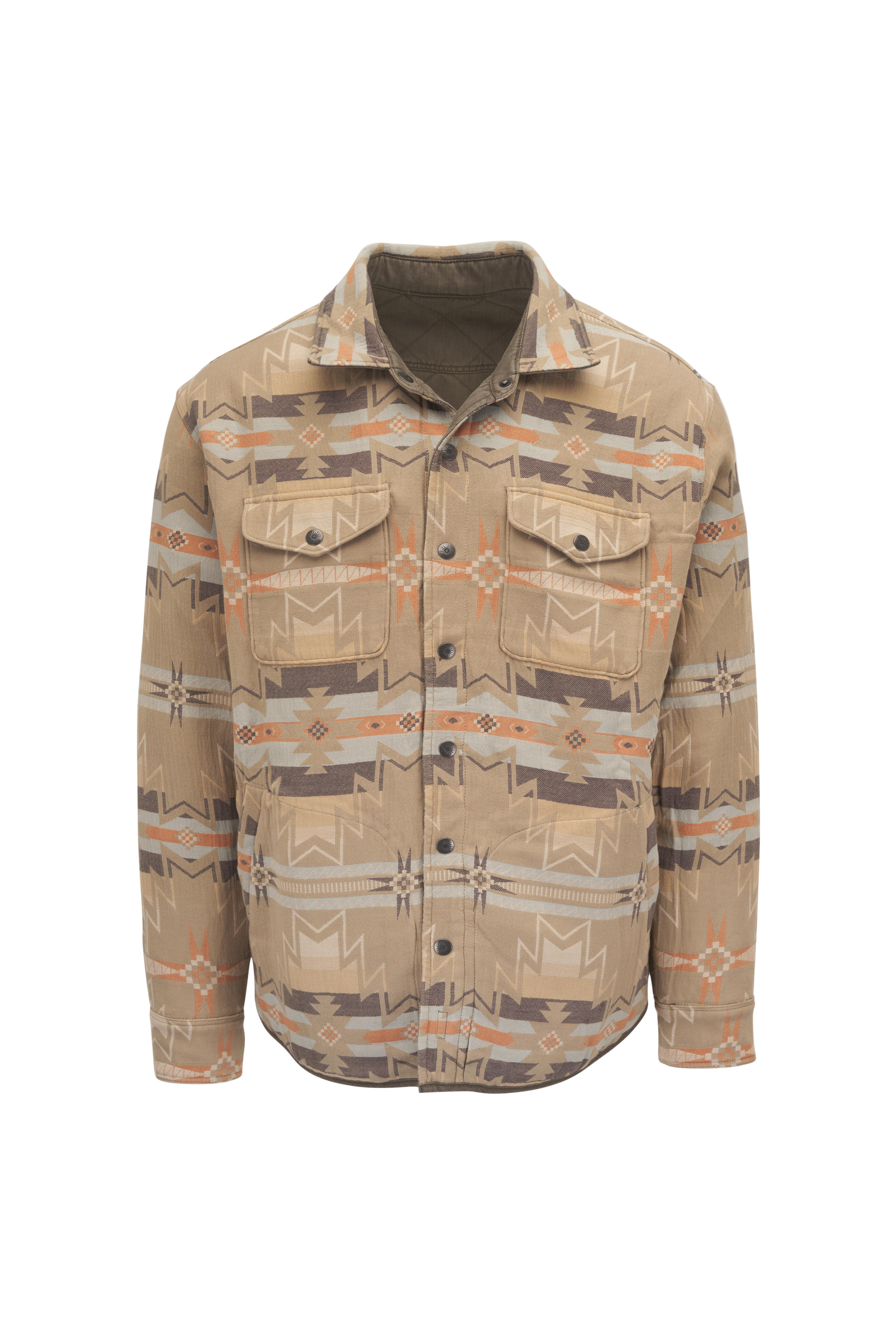 Spread collar. Front snap button placket. Side slip pockets; chest flap pockets with snap button closure. Reversible. Imported. Color: Prairie Olive. 100% organic cotton; lining: 100% organic cotton. Machine wash.