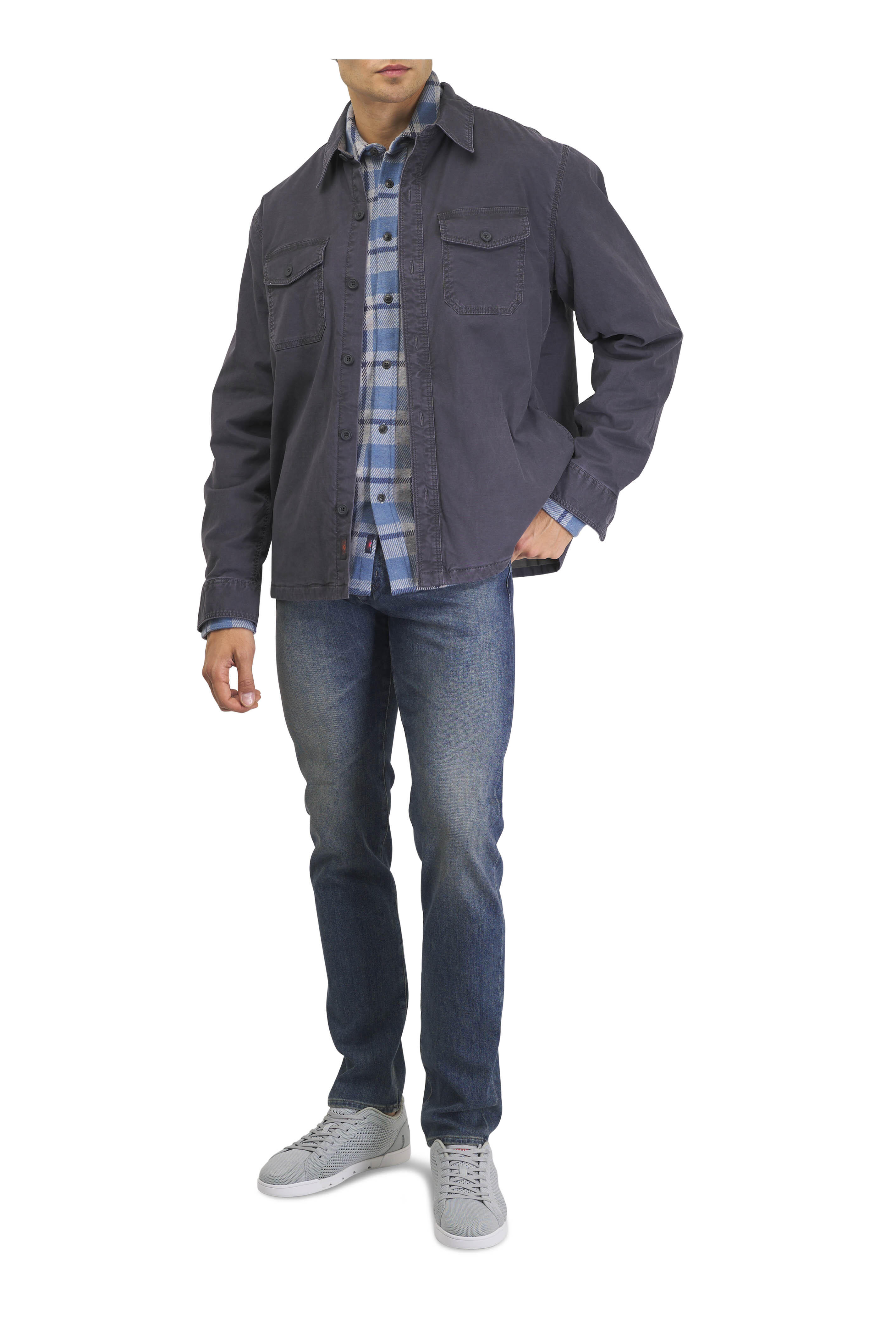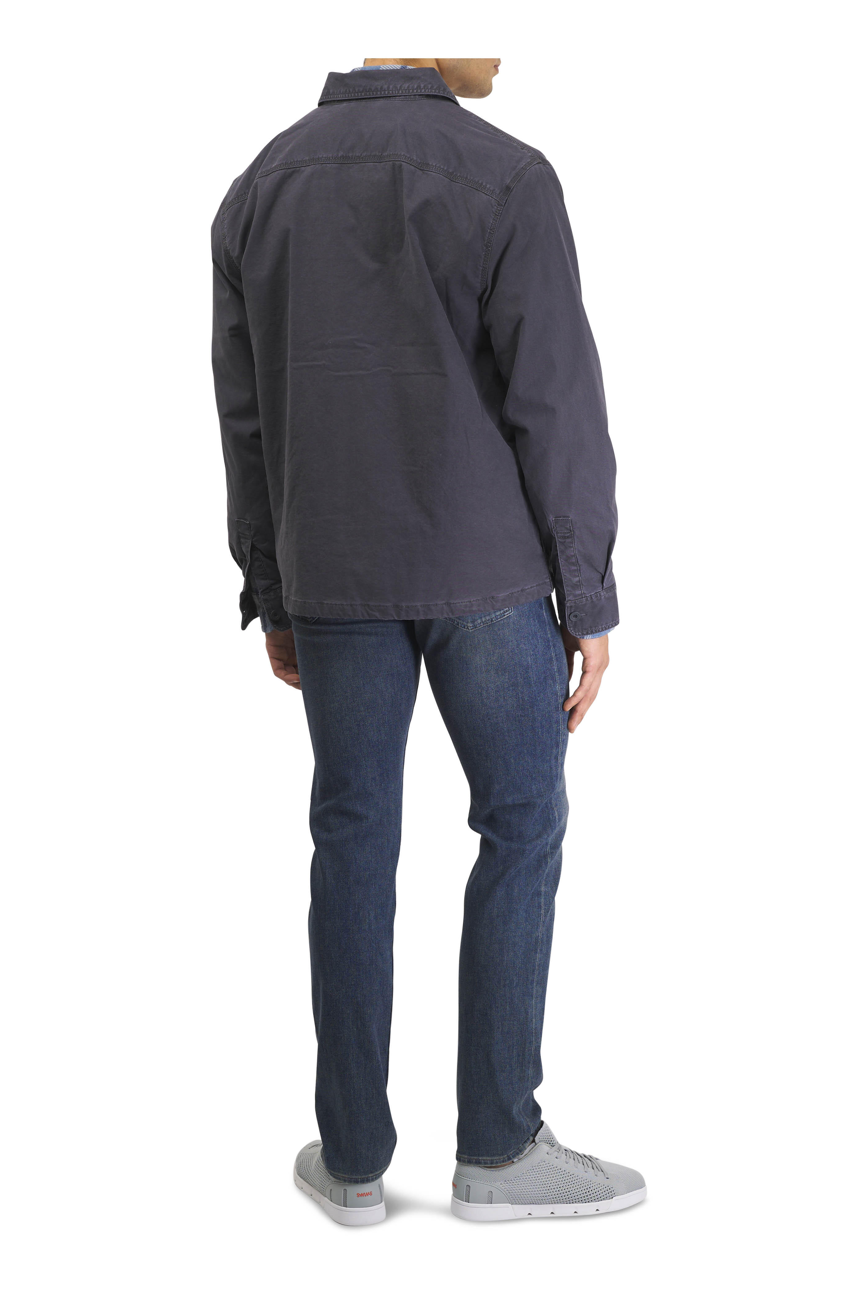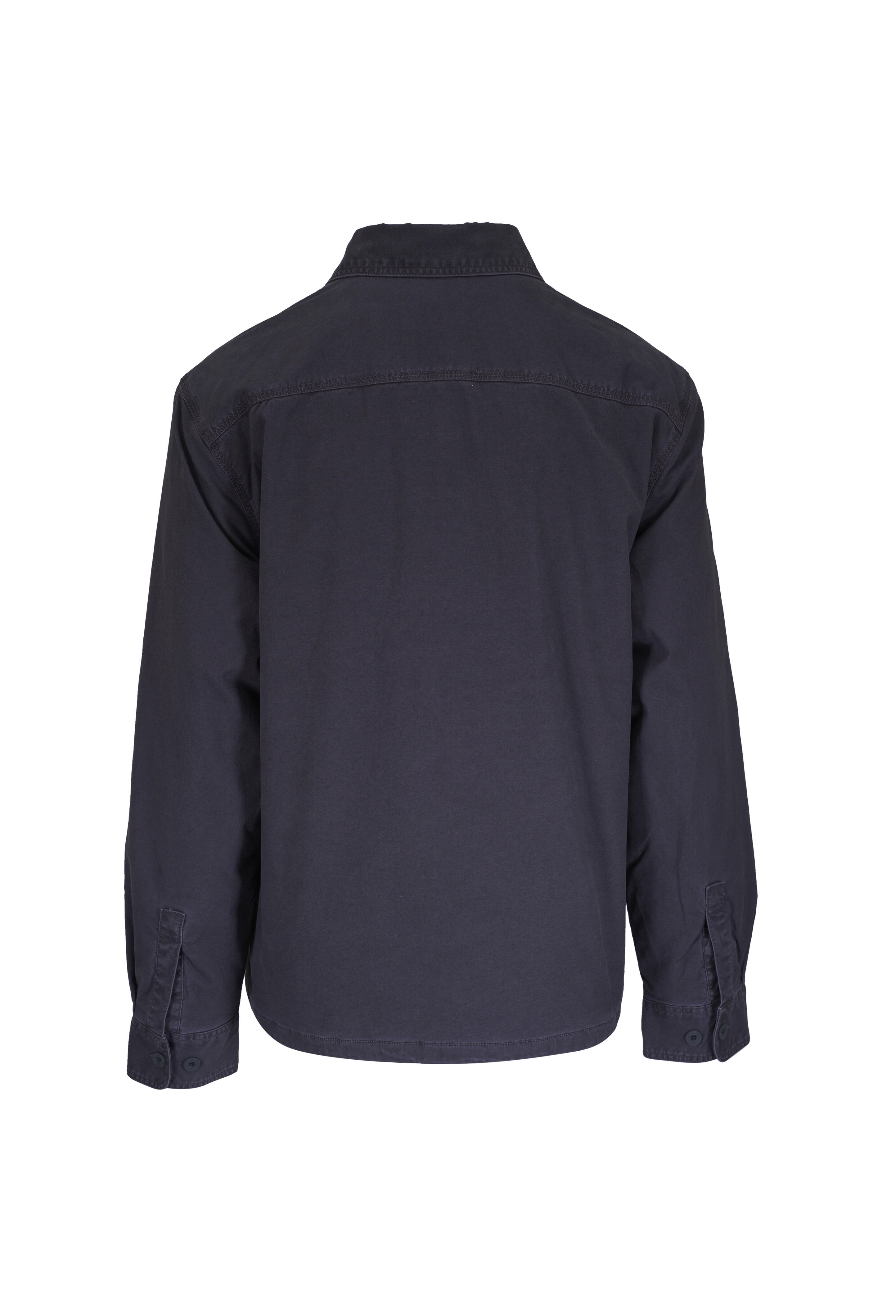 Spread collar. Front button placket. Side slip pockets; check patch pockets with button closure. Locker loop at interior back neck seam. Imported. Approximately 29" shoulder to hem. 98% organic cotton 2% spandex; lined. Machine wash.