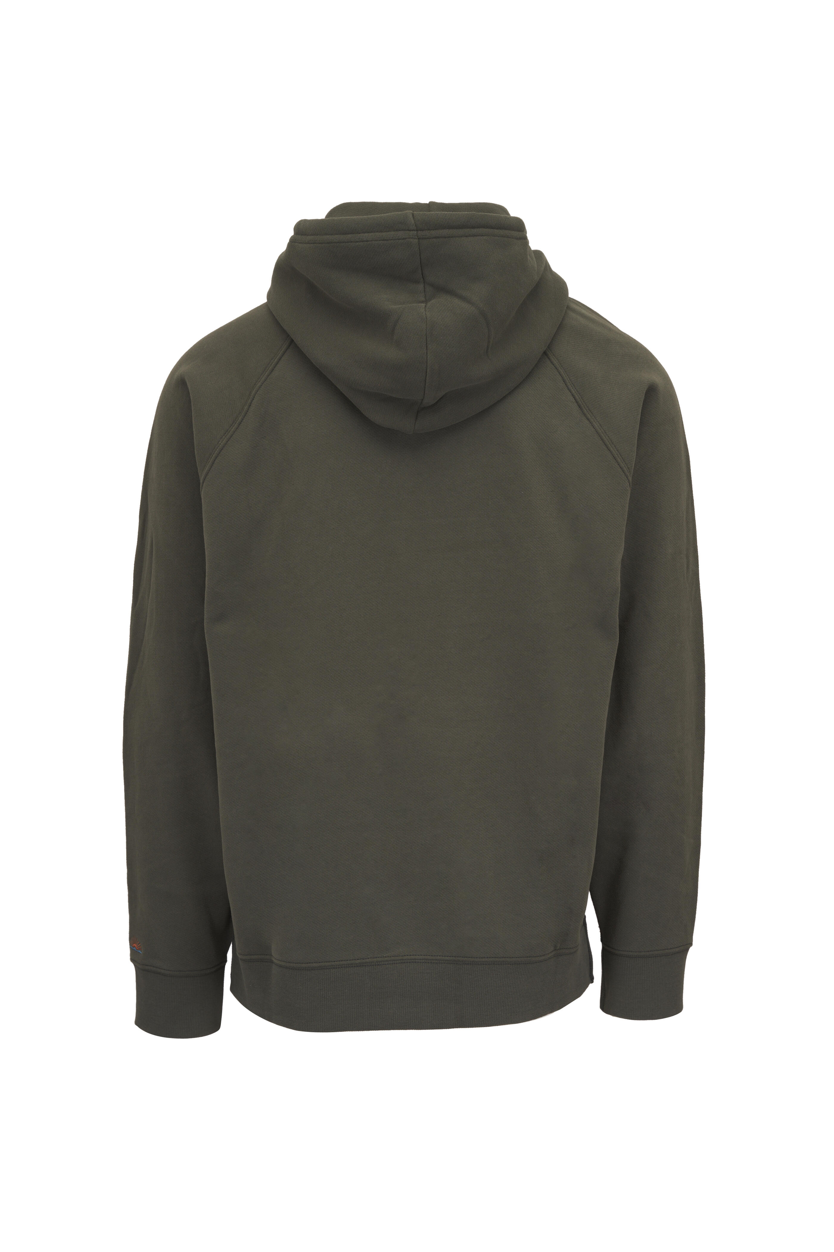 Attached double layer hood with drawstring. Kangaroo patch pocket with hidden zipper pocket. Raglan sleeves. Ribbed knit trim at cuffs and hem. "Sun & Waves" embroidery at wearer's left cuff. Imported. Approximately 28" shoulder to hem. Relaxed fit. 100% regenerative organic cotton. Machine wash.
