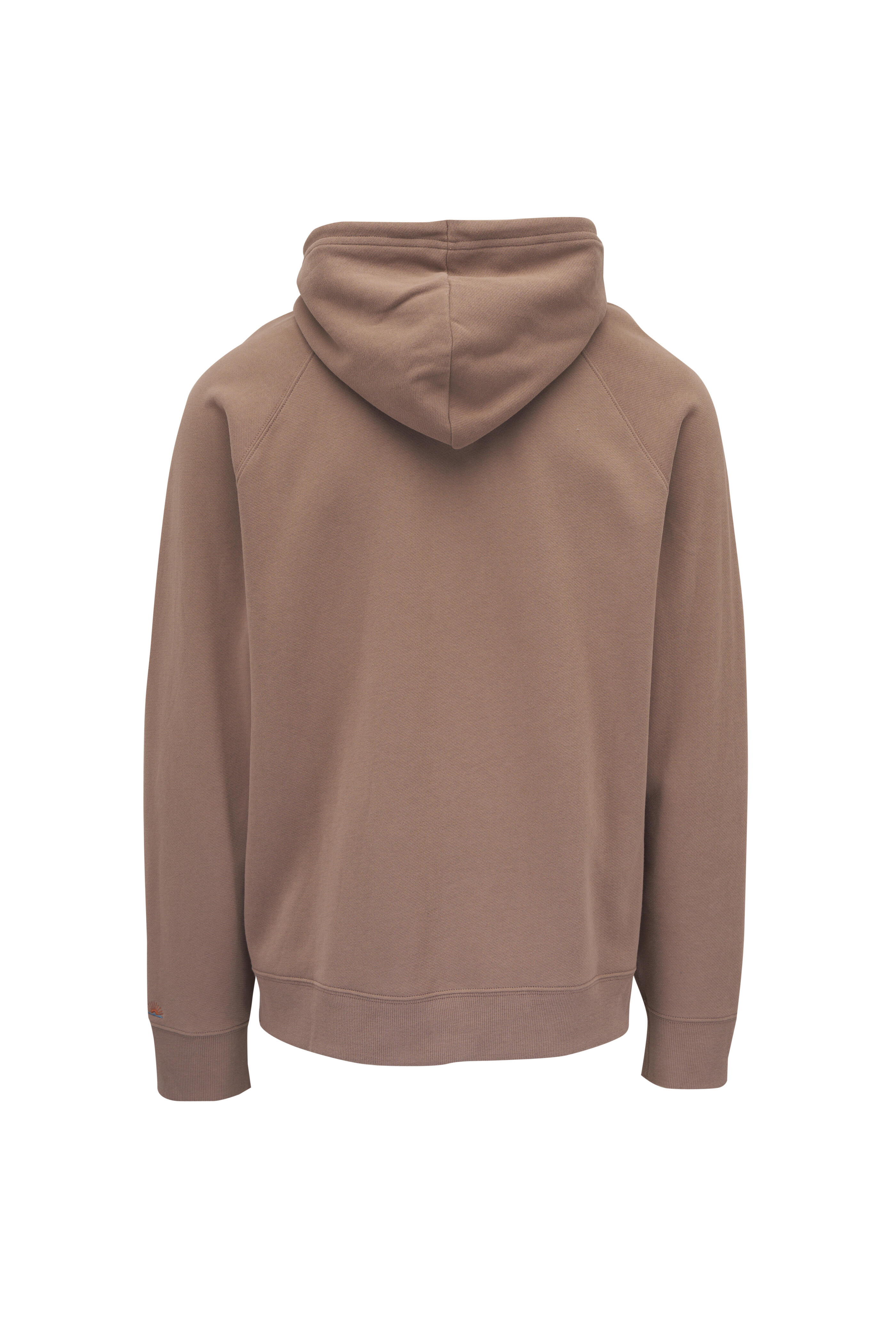Attached double layer hood with drawstring. Kangaroo patch pocket with hidden zipper pocket. Raglan sleeves. Ribbed knit trim at cuffs and hem. "Sun & Waves" embroidery at wearer's left cuff. Imported. Approximately 28" shoulder to hem. Relaxed fit. 100% regenerative organic cotton. Machine wash.
