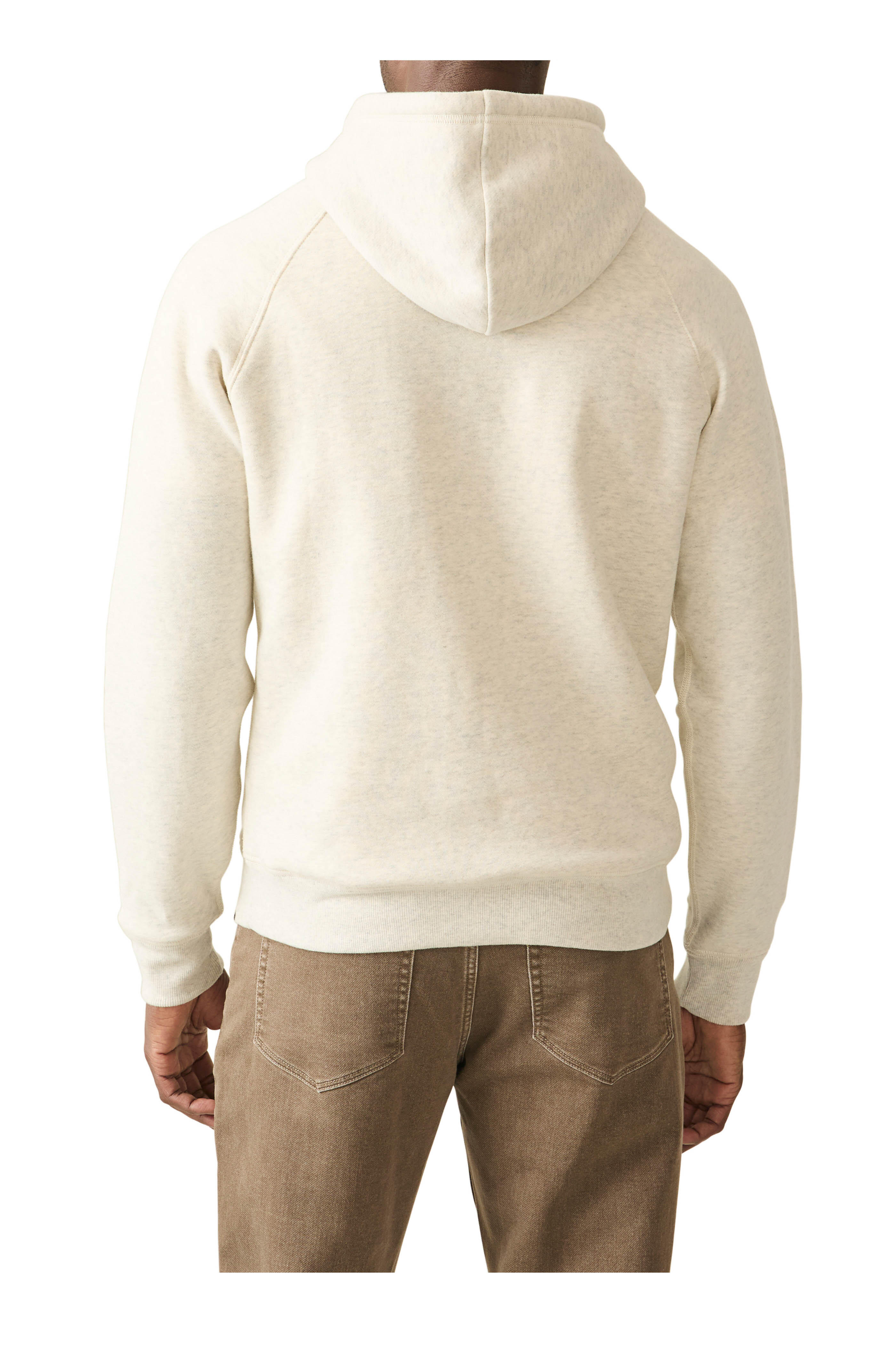 Fixed hood with drawstring. Kangaroo patch pocket with hidden zipper pocket. Rib knit trim cuffs and hem. Sun & Waves embroidery at wearer's left cuff. Imported. 56% organic Pima cotton, 44% organic cotton. Machine wash.