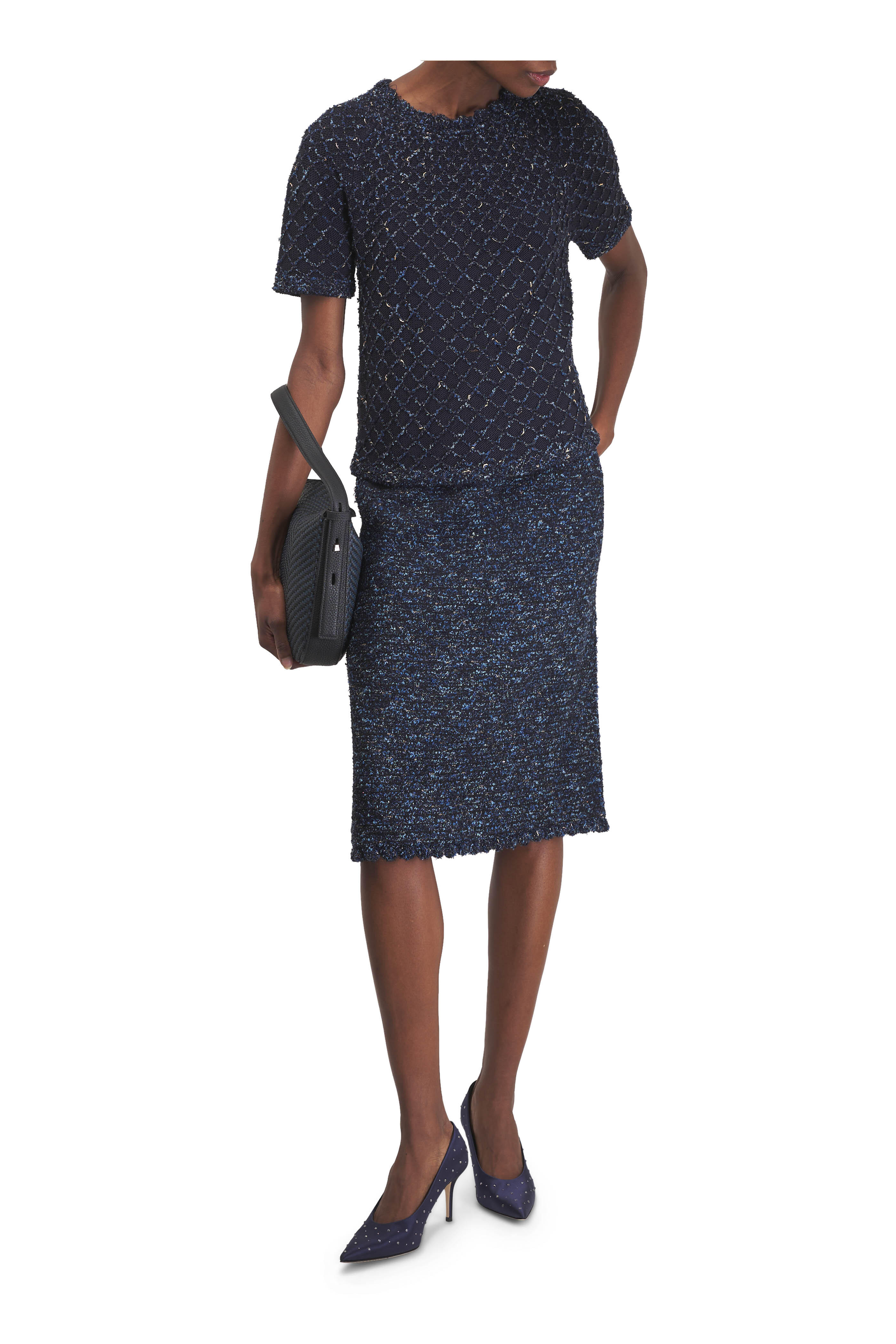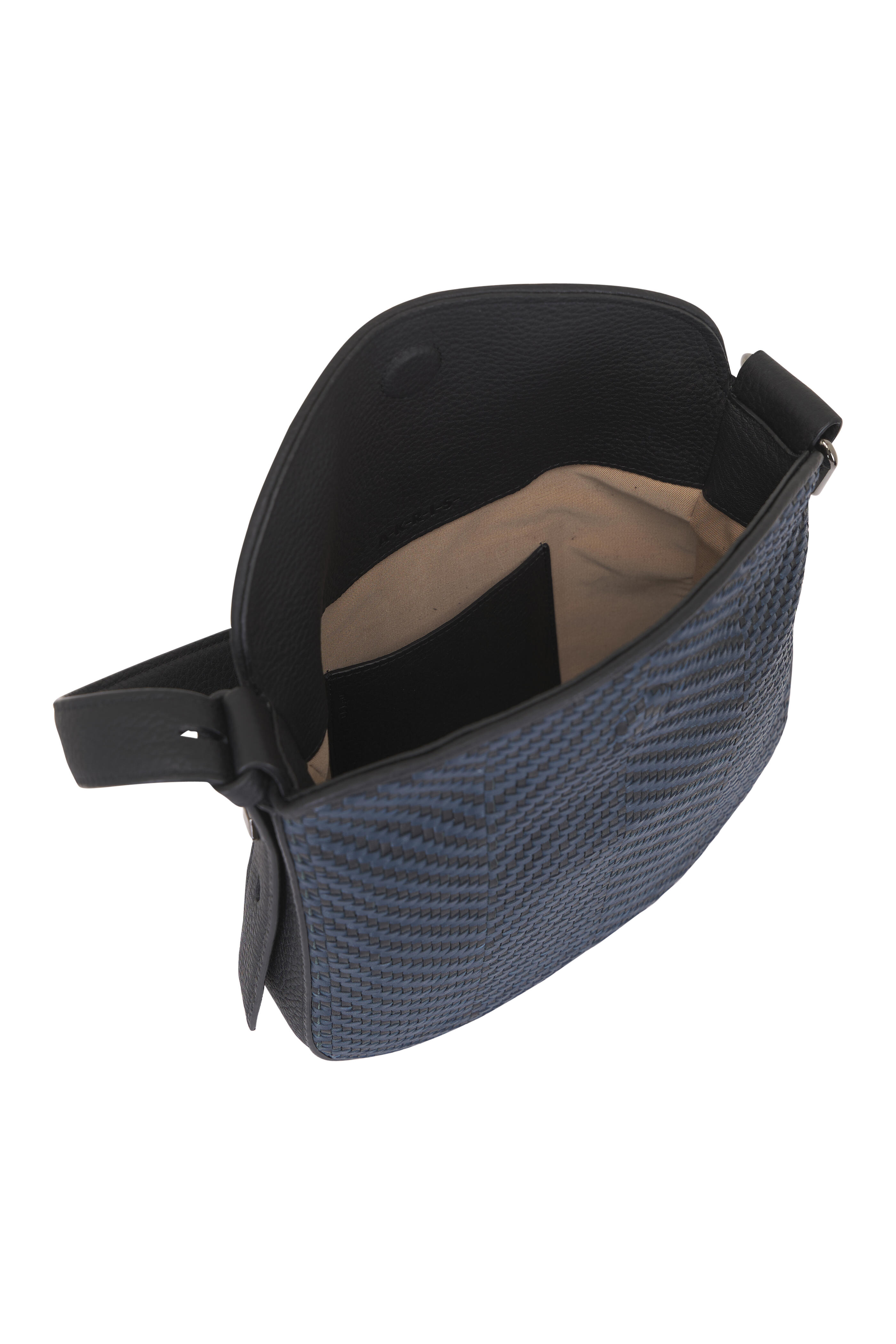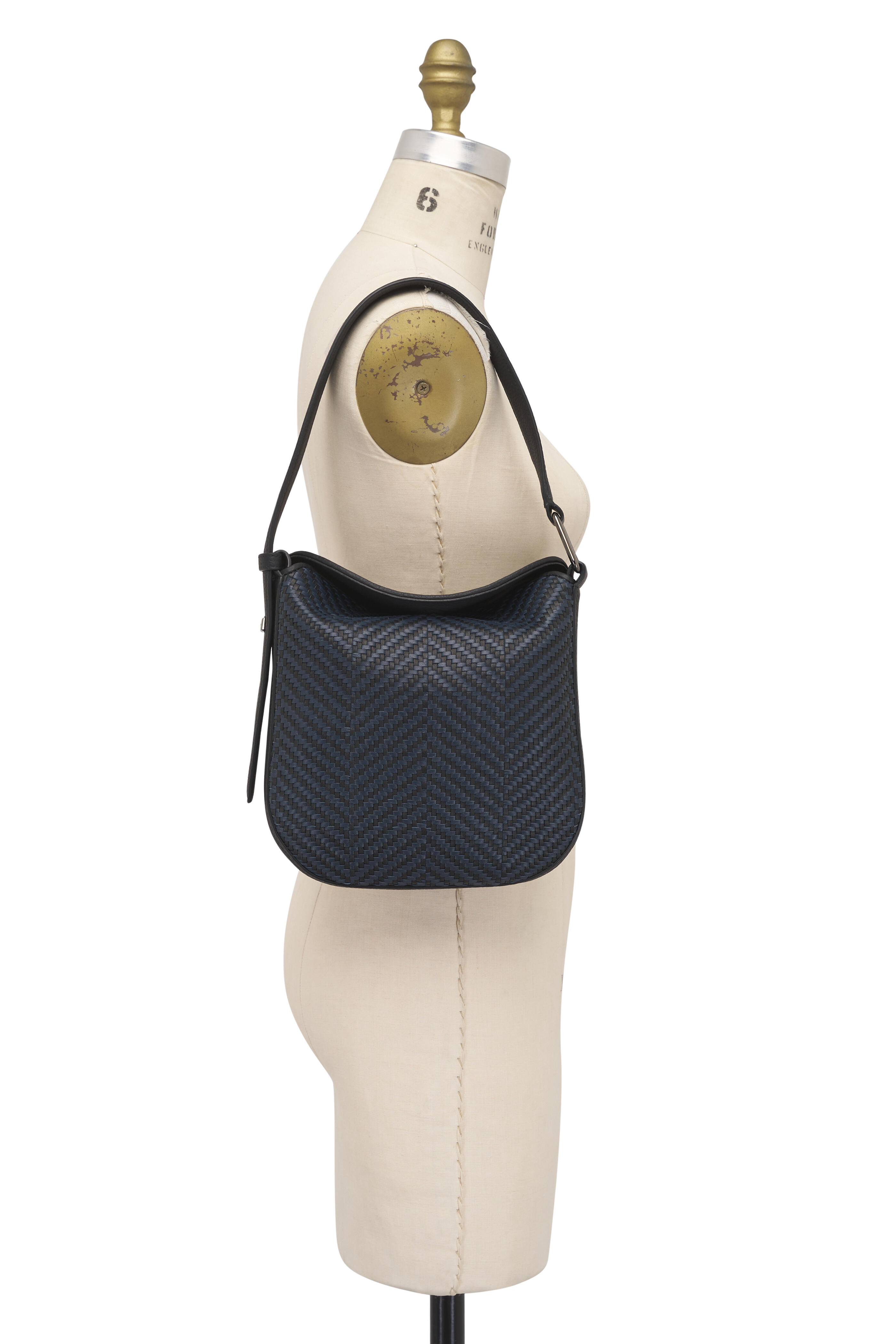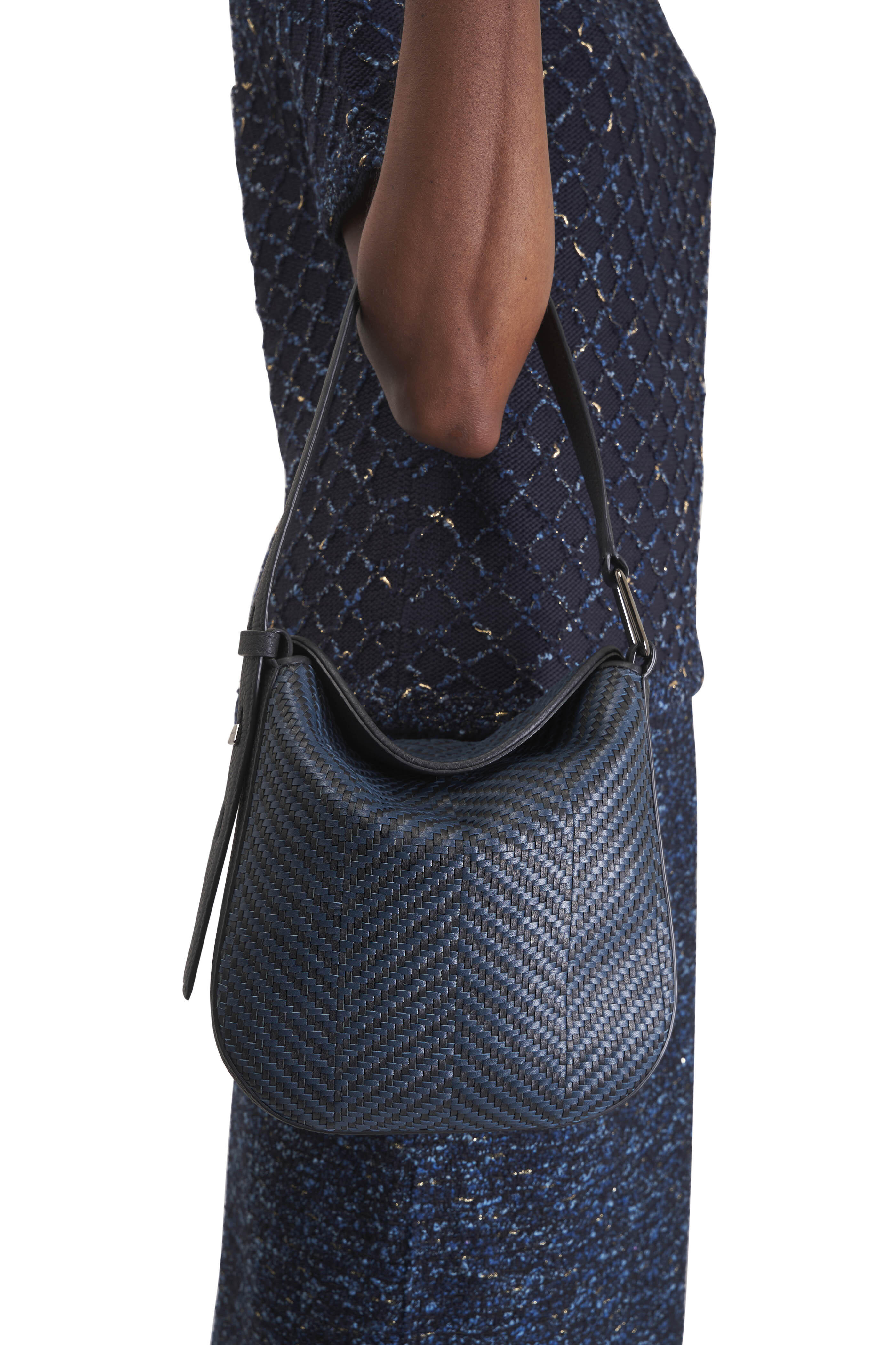 Braided lambskin and calfskin leather. Magnetic flap closure. Adjustable shoulder strap. Interior zip pocket. Imported. 23cm x 24cm x 6.5cm / 9.1in x 9.4in x 2.6in.