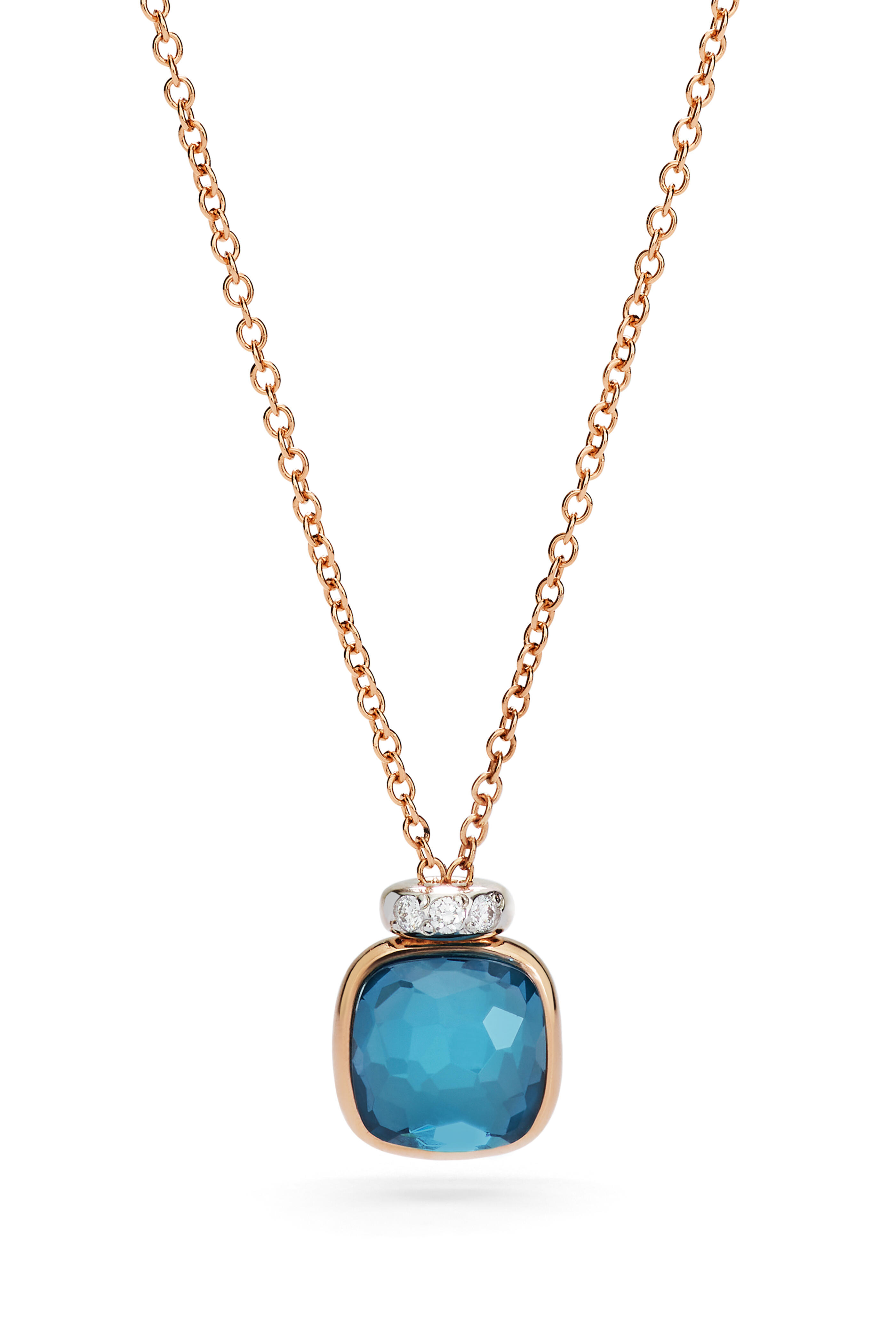18k Rose Gold Nudo Mini Blue Topaz Necklace