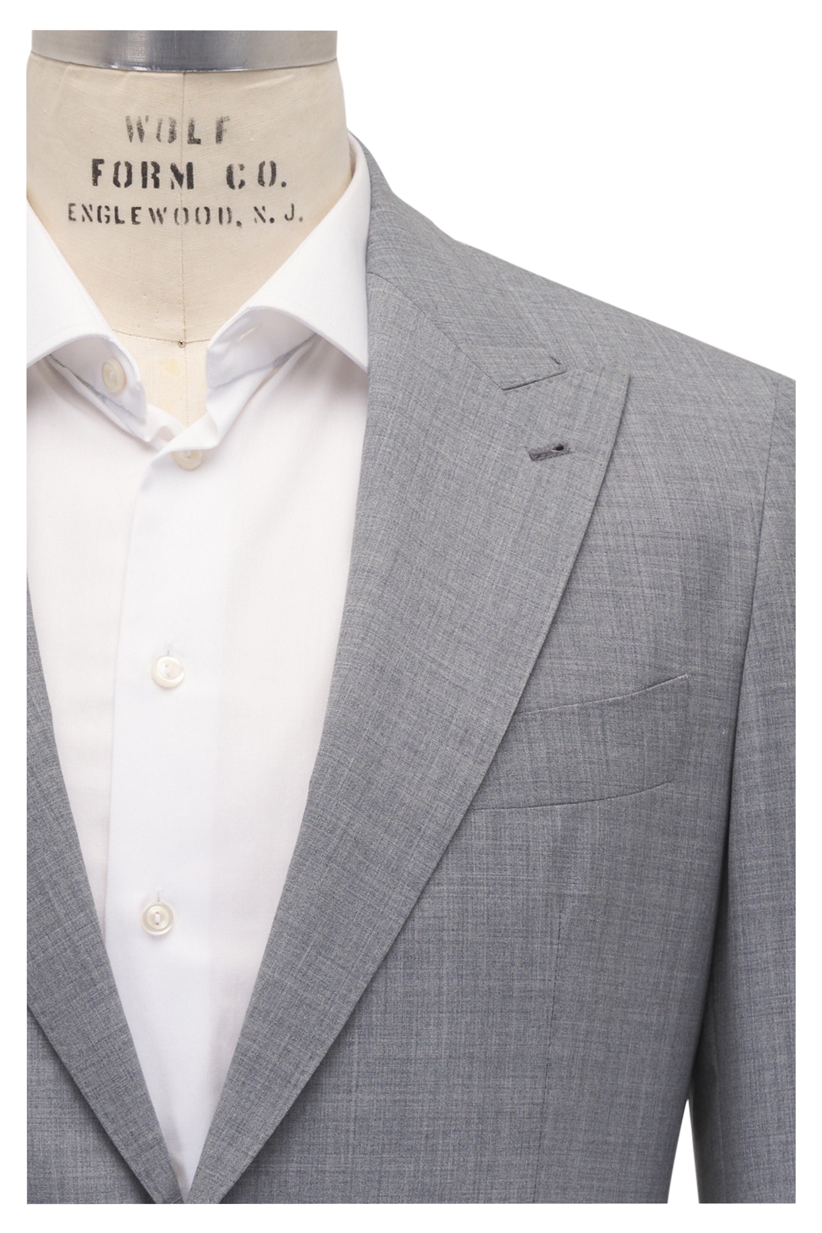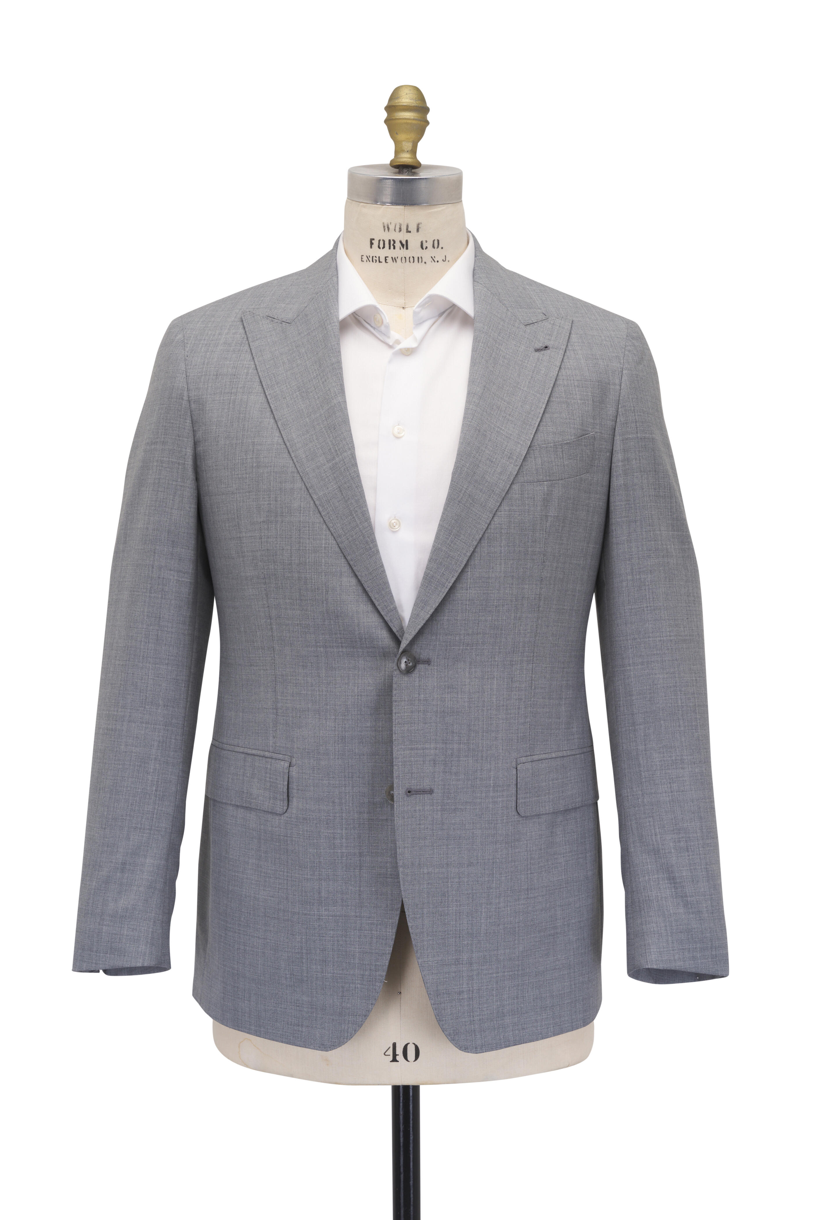 Imported. Jacket: Fully lined. Peak lapels. Two button closure. Lower flap pockets; chest welt pocket; interior chest pockets. Double vent. Pants: Zip fly with extended button closure. Front slash pockets; back welt pockets. Unfinished hem. 100% wool. Dry Clean.