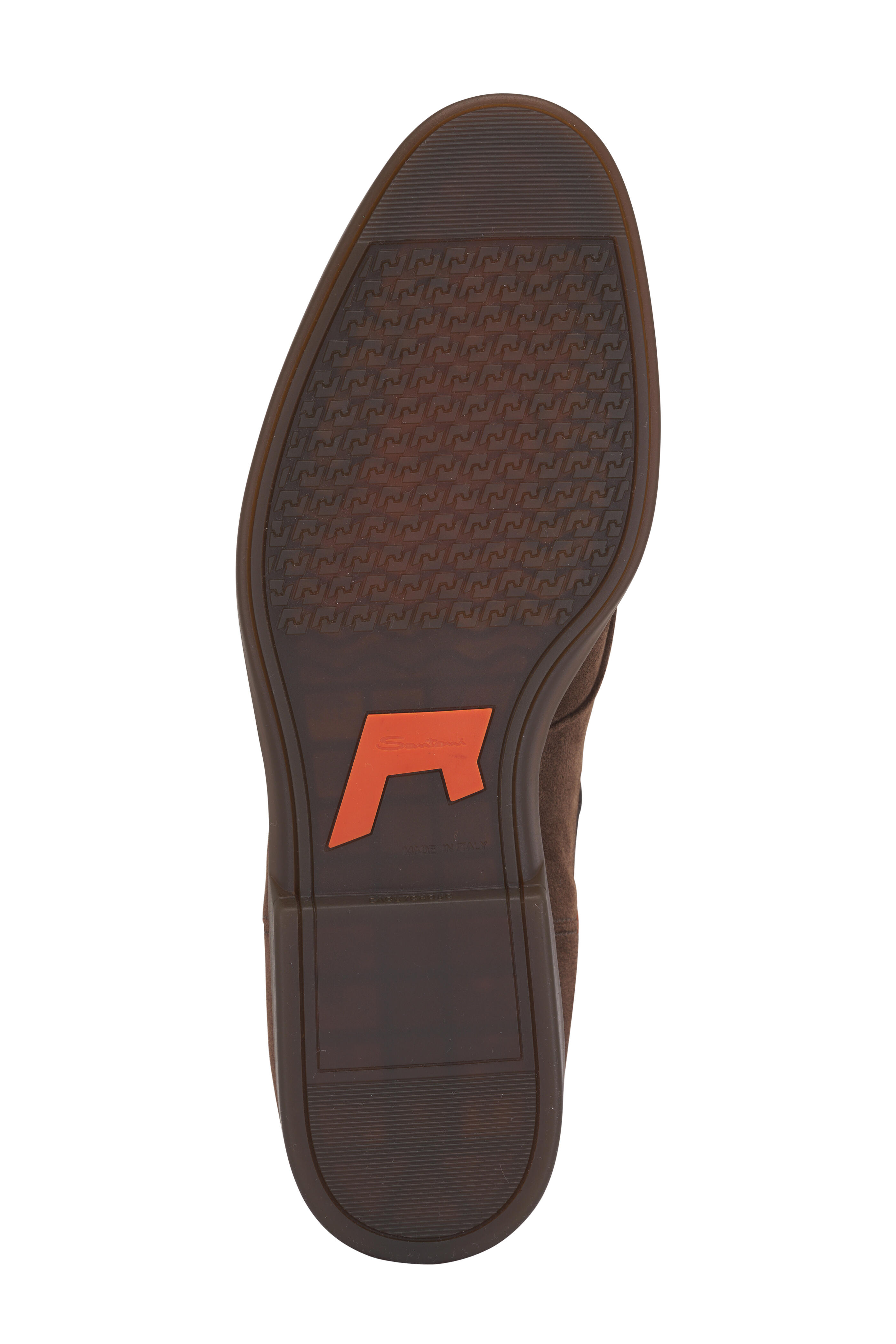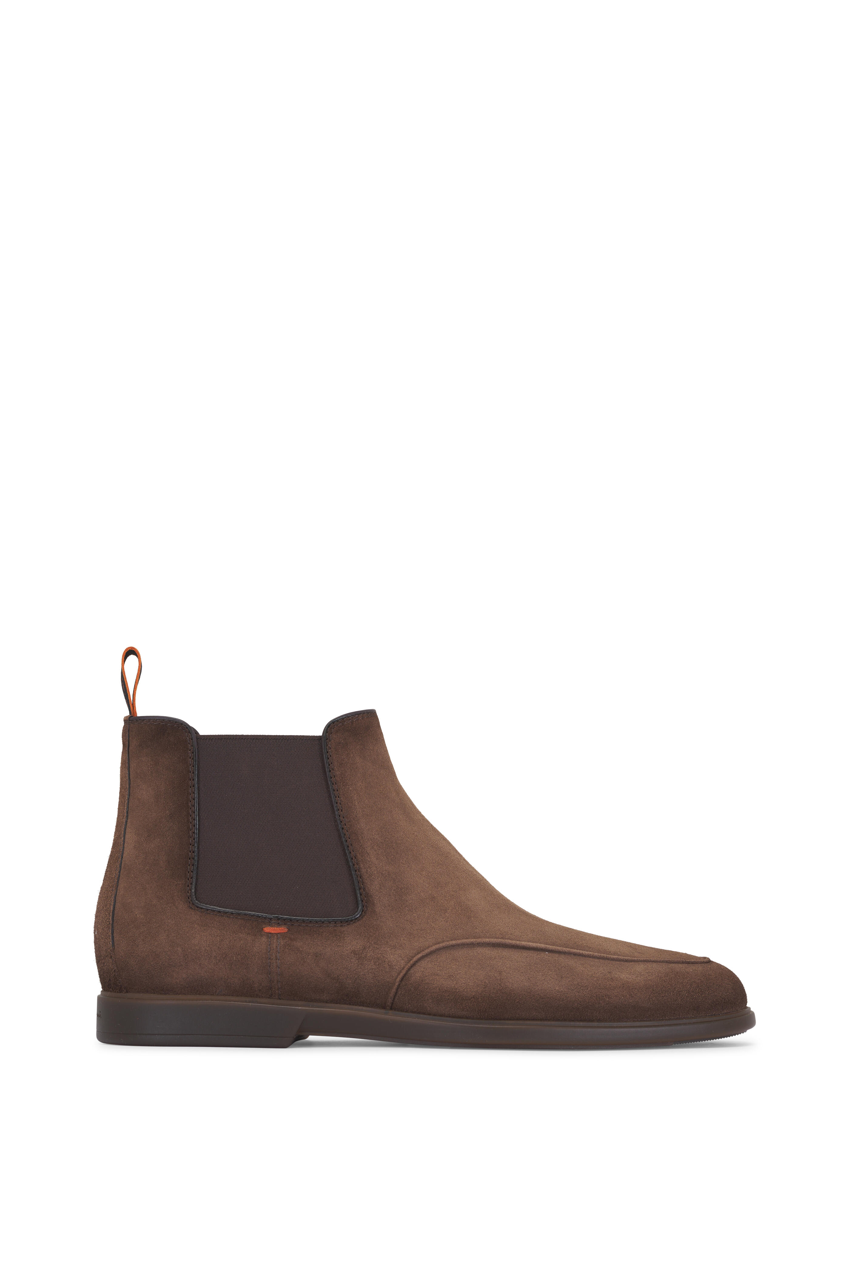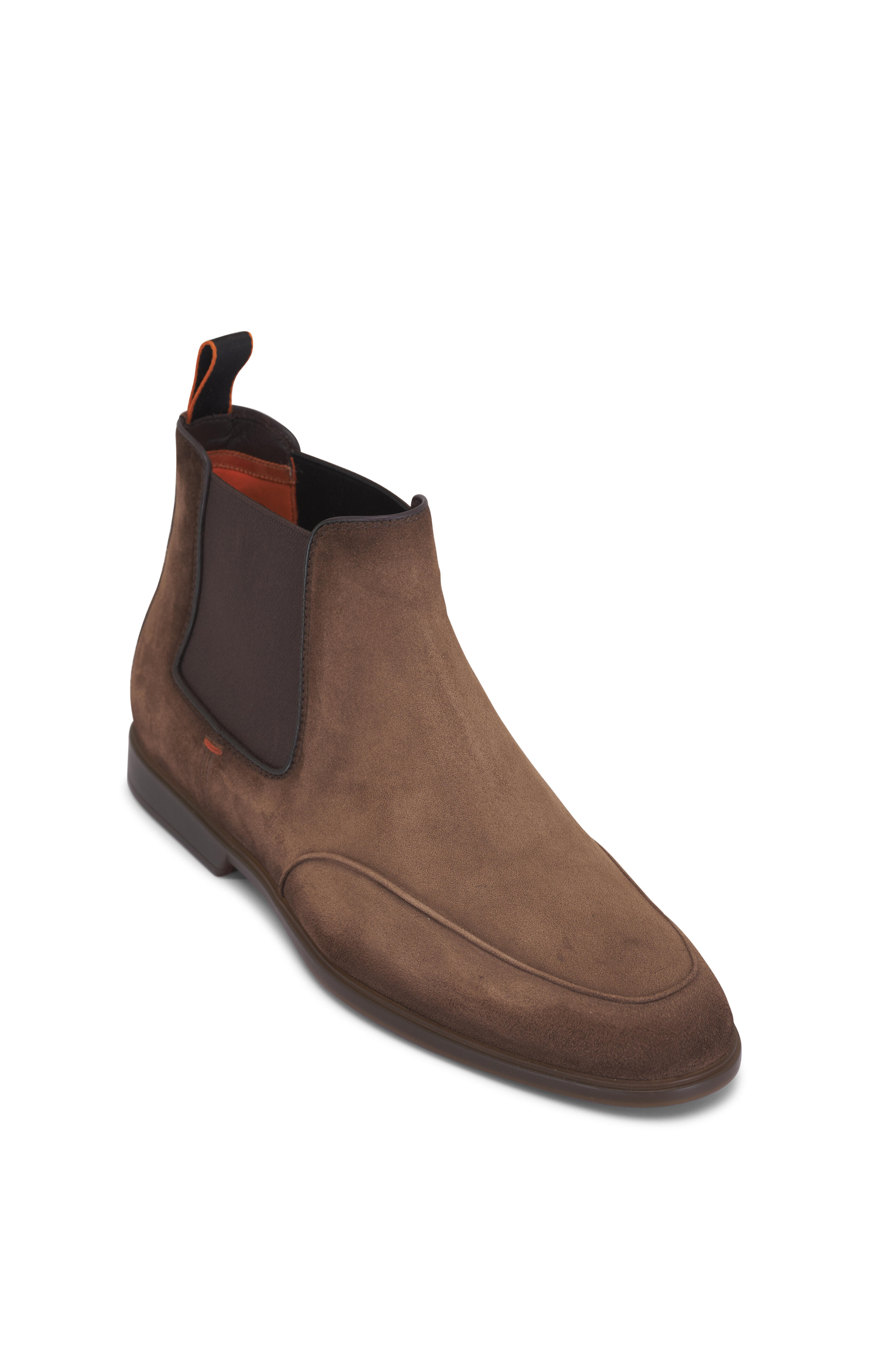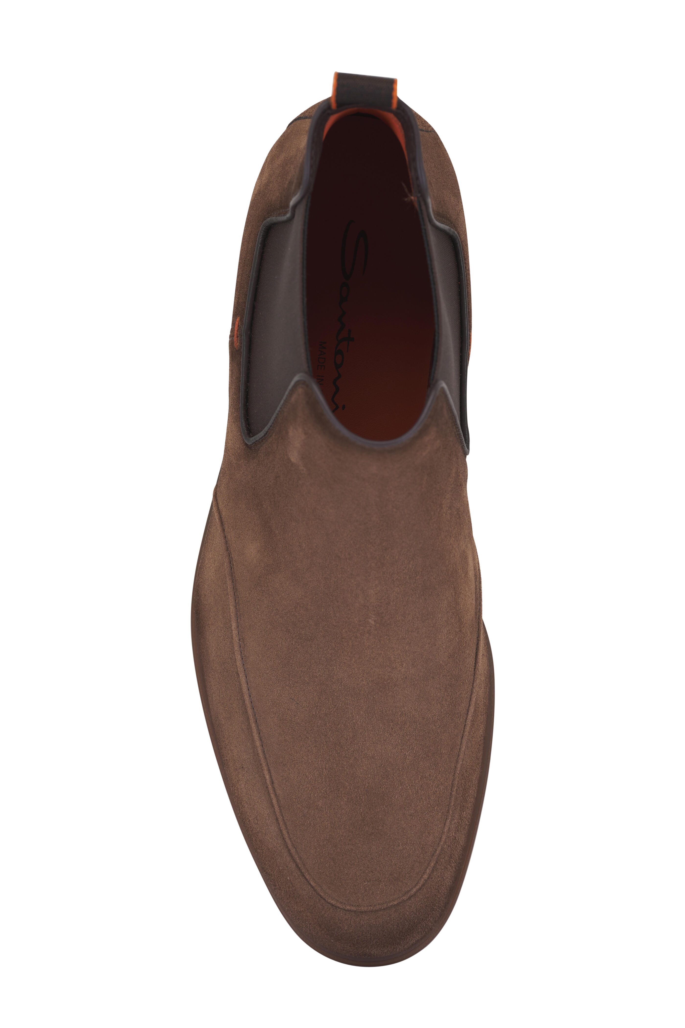Suede upper. Round tapered toe. Slip-on style. Elasticized side gores. Leather lining and insole. Rubber sole. Made in Italy.