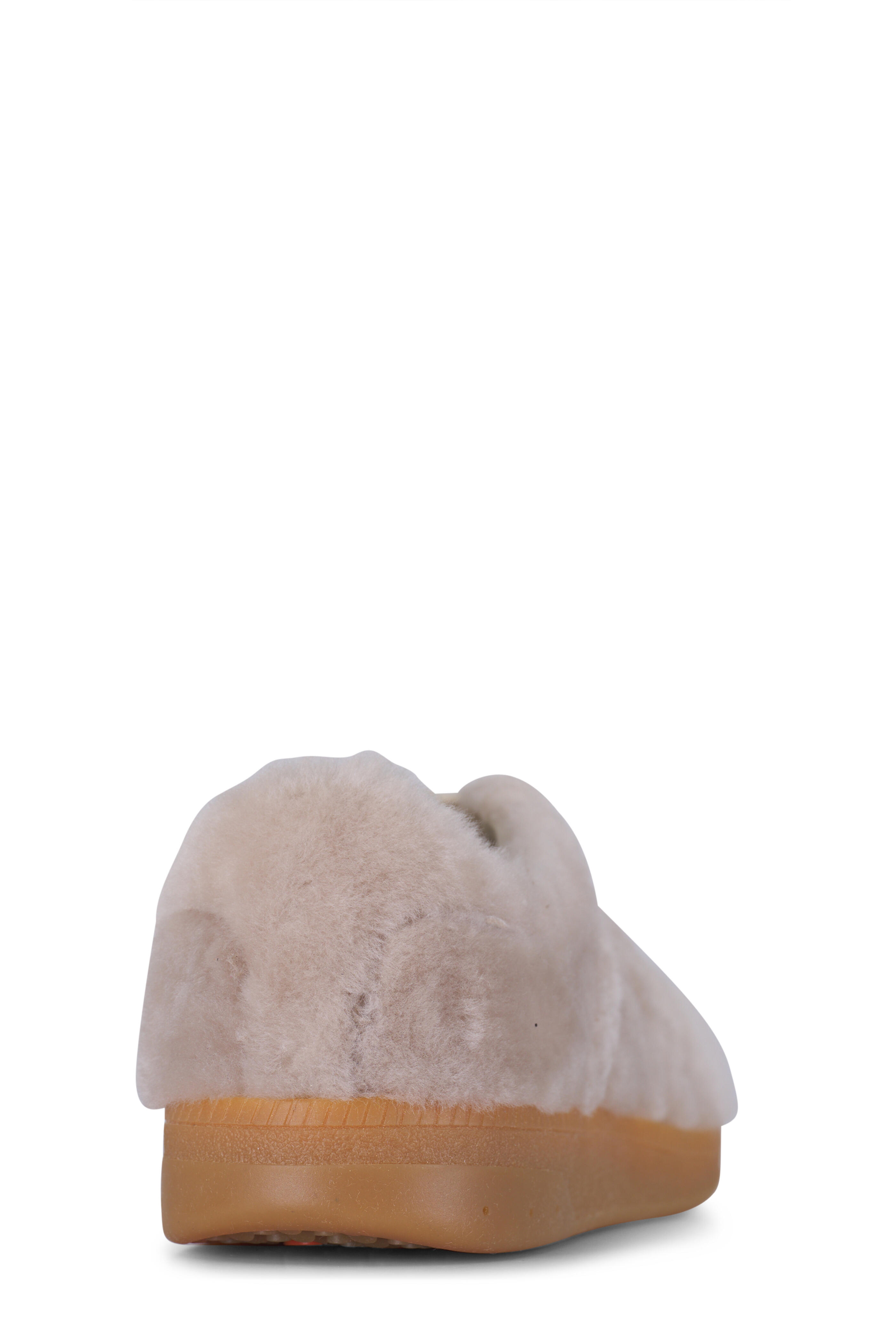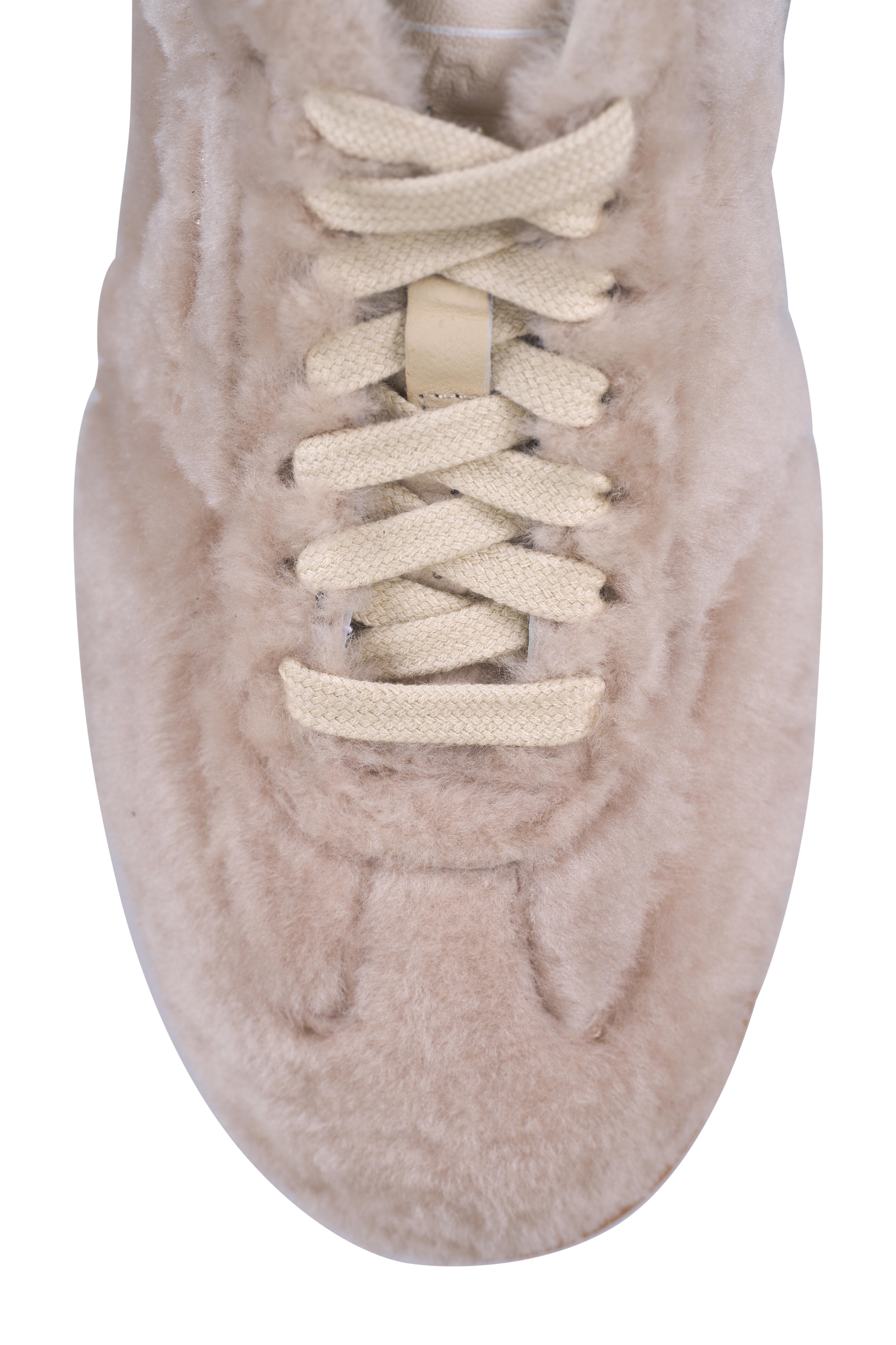 Lamb fur upper. Leather lining and insole. Round toe. Lace up closure. Rubber sole. Made in Italy.