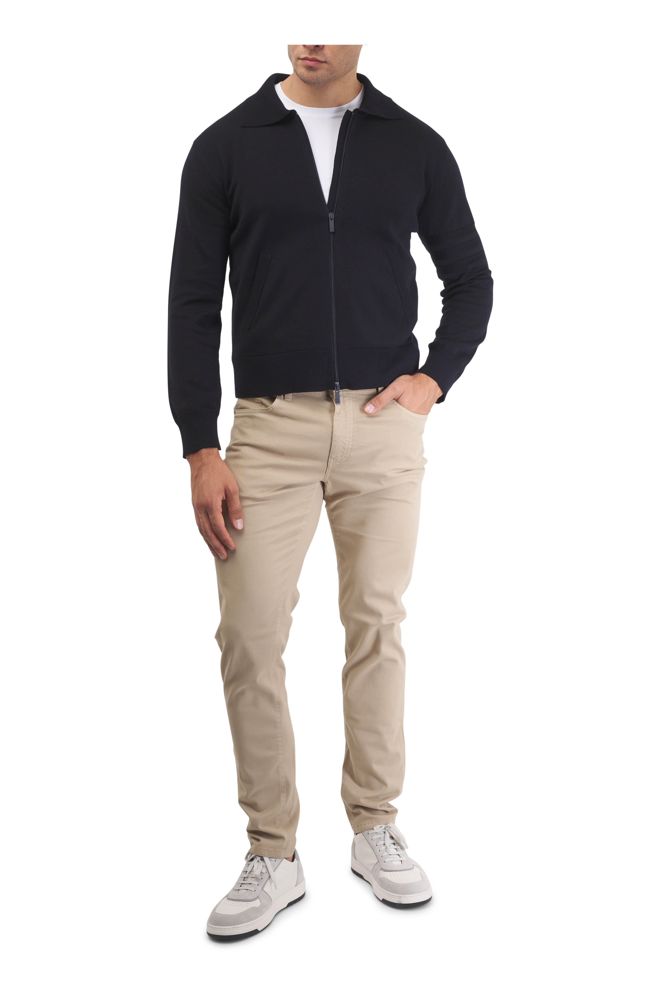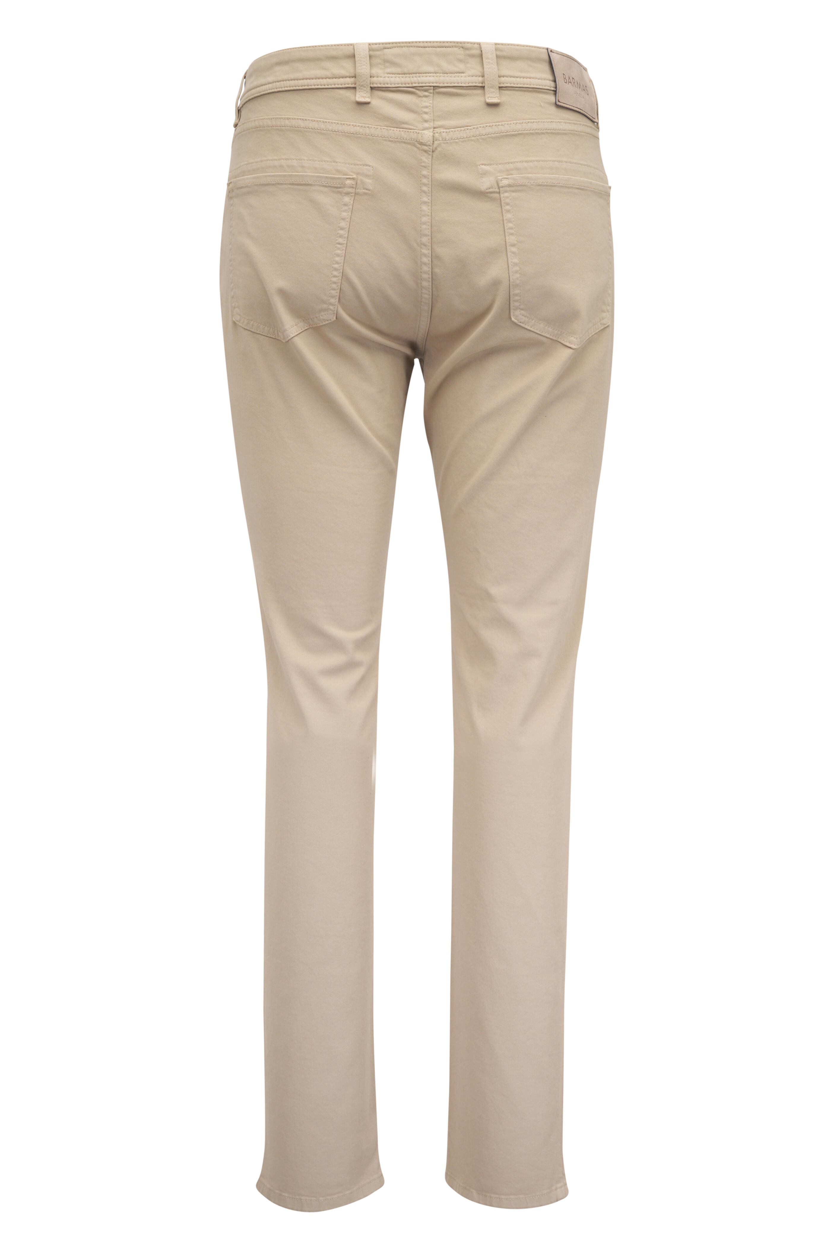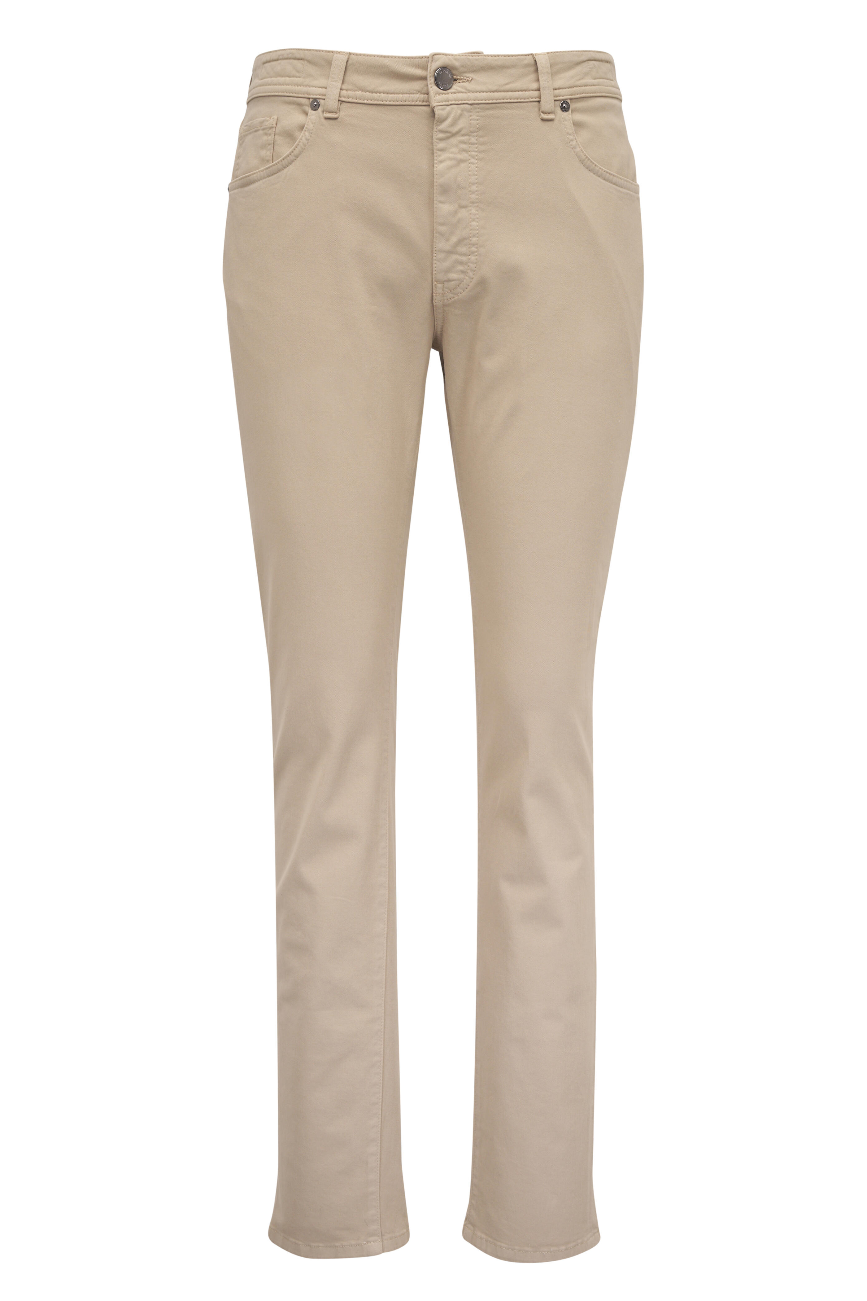 Zip fly with button closure. Banded waist; belt loops. Five pocket styling. Made in Italy. 33" Inseam. 98% cotton, 2% elastane. Machine wash.