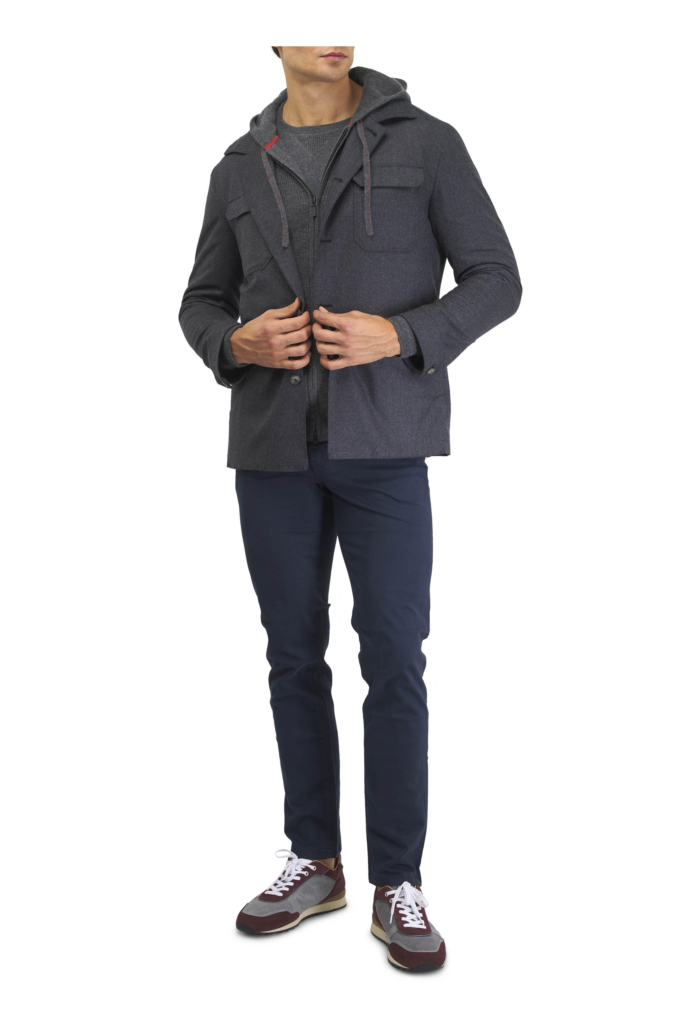 Zip fly with button closure. Banded waist; belt loops. Five pocket styling. Made in Italy. 33" Inseam. 98% cotton, 2% elastane. Machine wash.