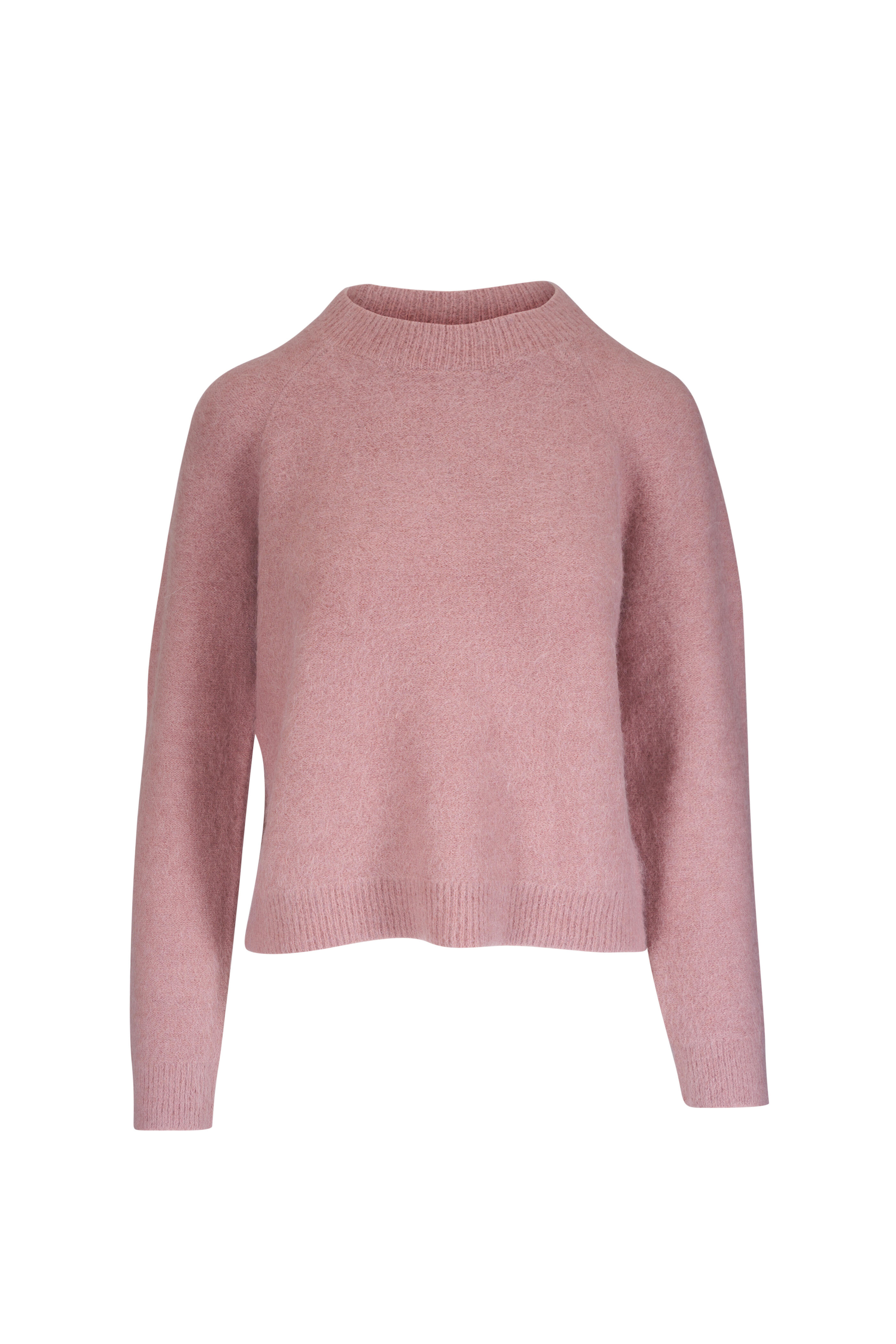 Crew neckline. Ribbed knit trim. Imported. Approximately 21 ¾" shoulder to hem. 55% alpaca, 43% nylon, 2% spandex. Dry clean.
