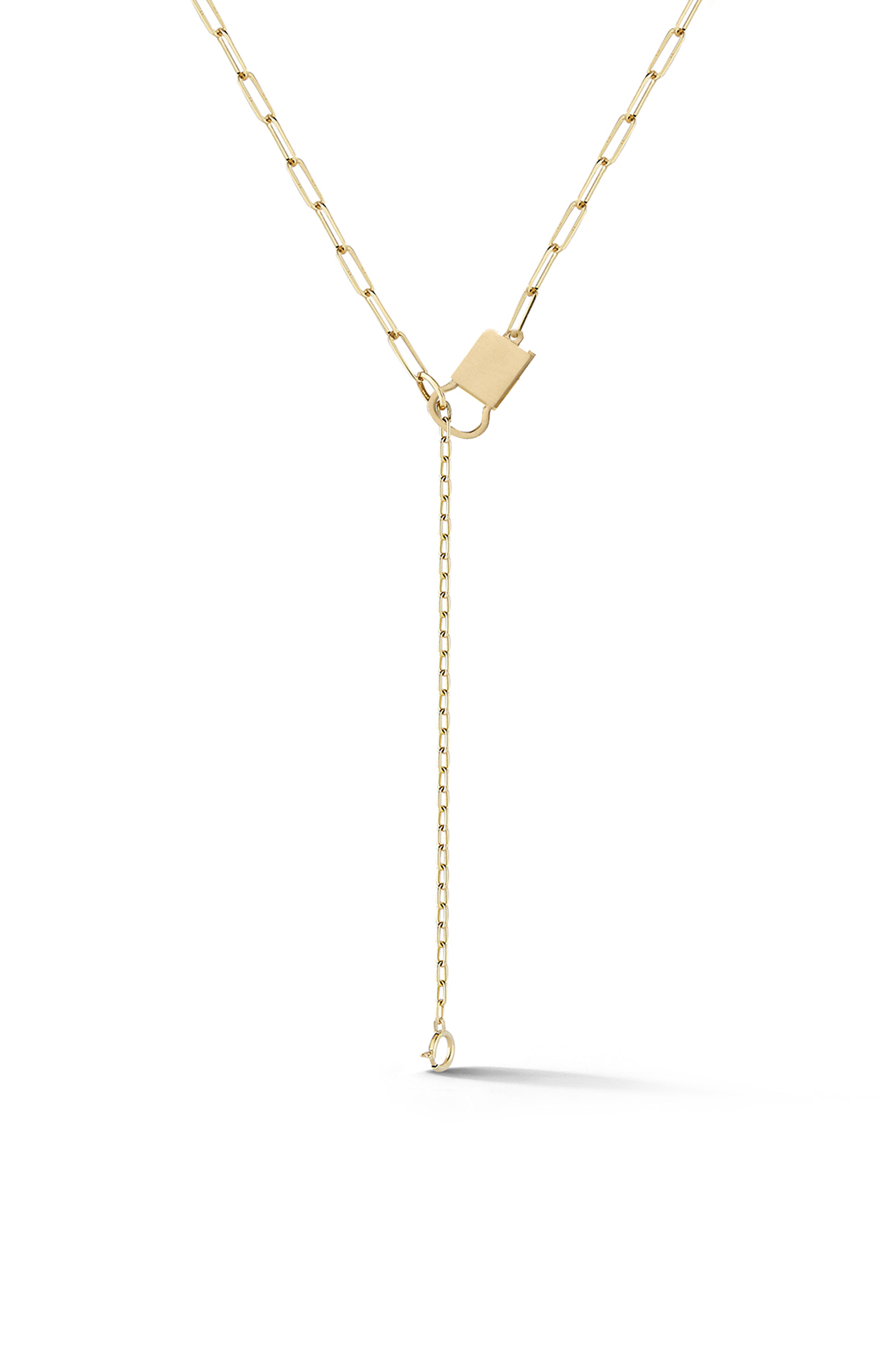 18k Yellow Gold. 31" Length with 4" lariat (35" total length).