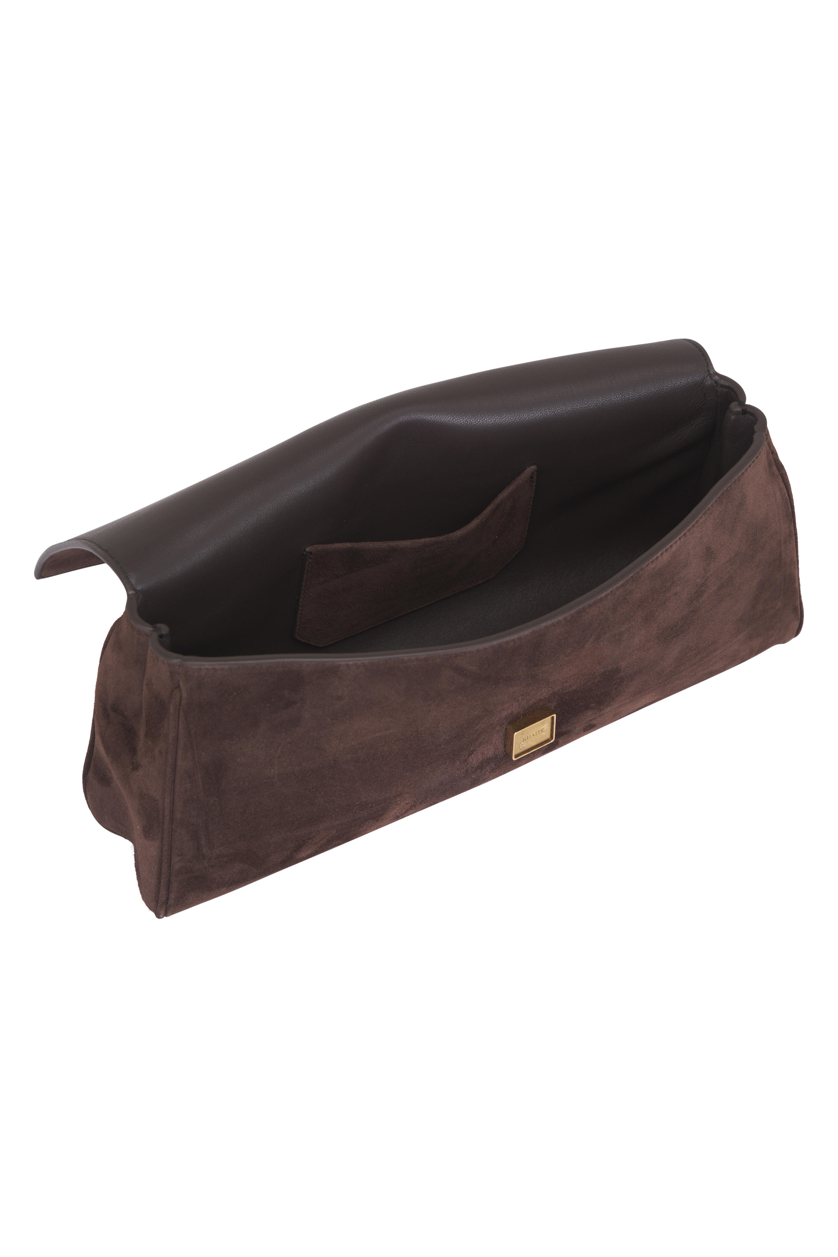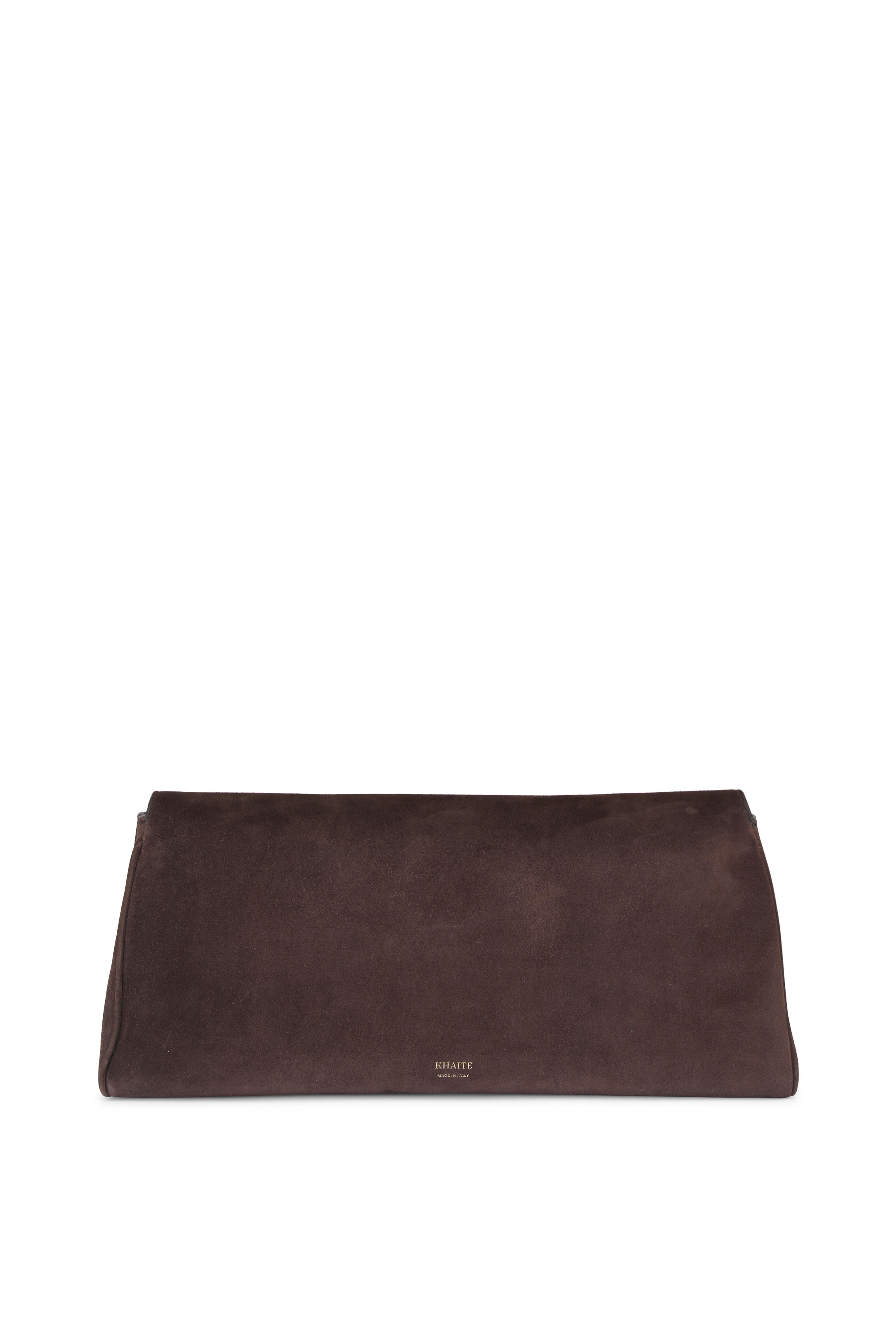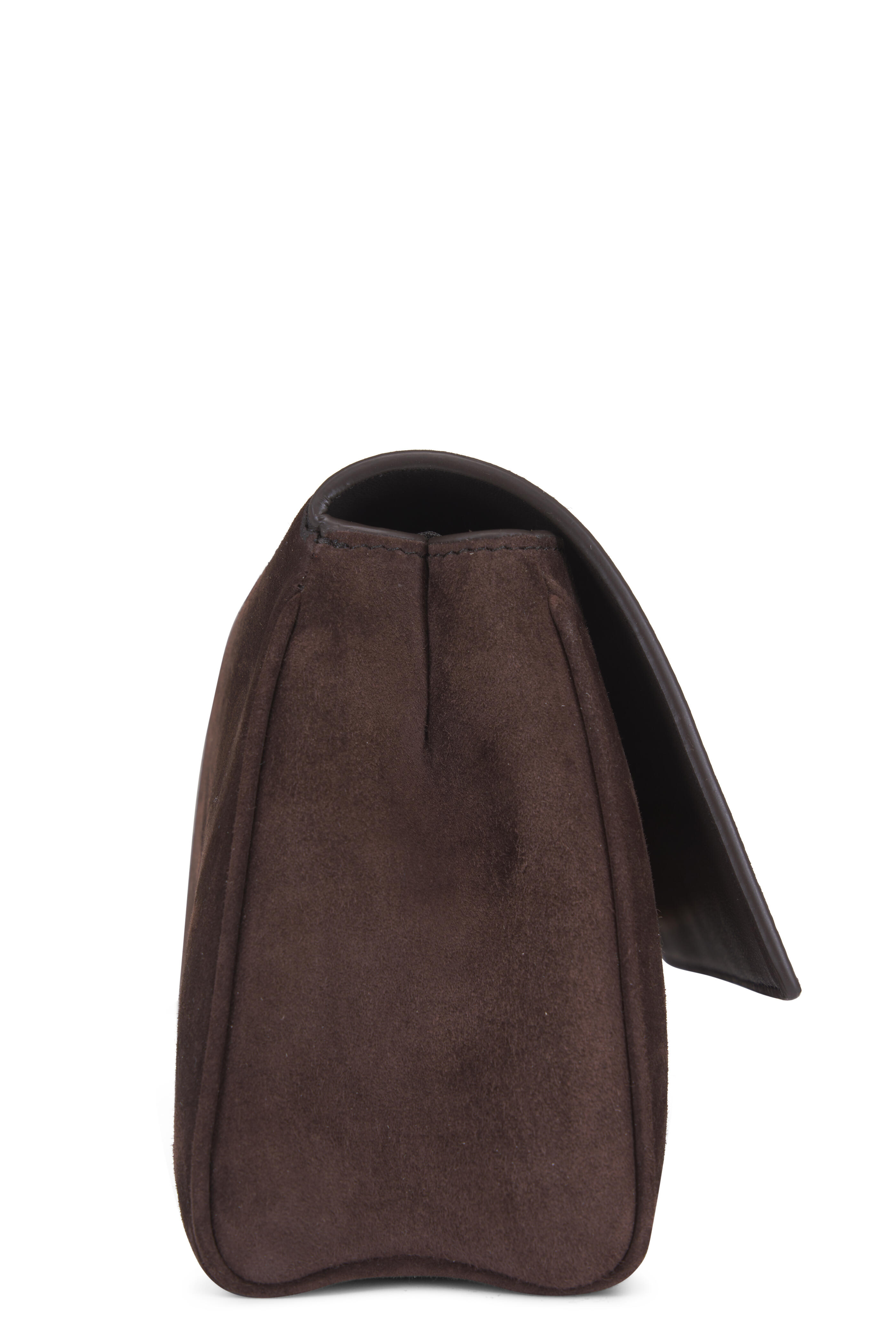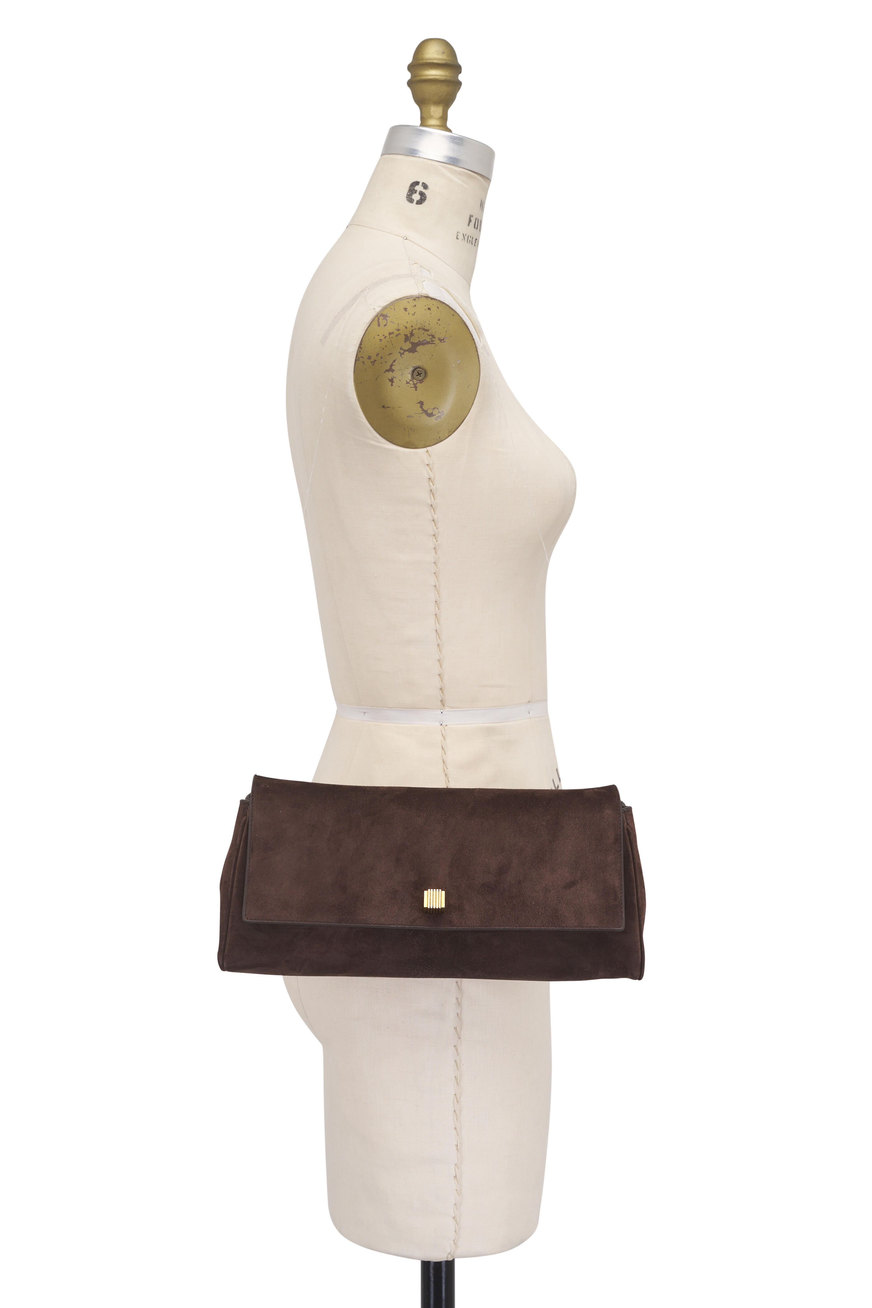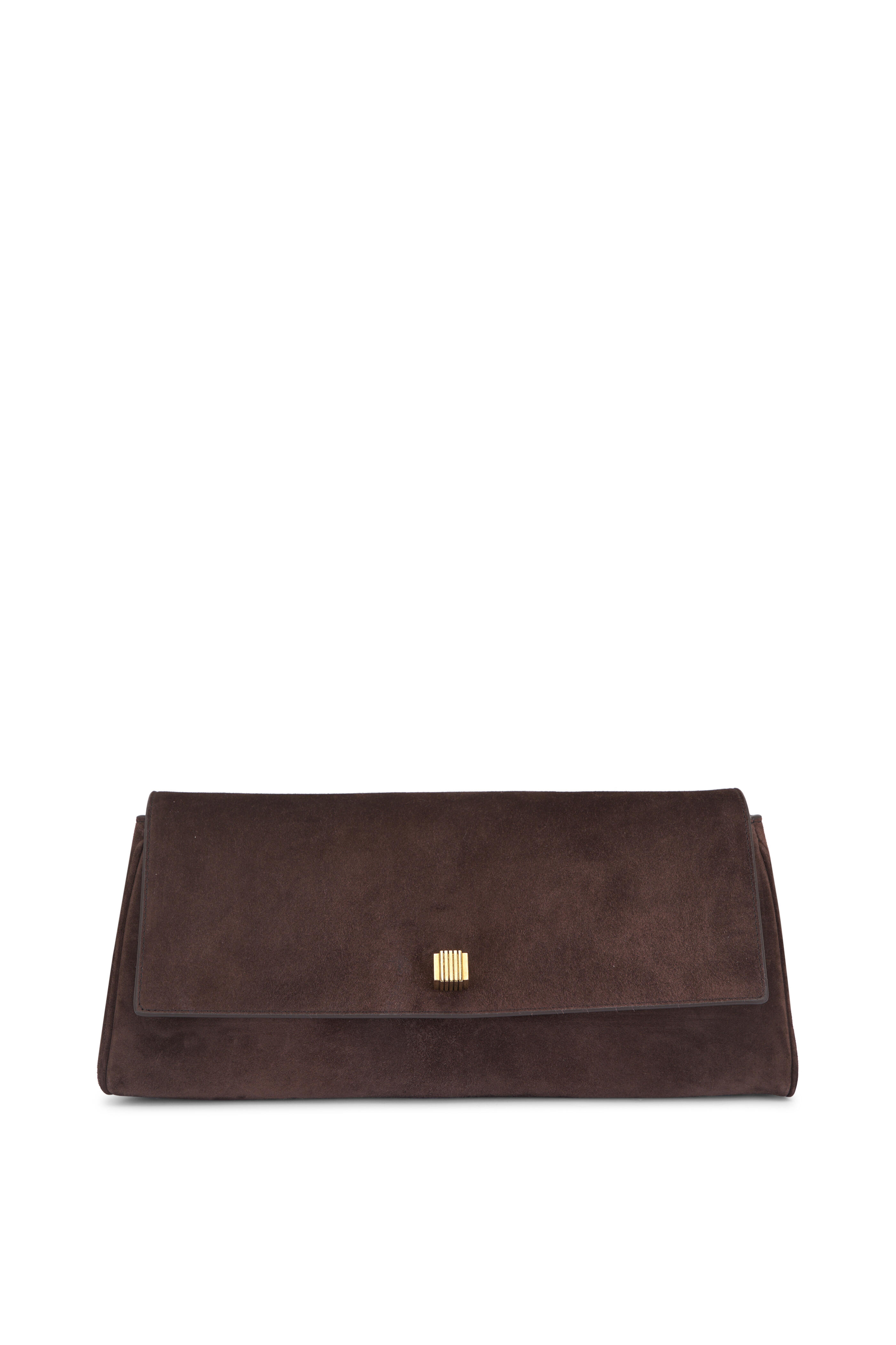 Calfskin suede. Front flap; magnetic closure. Single compartment. Interior card pocket. Leather lining. Made in Italy. Length: 11.9". Width: 2.5". Height: 5.5".