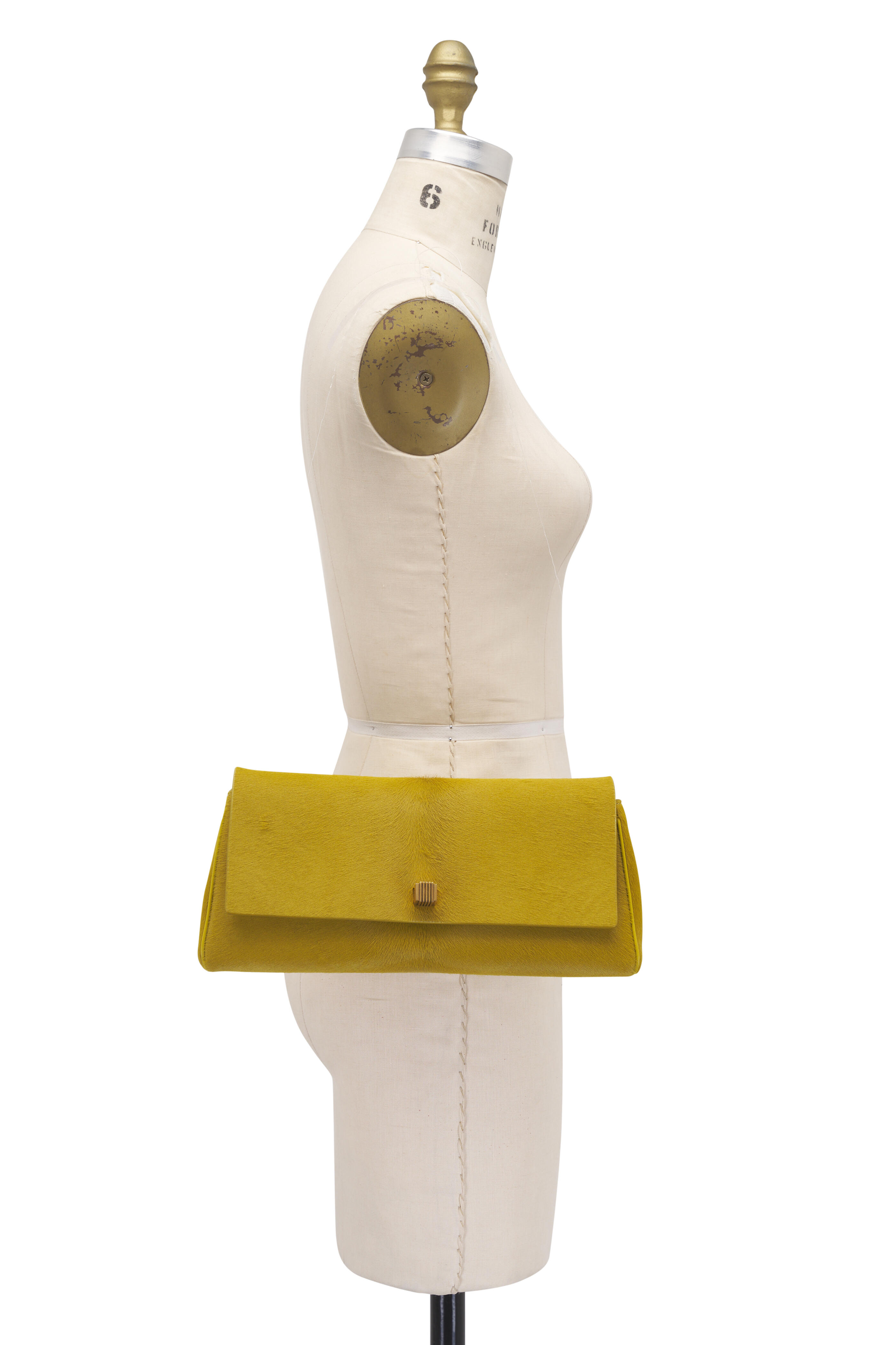 Textured calf hair. Front flap; magnetic closure. Interior card pocket. Leather lining. Made in Italy. Length: 11.9 in/30.2 cm. Width: 2.5 in/6.4 cm. Height: 5.5 in/14 cm.