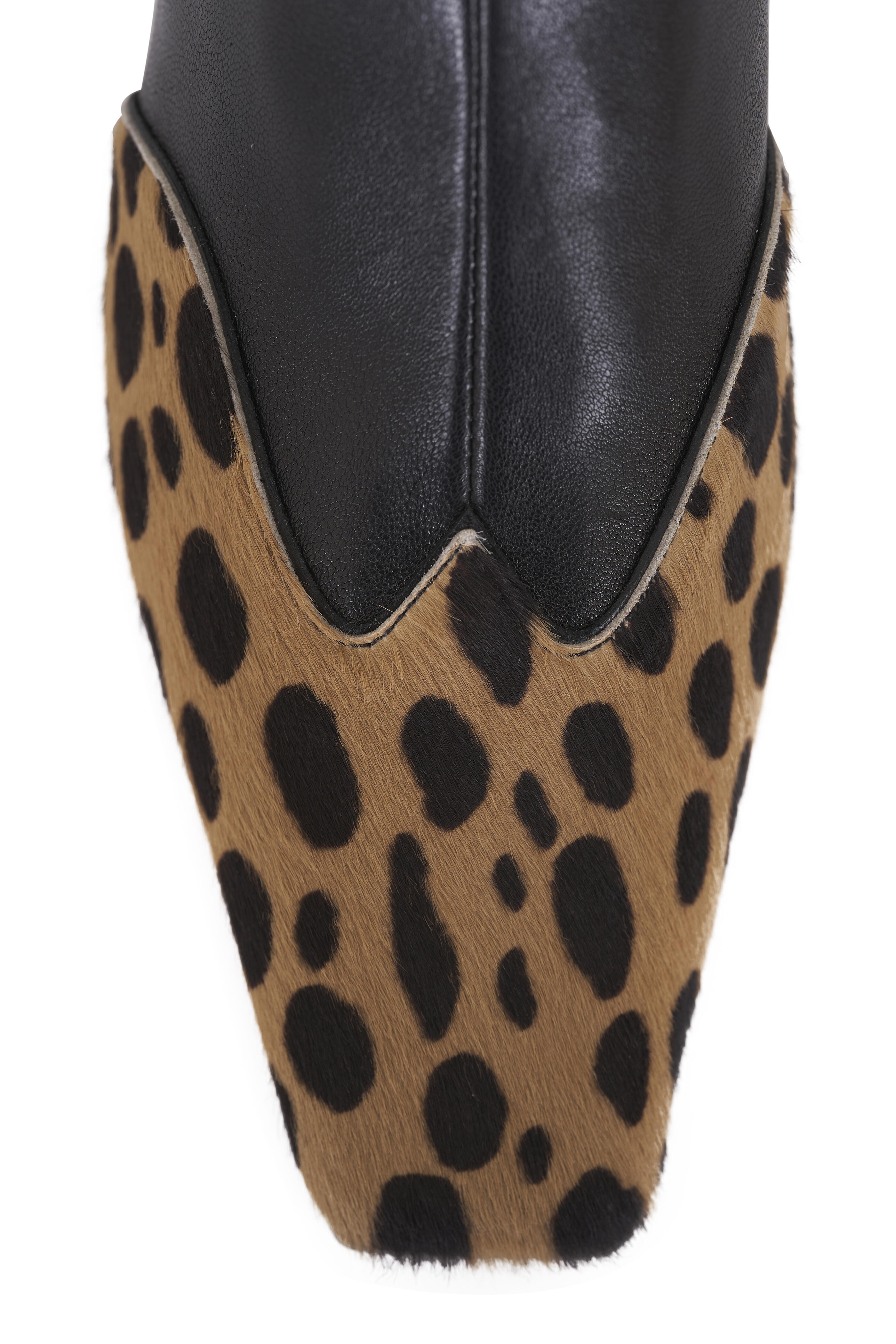 Leather upper/spotted haircalf. Square toe. Side zip closure. Breathable lining. Leather sole. Block heel. Made in Italy. Heel measurement: 40mm.