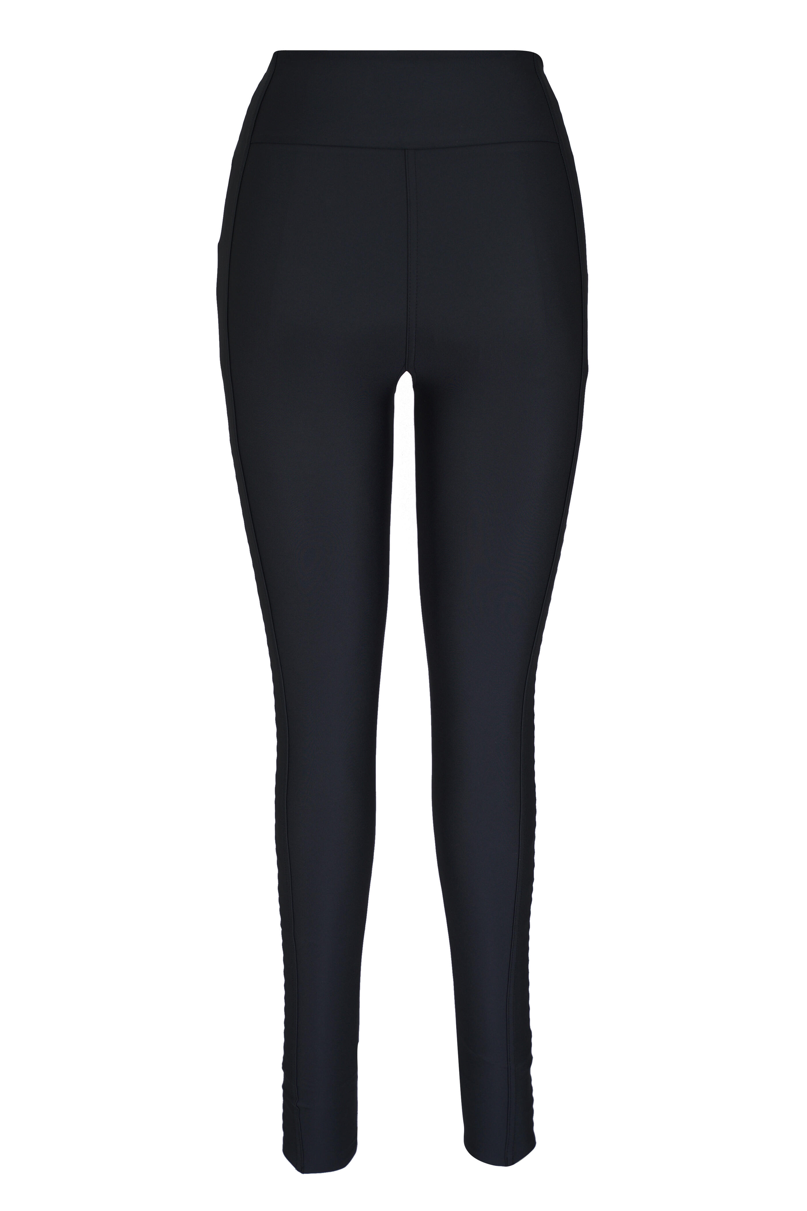 Elasticized, top stitch waistband. Side panels. Decorative double-needle stitching. Bonded hem. Imported. 90% polyester, 10% elastane. Machine wash.