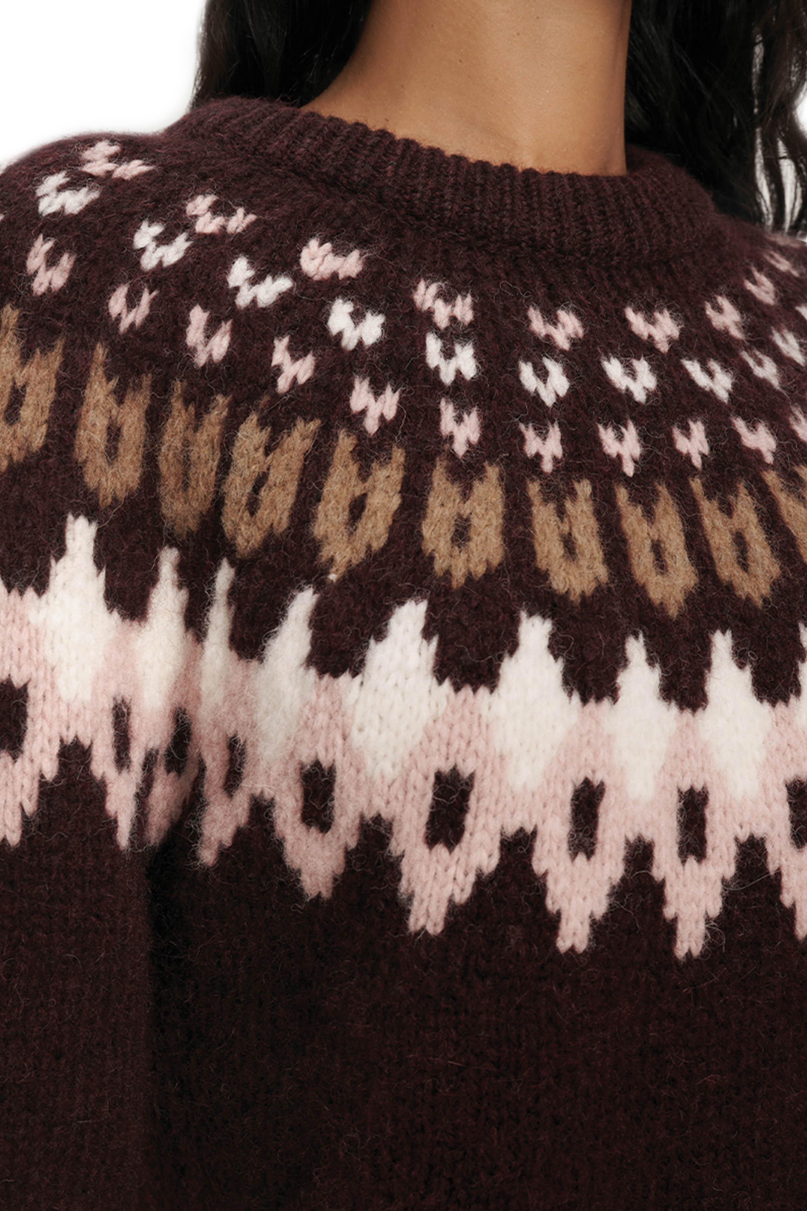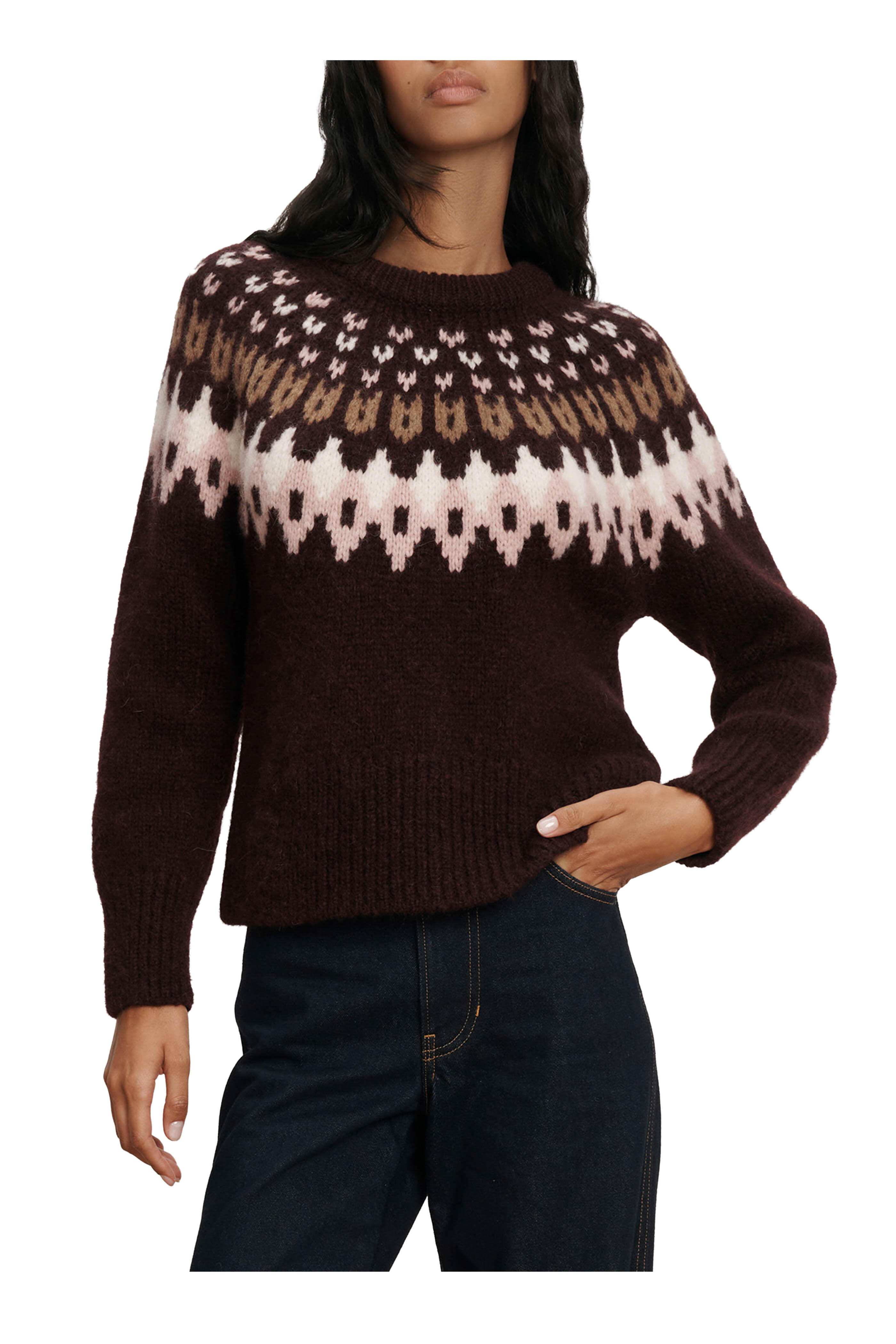 Crew neckline. Ribbed knit trim. Imported. Approximately 22" shoulder to hem (measurements taken from size XS). Relaxed fit. 68% alpaca, 22% polyamide, 10% wool. Dry clean.