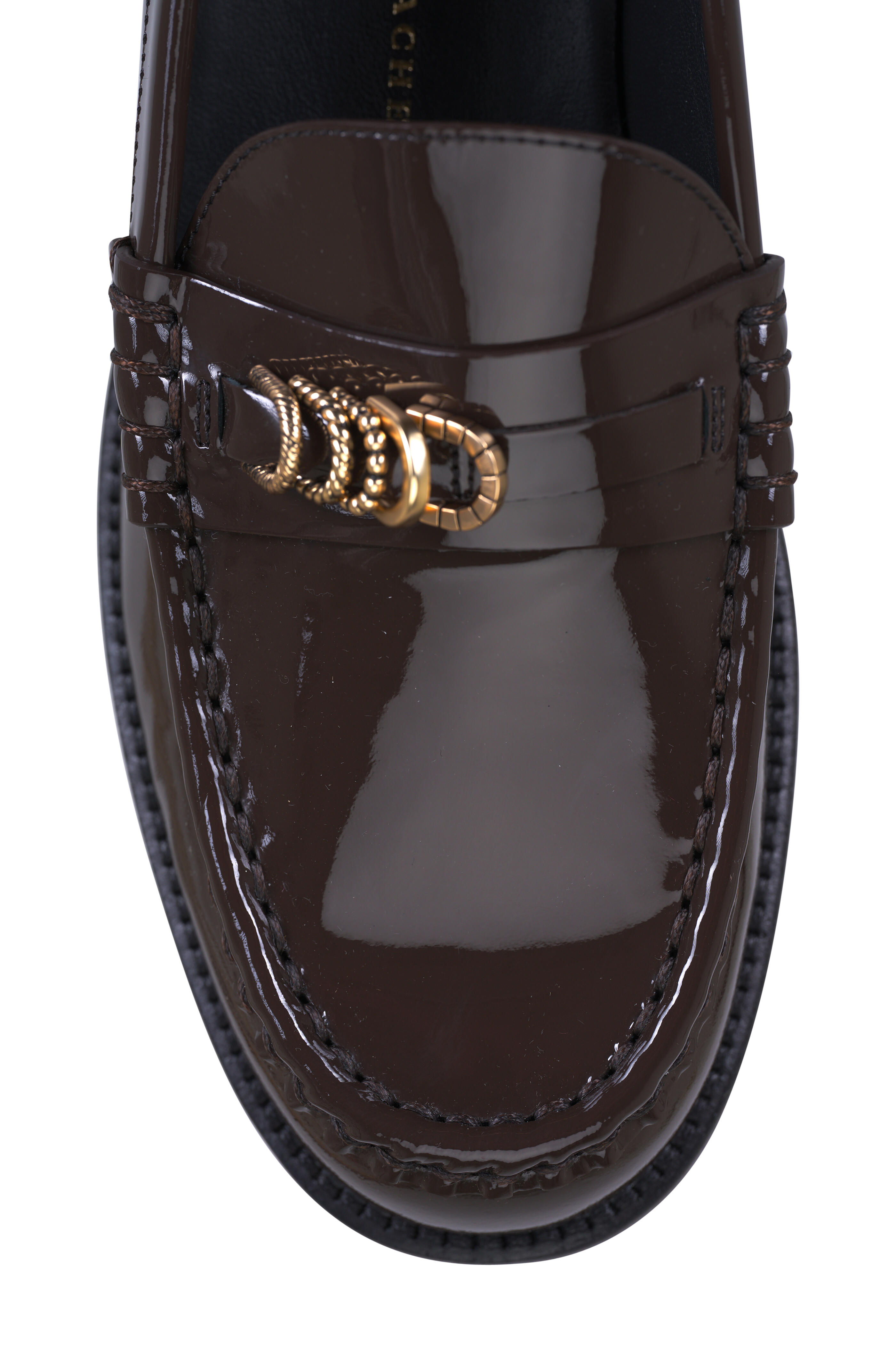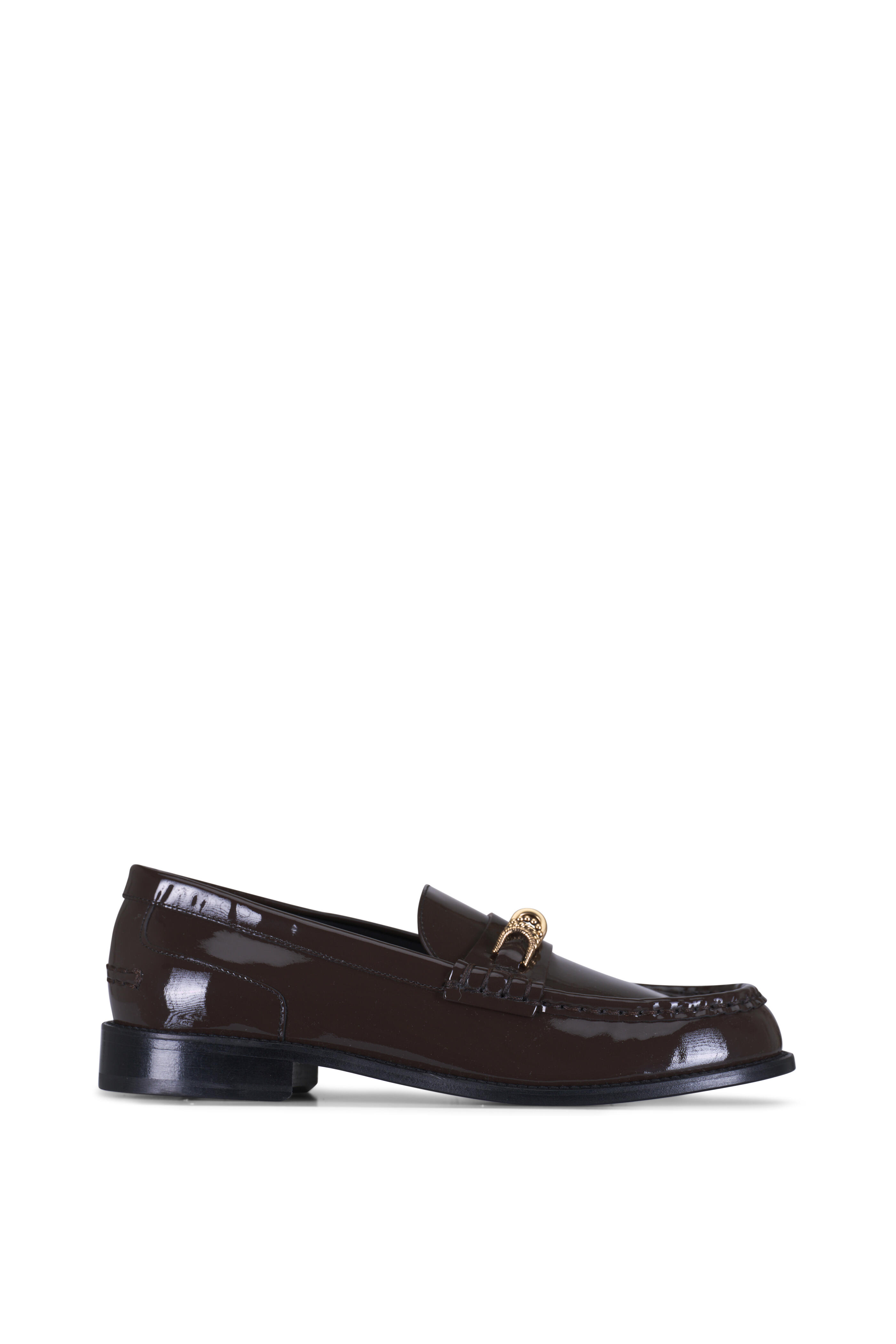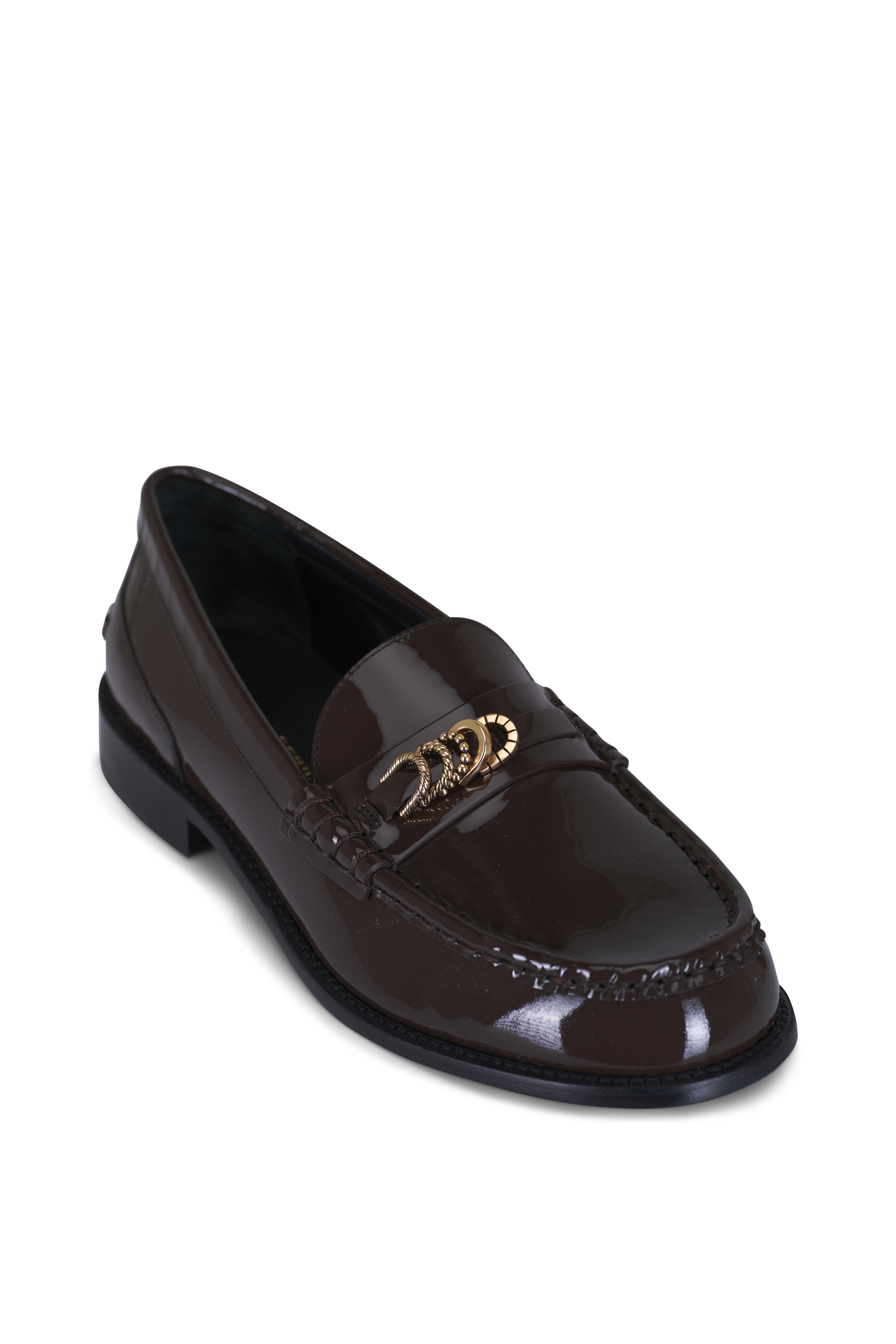 Shiny leather upper. Round toe. Penny strap across vamp with charm details. Leather lining and insole. Rubber and leather sole. Made in Italy.