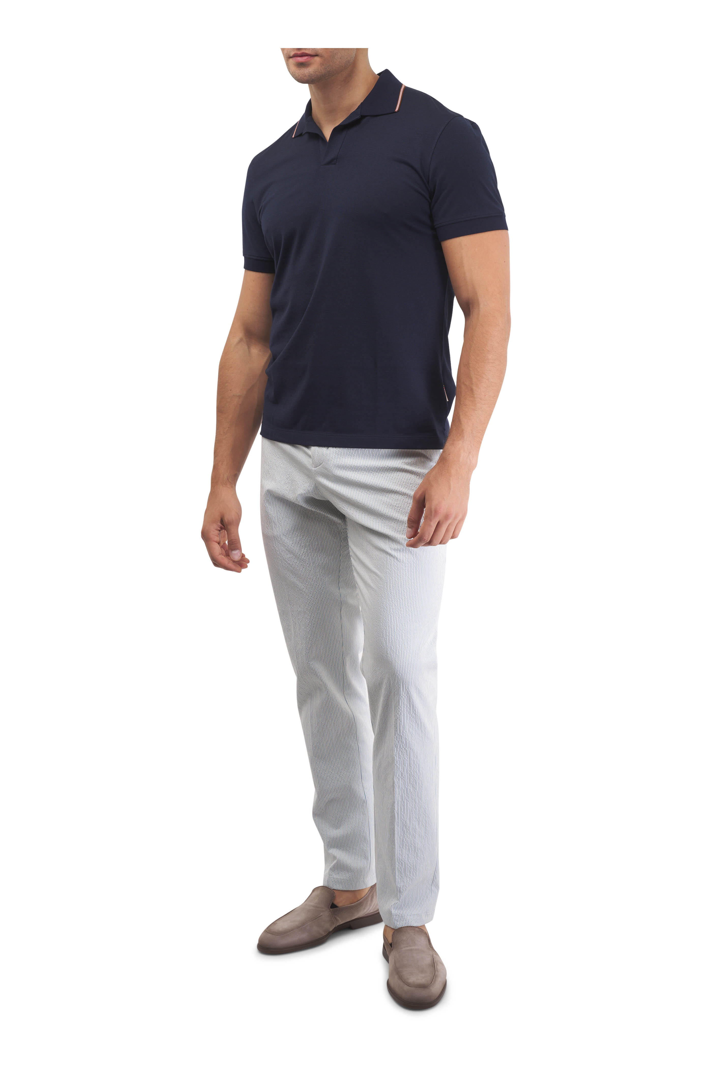 Johnny collar. Ribbed cuffs. Vented hem. Imported. 51% cotton, 49% lyocell. Machine wash.