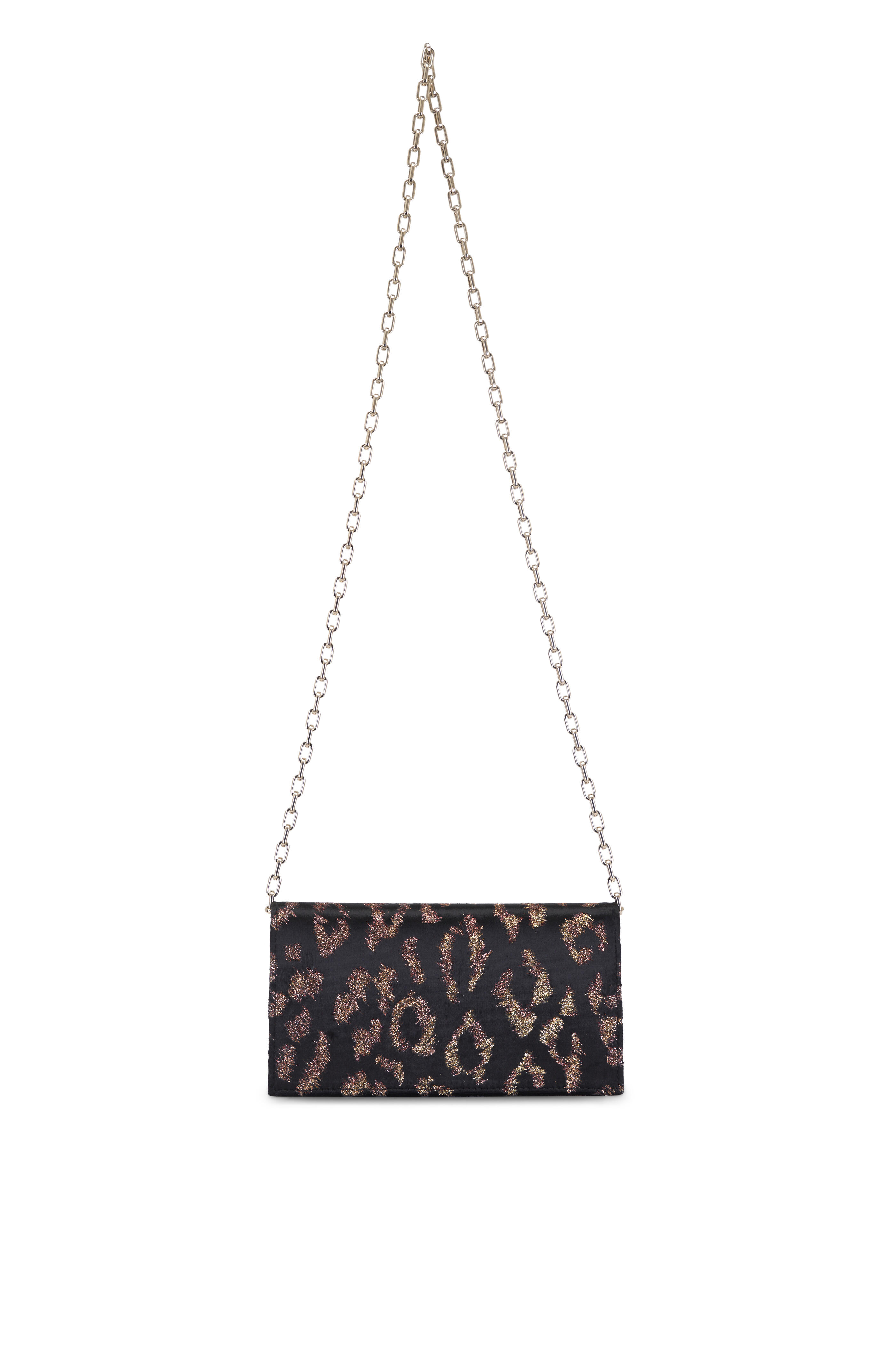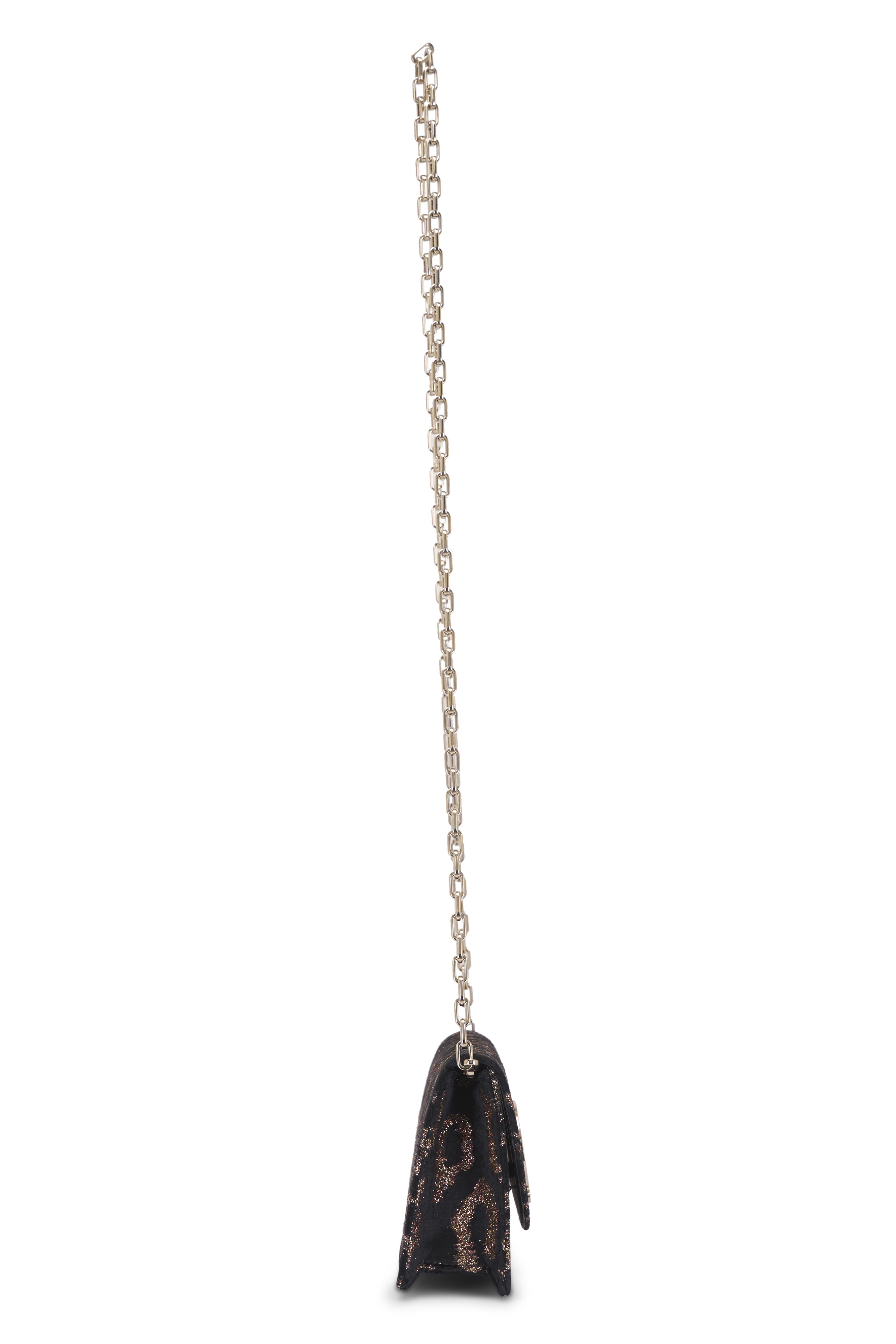 Embroidered velvet. Removable chain strap. Front flap; snap closure. Three interior card slots; slip pocket. Gradient gold and copper glitter detailing. CL monogram. Made in Italy. H 4.7 x L 8.6 x W 2.1 inches. Chain length: 44.9".