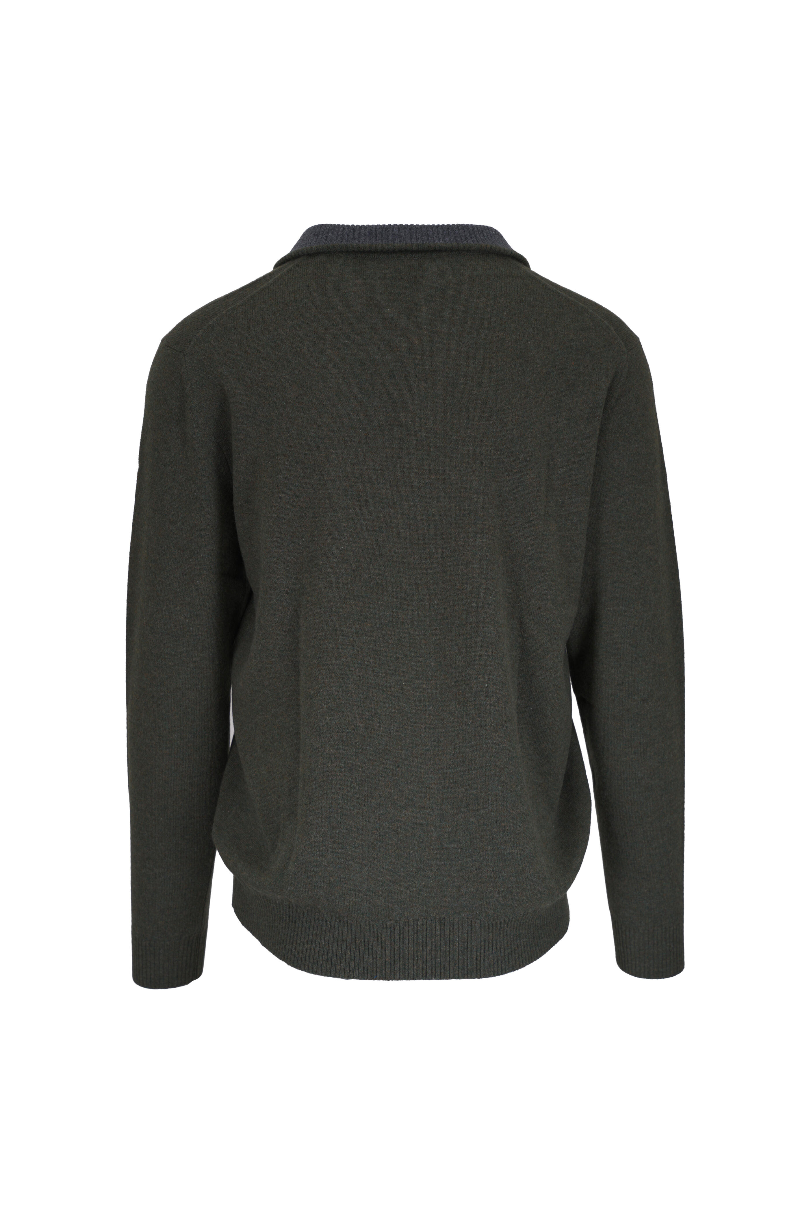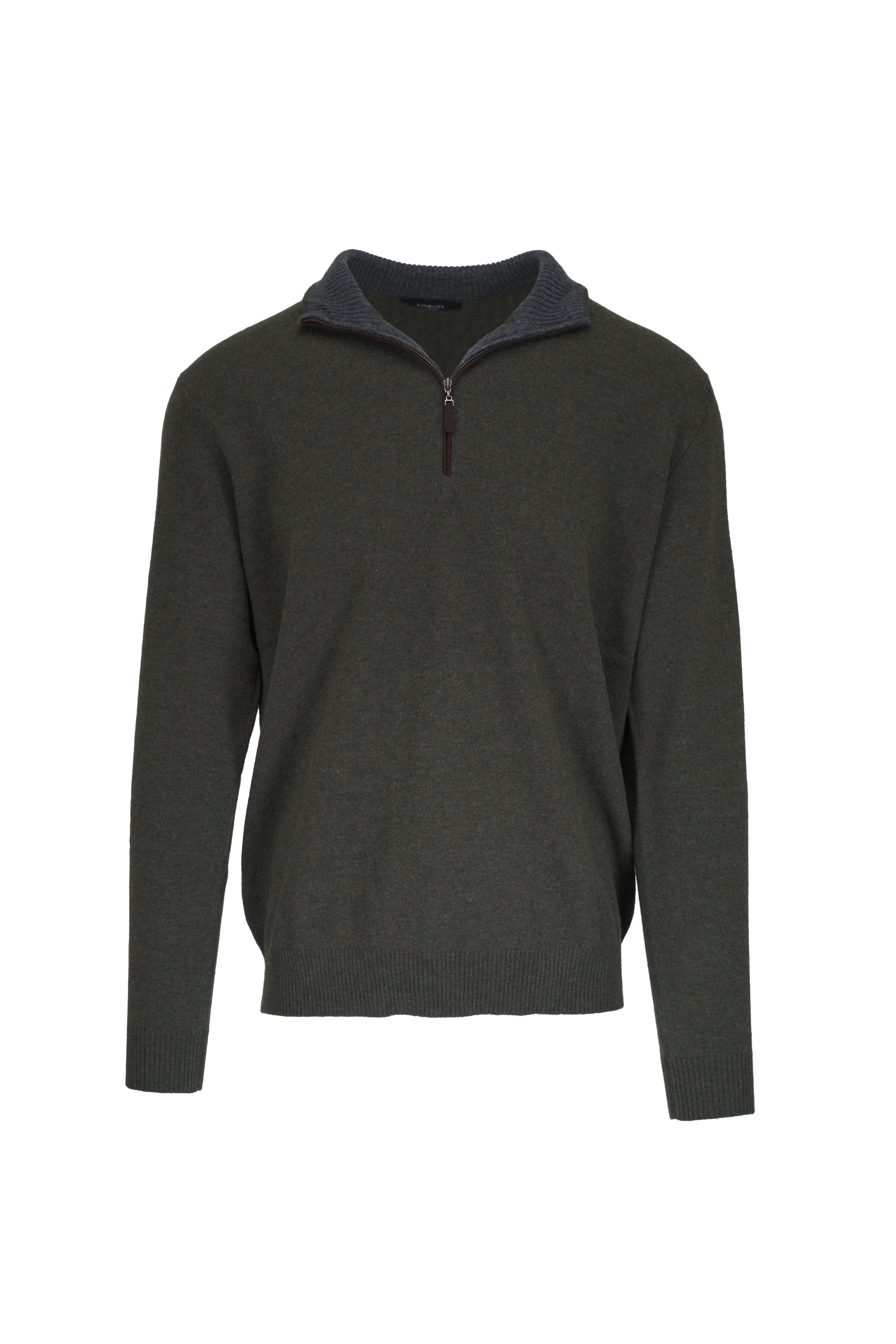 • Kinross - Olive Cashmere Quarter-Zip Pullover