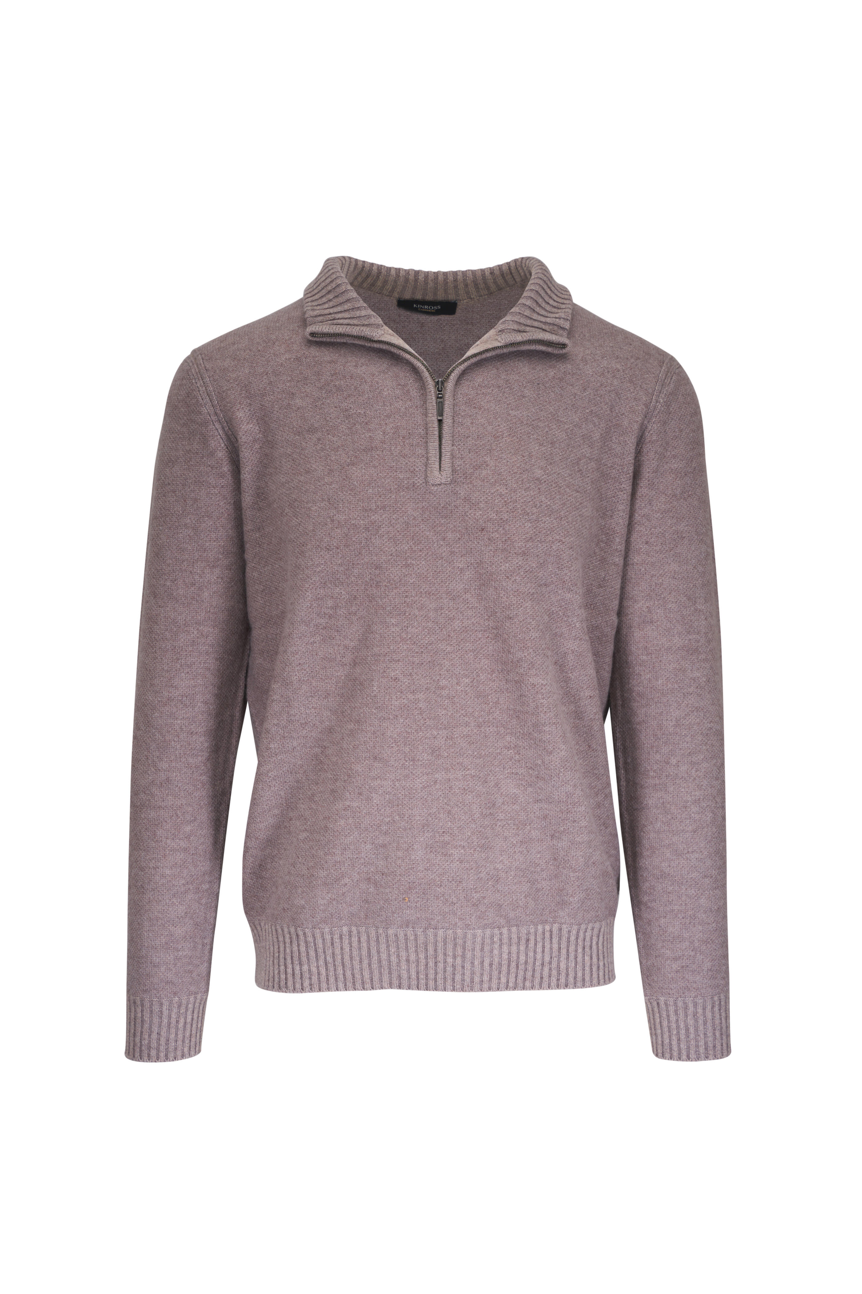 Mockneck. Quarter zip placket. Ribbed trims. Imported. 100% cashmere. Hand wash.