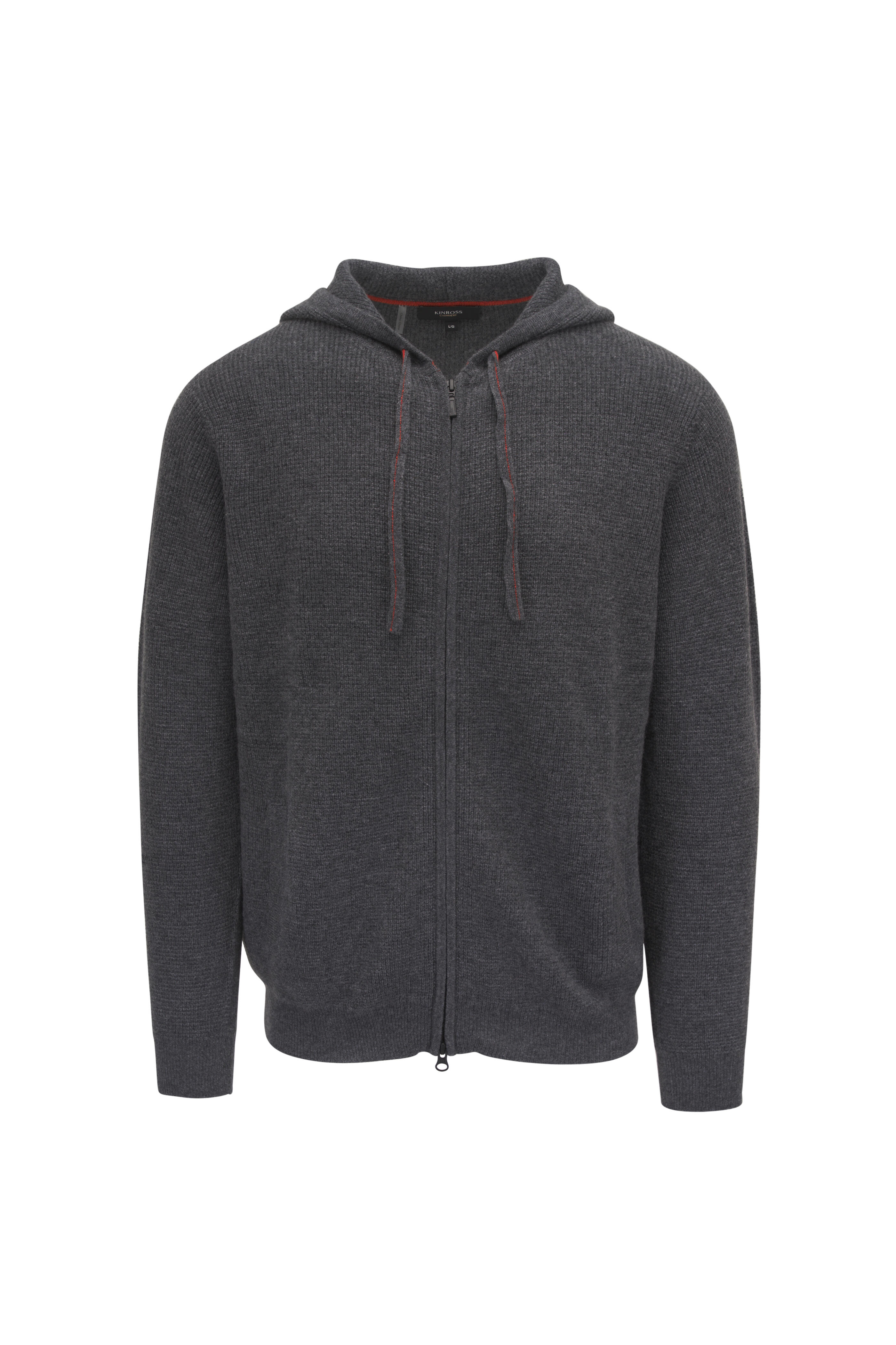 Charcoal Thermal Cashmere Front Zip Hoodie