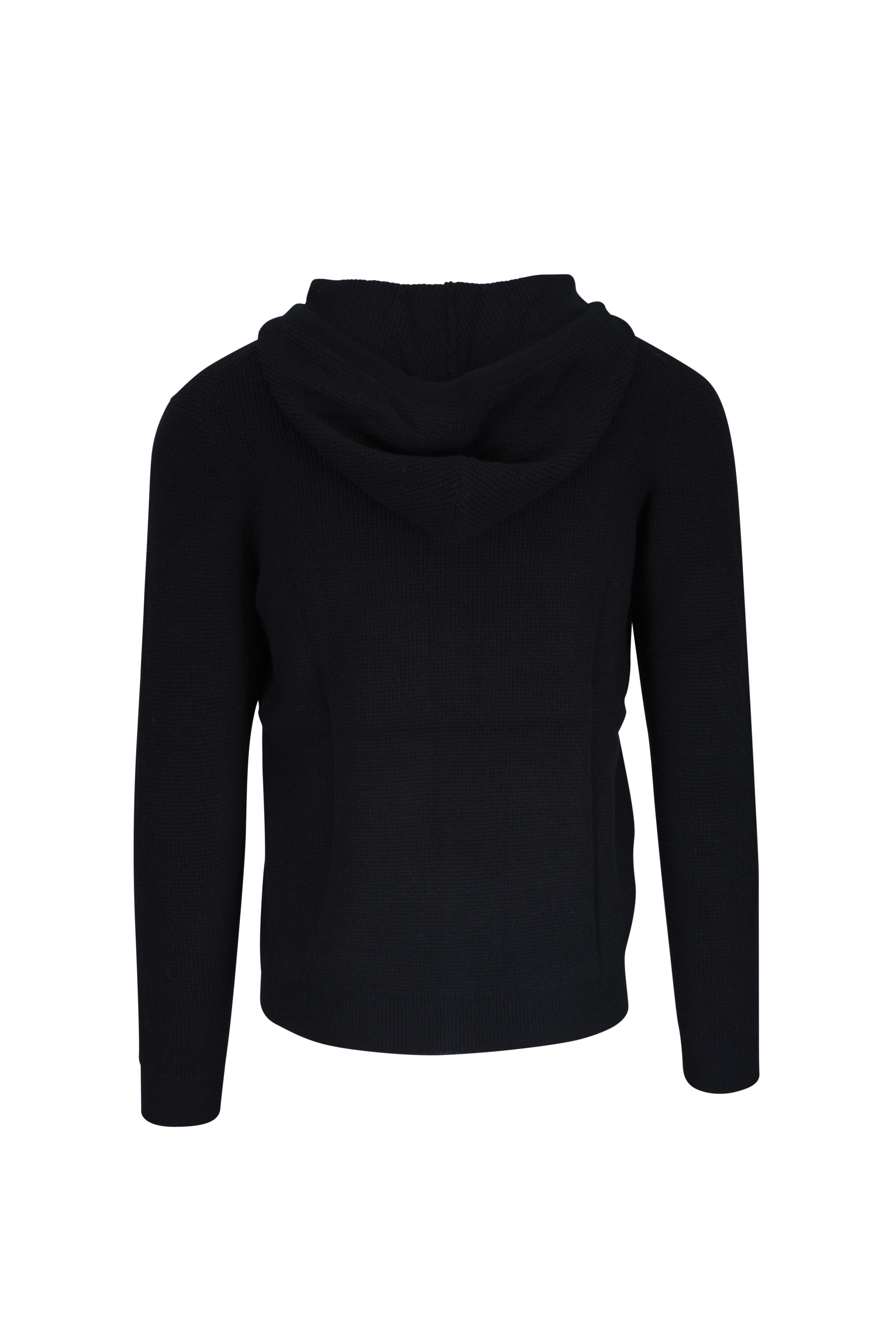 Hooded. Two-way zip. Lower slip pockets. Imported. 100% cashmere. Hand wash.