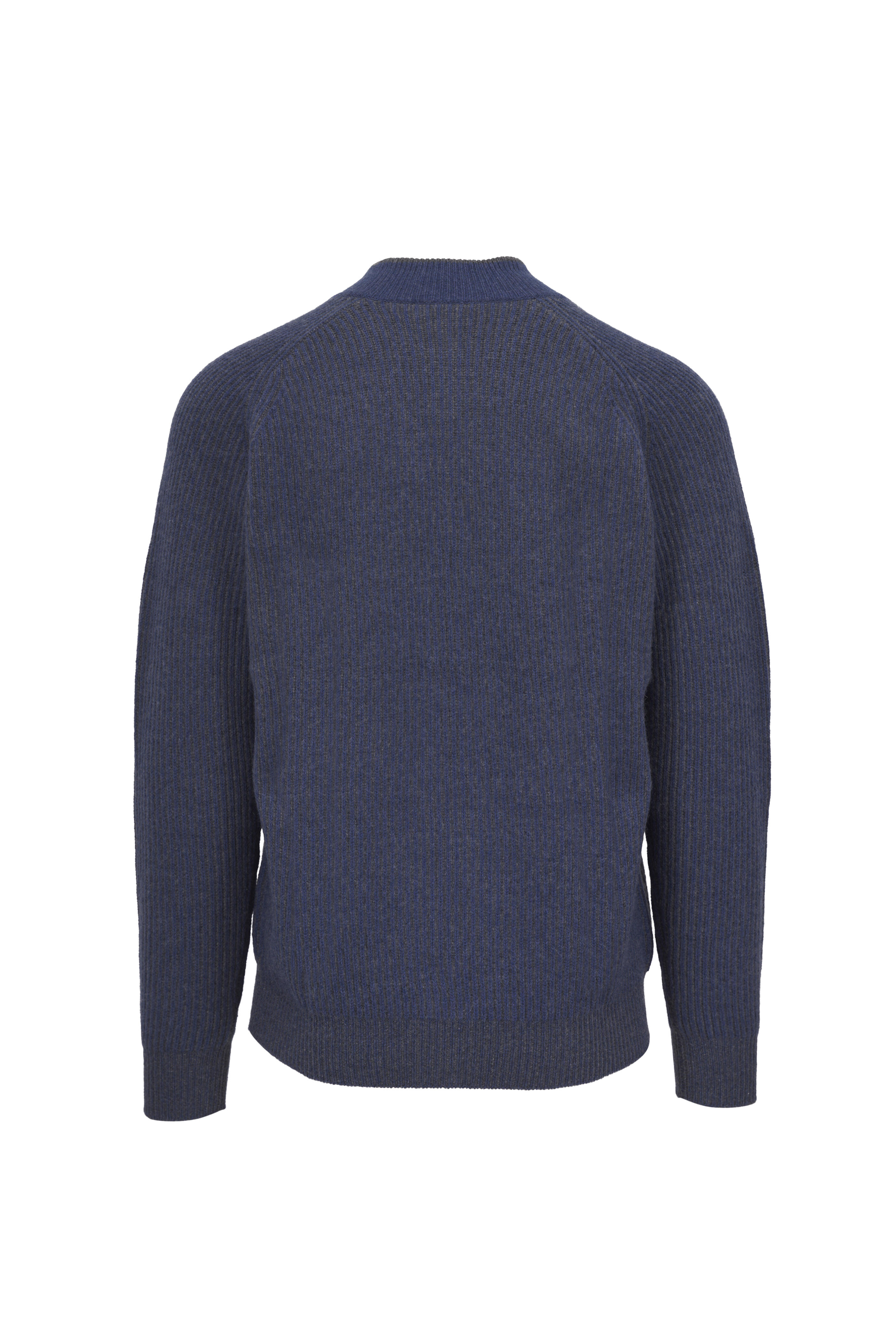 Indigo Plaited Cashmere Quarter Zip Sweater