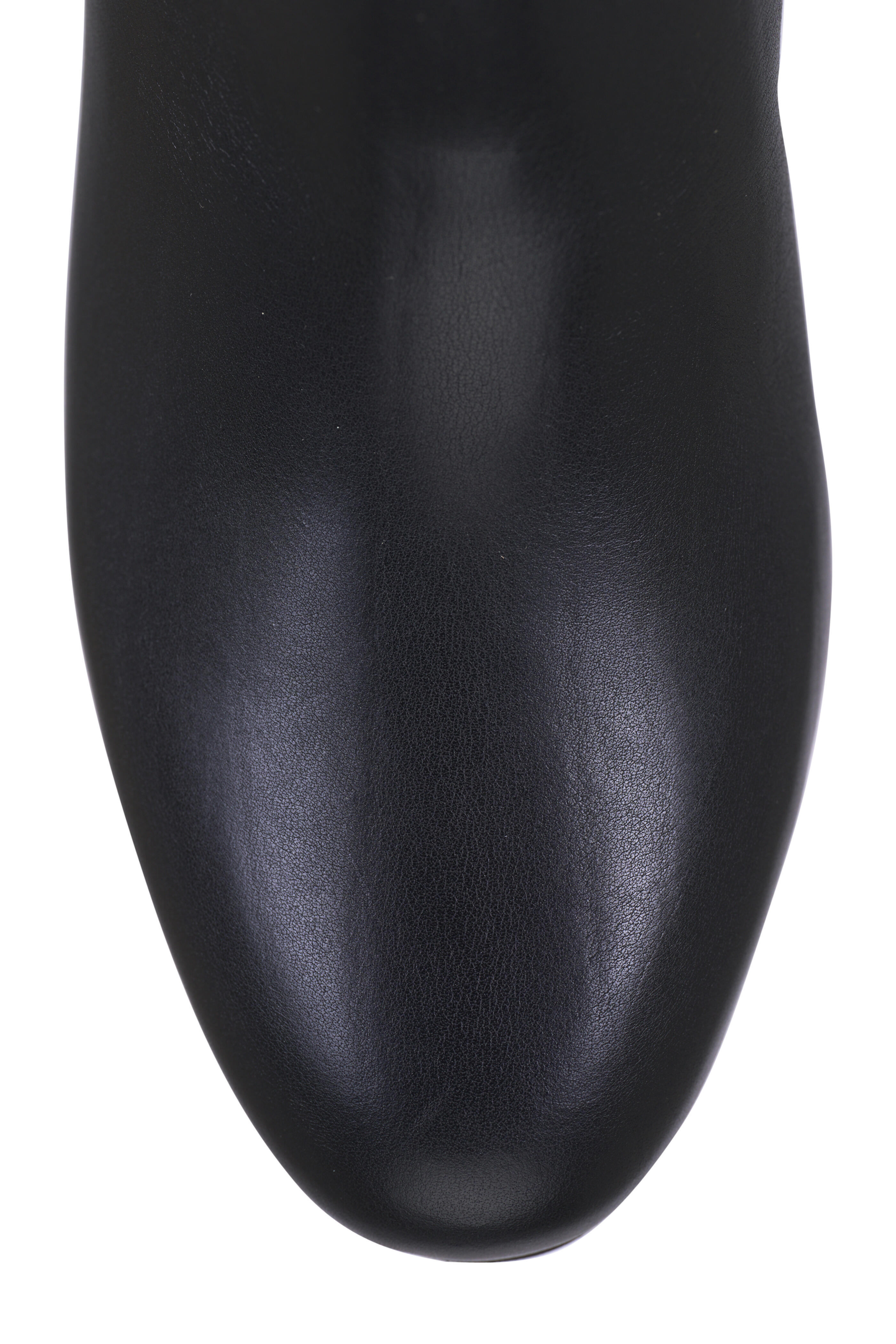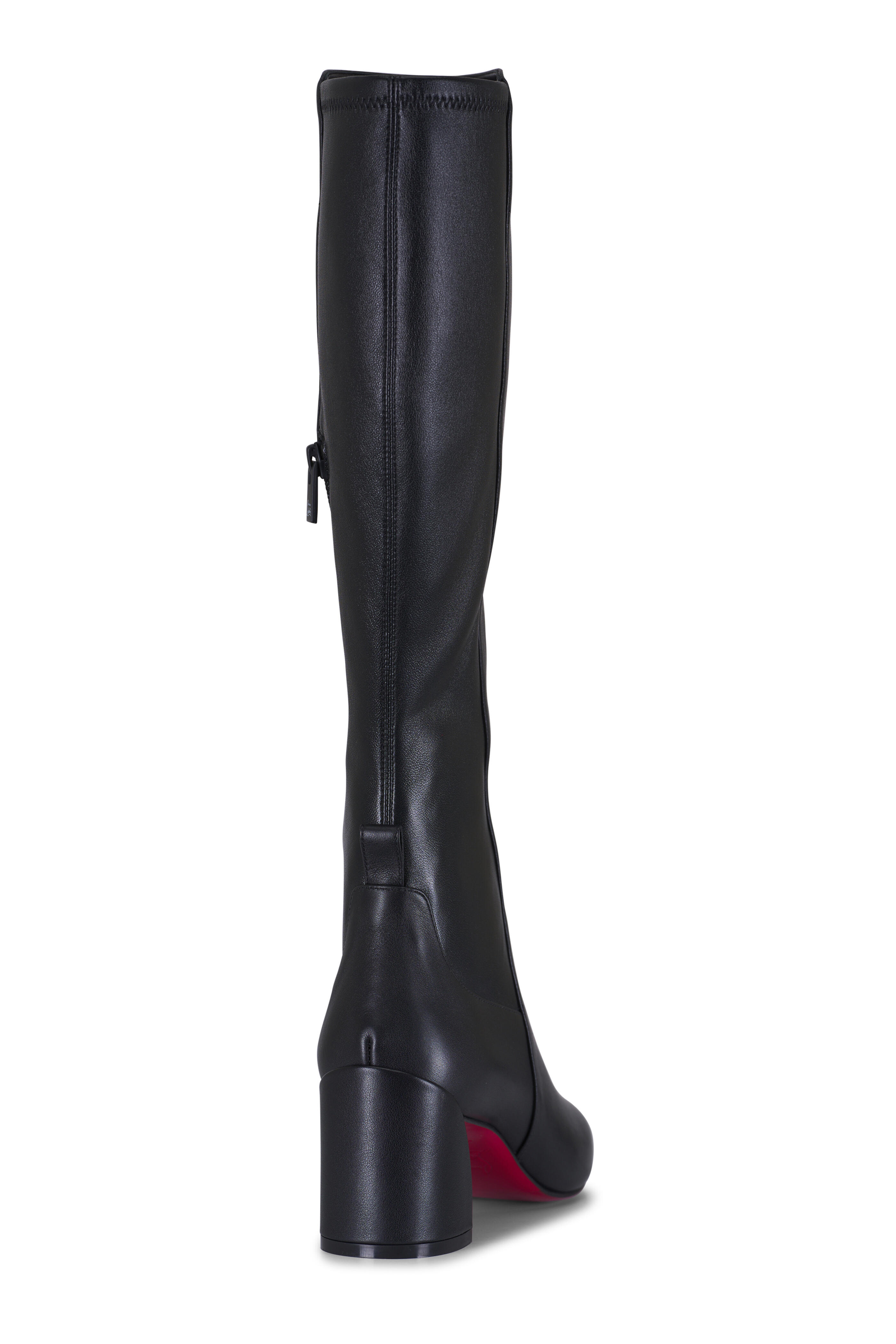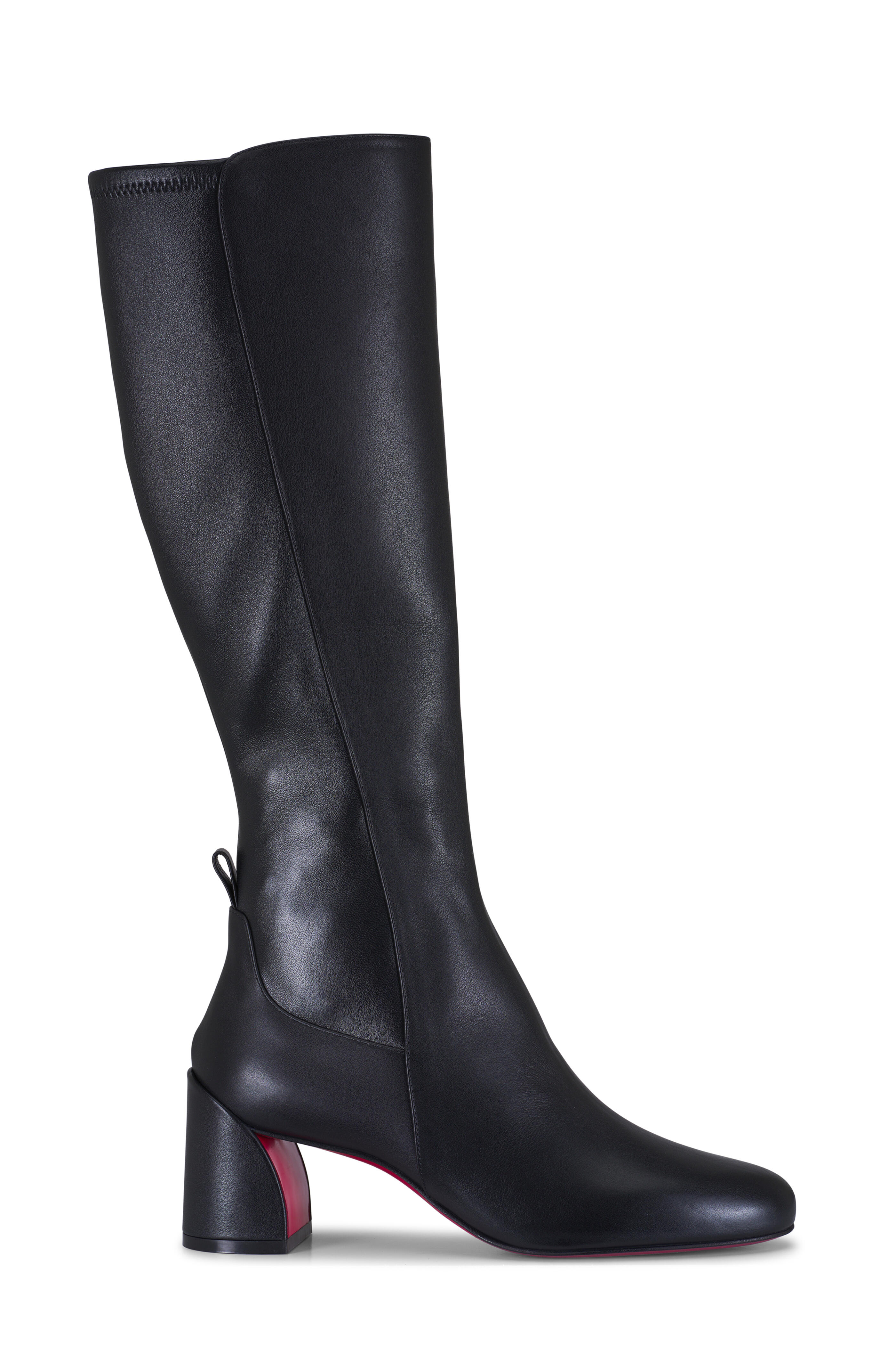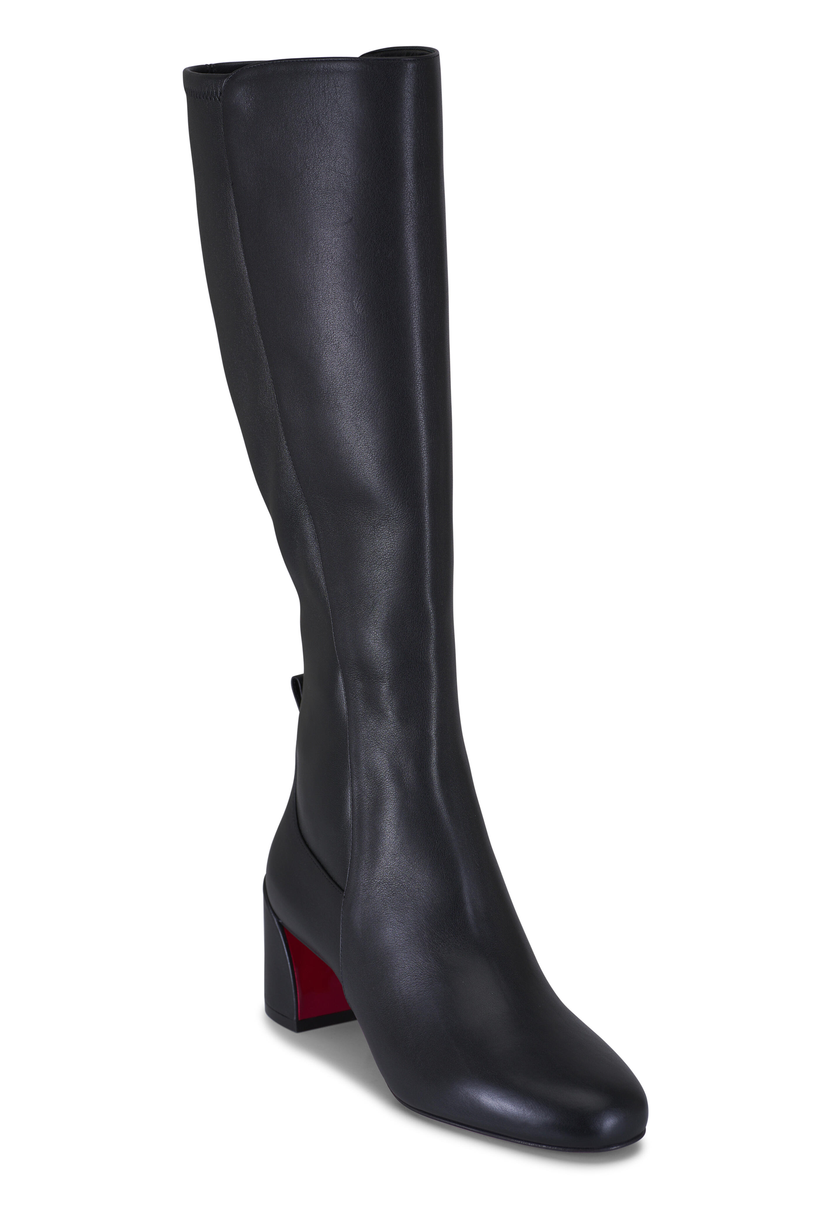 Smooth leather upper. Round toe. Side zip closure. Leather lining and insole. Signature red lacquer sole; rubber soled heel. Made in Italy. Heel measurement: 55mm. 16" shaft height (from bottom of zip).