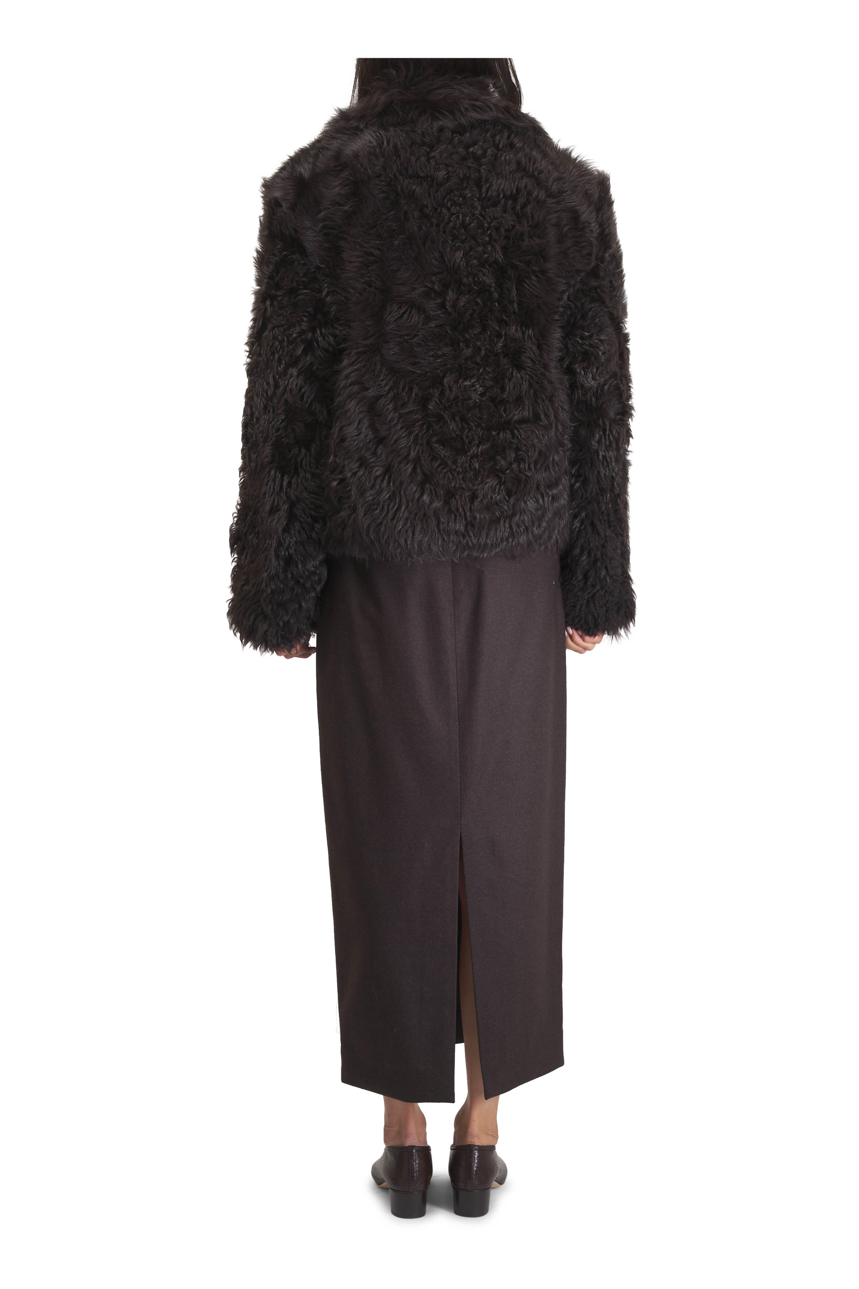 Slit Chocolate Wool & Cashmere Skirt
