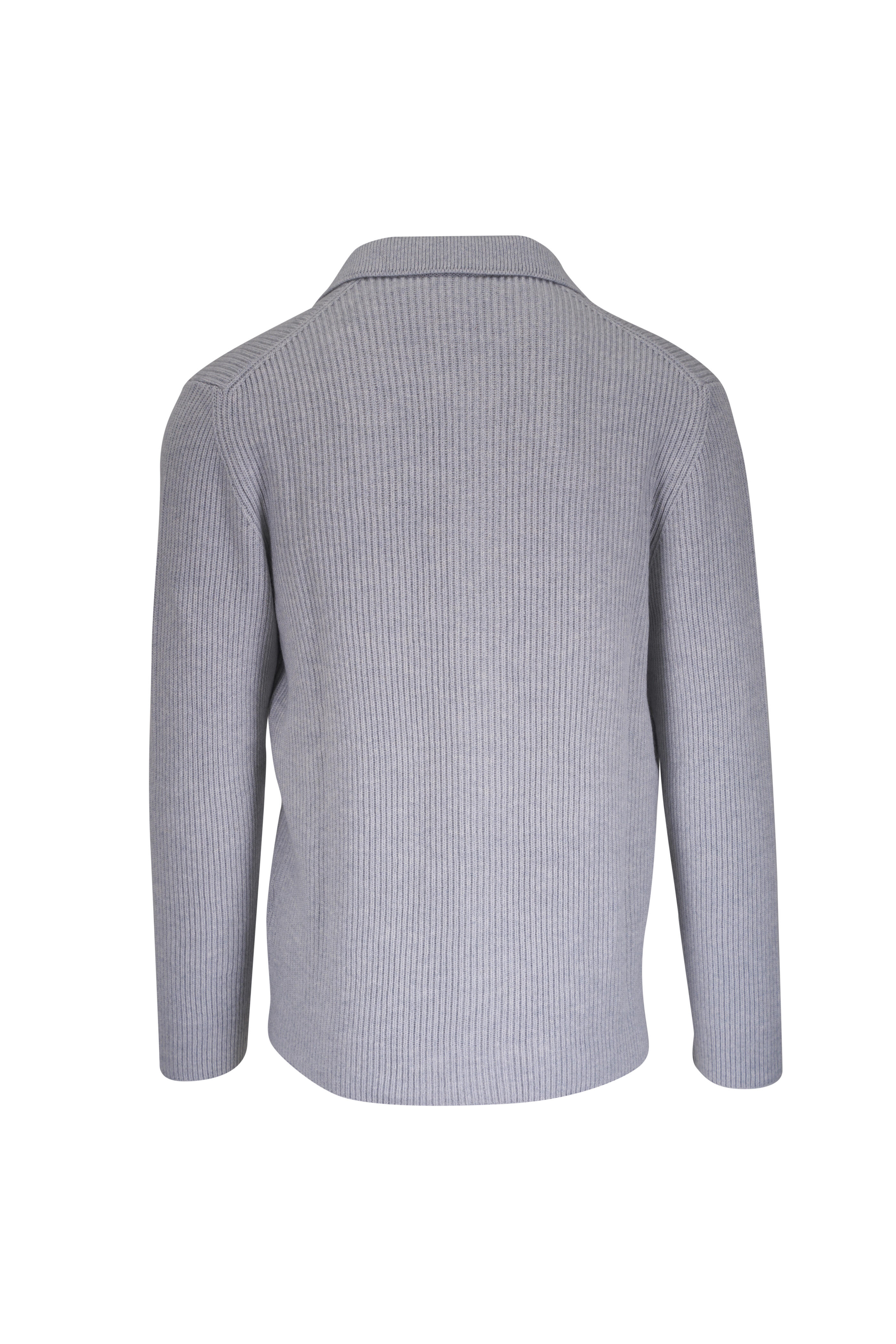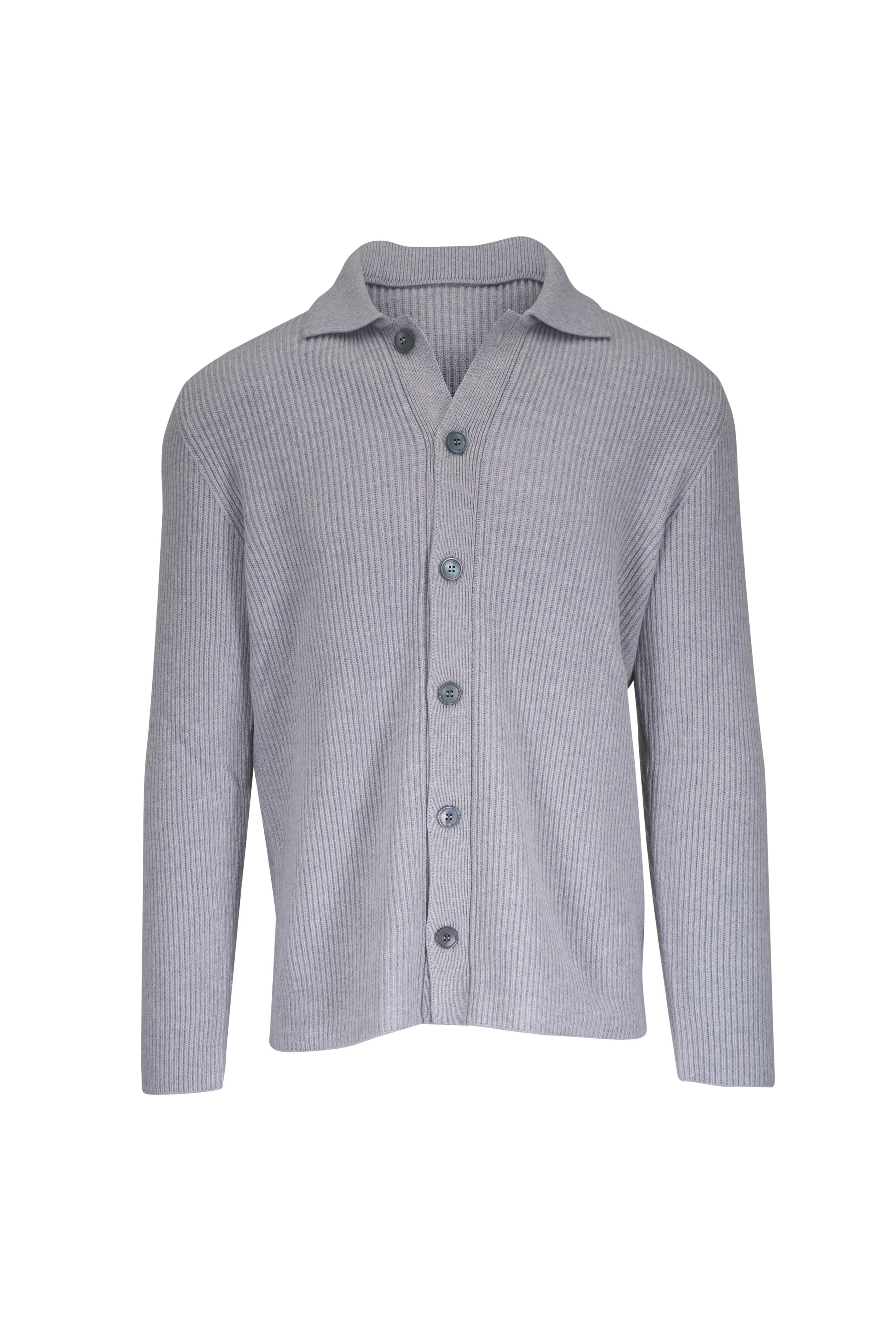 Spread collar. Front button placket. Made in Italy. 100% cashmere. Hand wash.