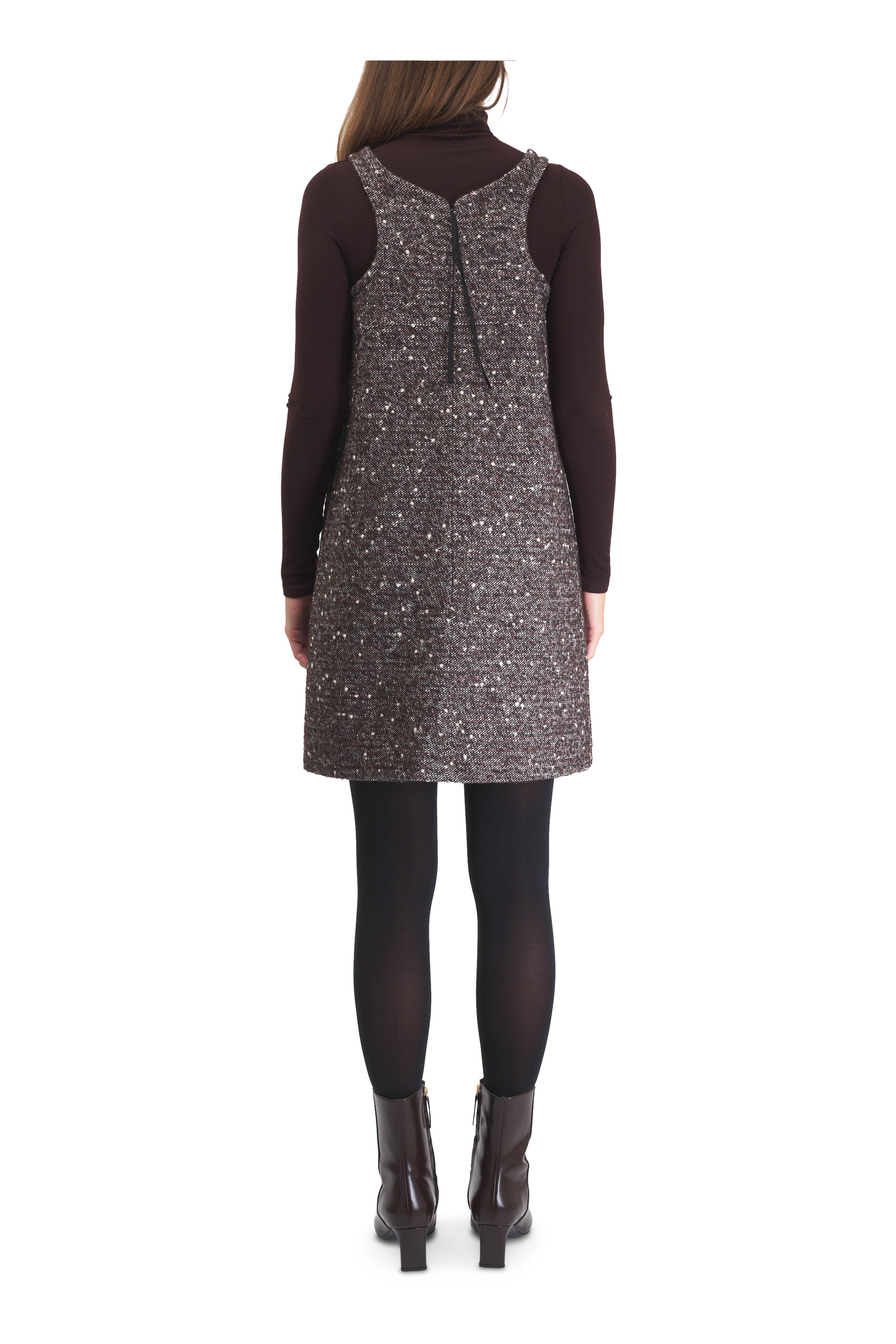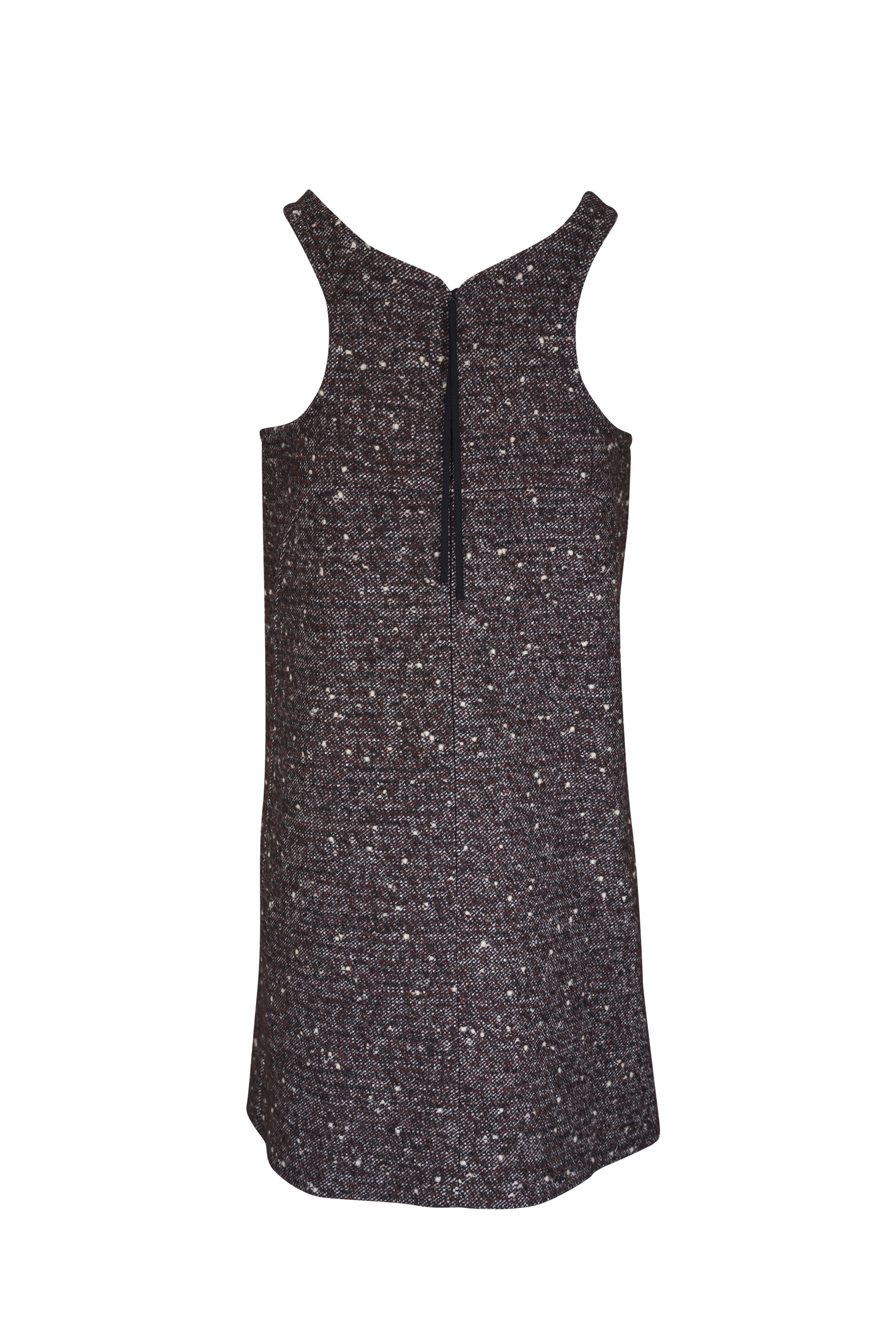 Scoop neckline. Concealed back zip. Side slip pockets. Imported. 36" shoulder to hem. 42% wool, 29% polyacrylic, 20% polyester, 6% polyamide, 3% other fabrics; lined. Dry clean.