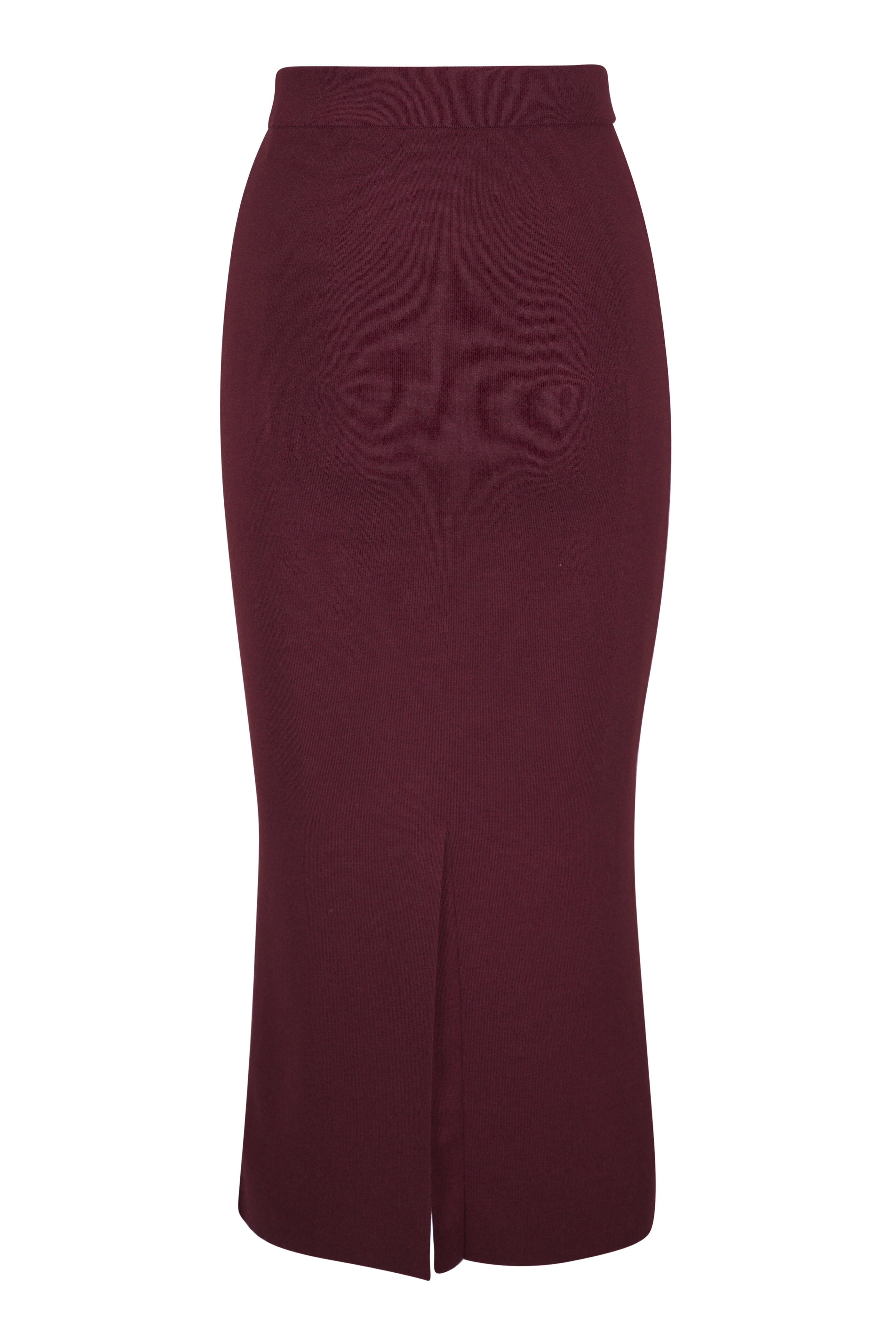 Elasticized waistband. Pull-on style. Back slit. Imported. Approximately 33" waist to hem (measurements taken from size XS). 59% virgin wool, 20% silk, 18% polyamide, 3% elastane. Machine wash.