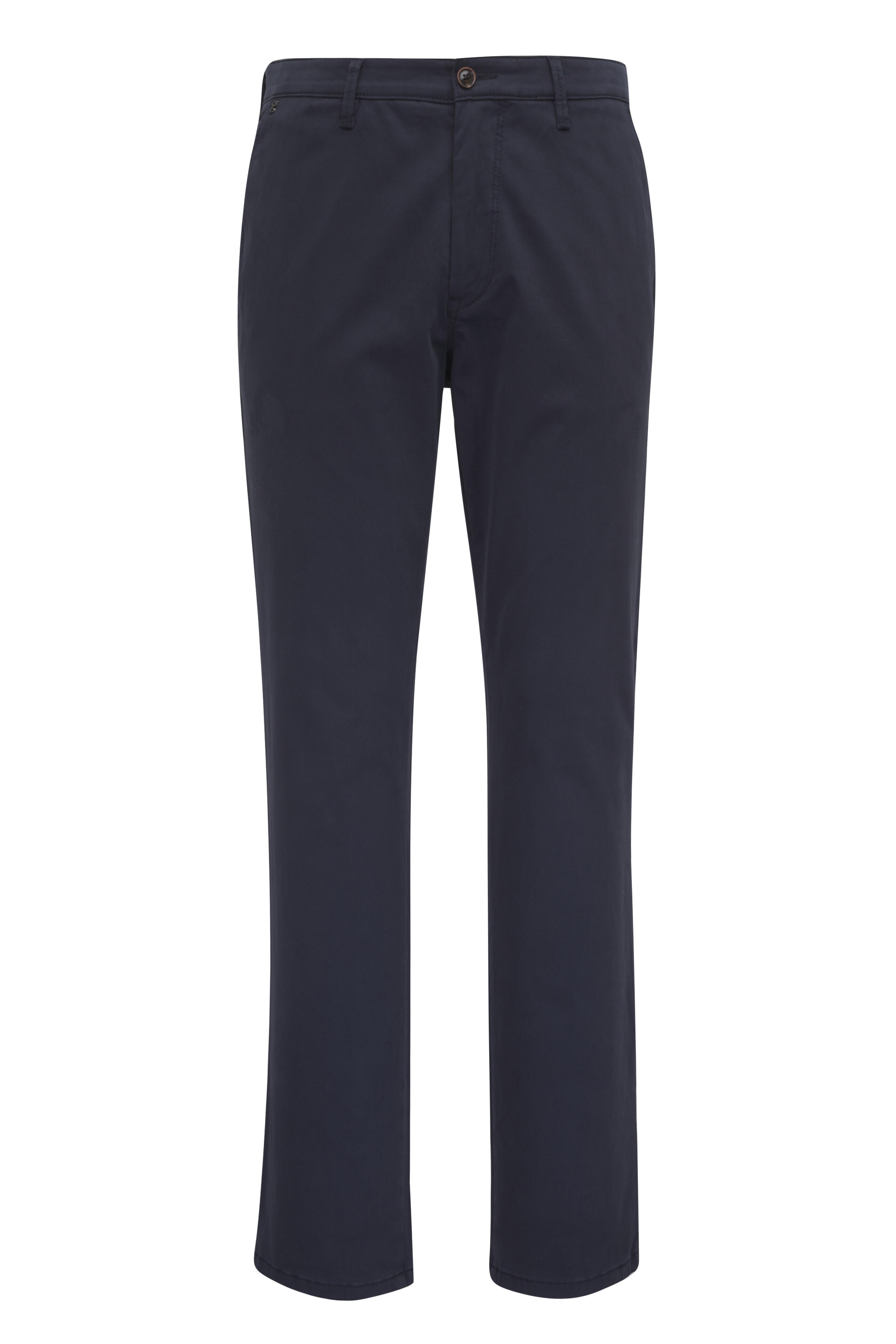 Zip fly; button closure. Banded waist; belt loops. Side slip pockets; back buttoned welt pockets. Imported. Inseam: 33". Modern fit. 97% cotton, 3% elastane. Machine wash.