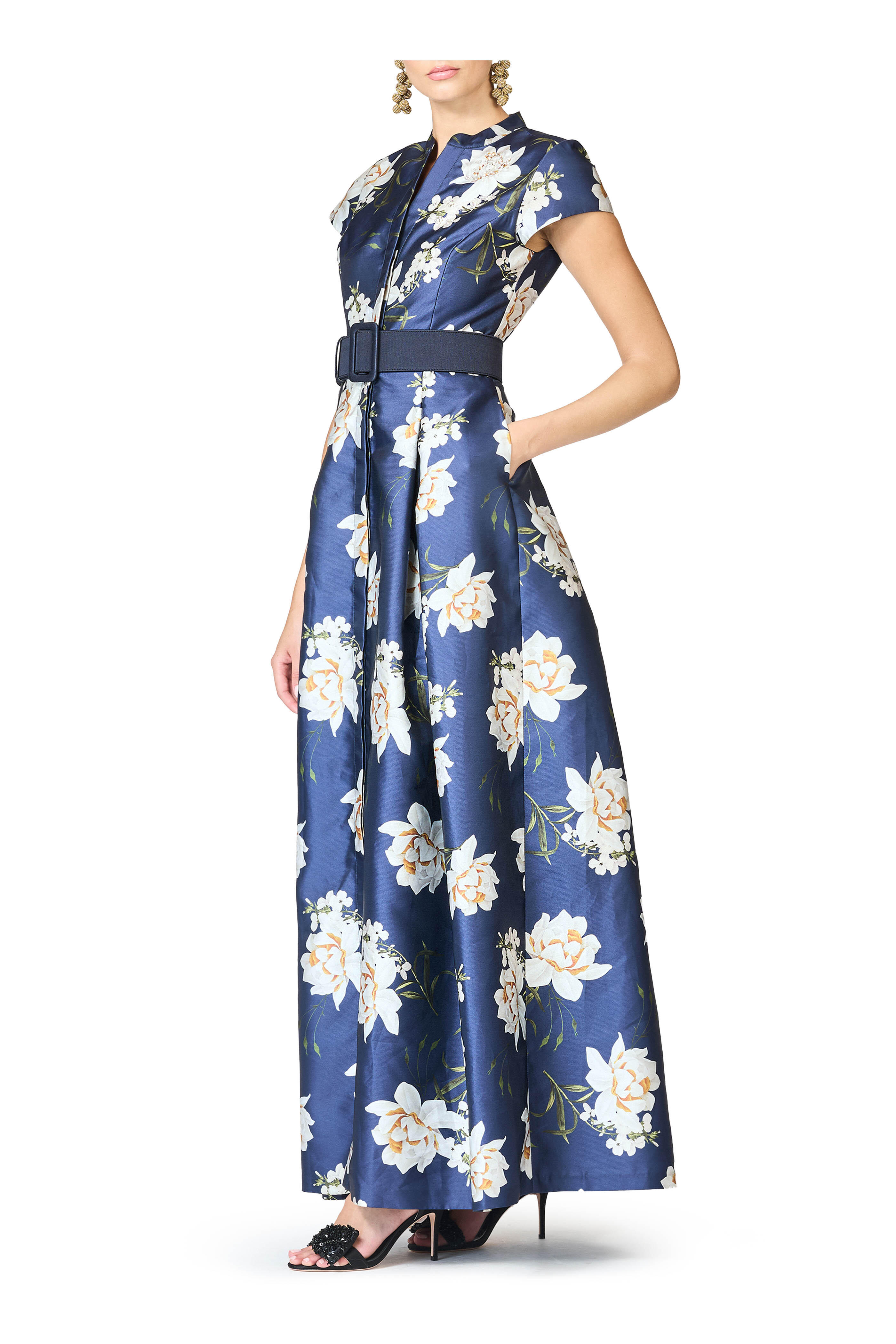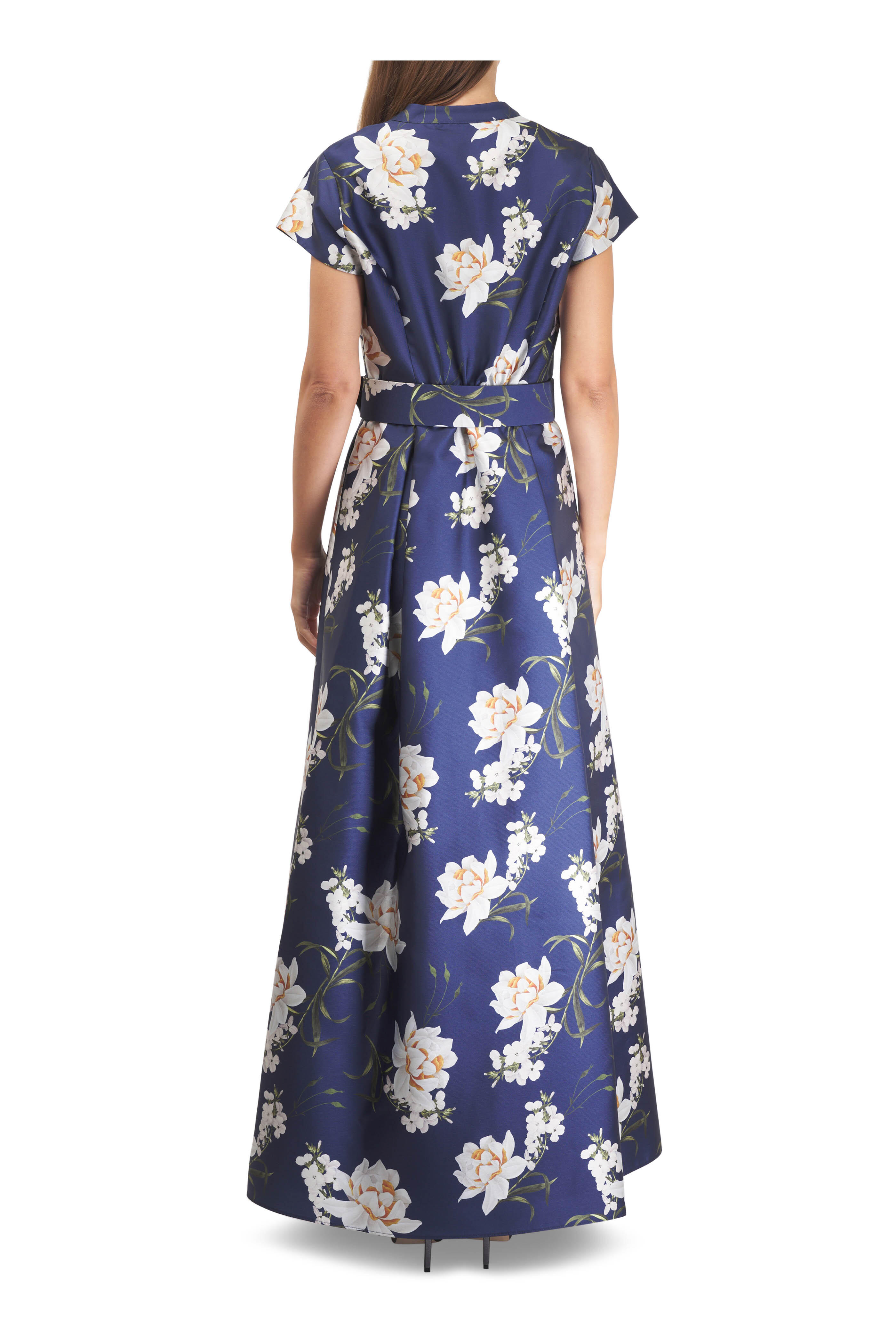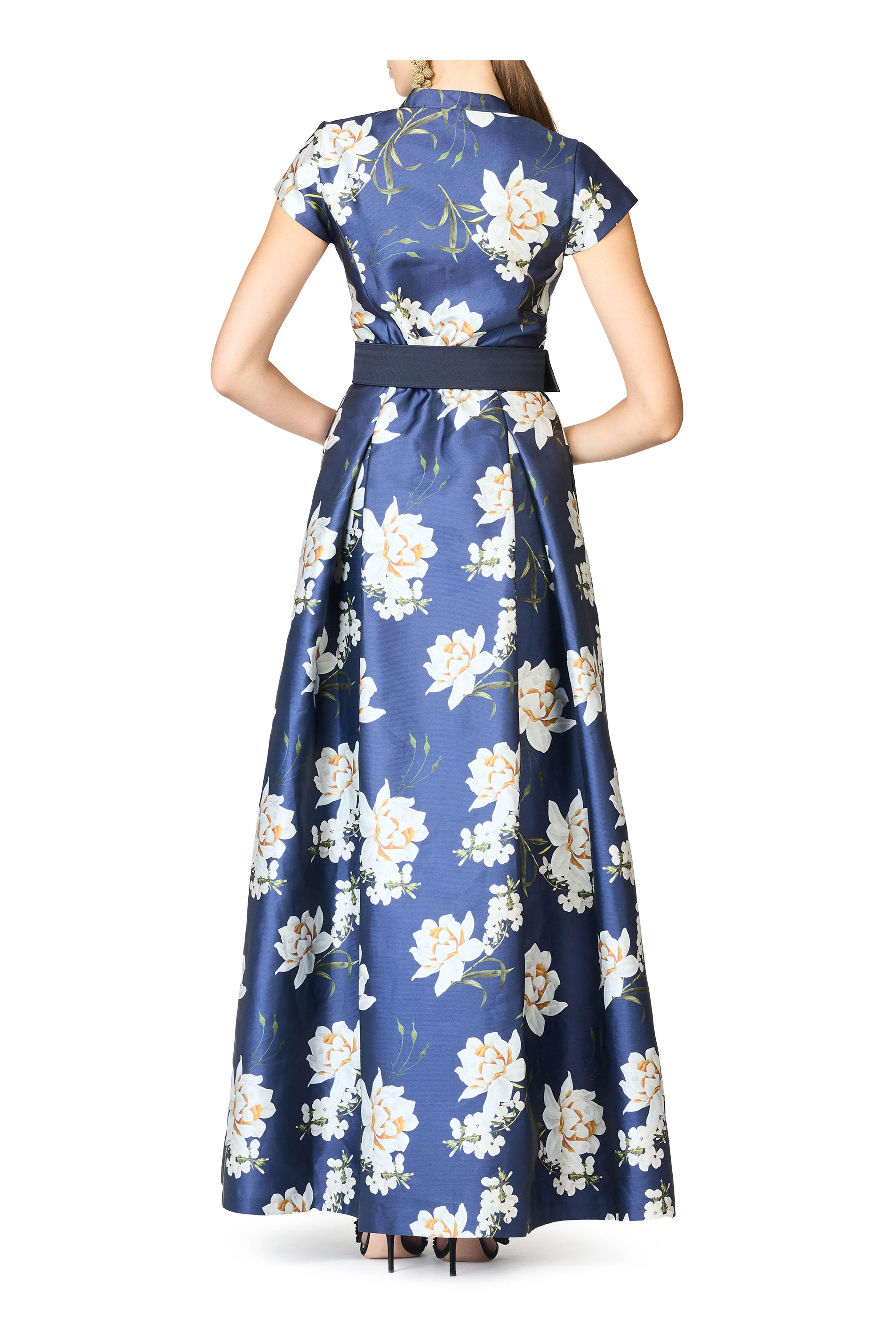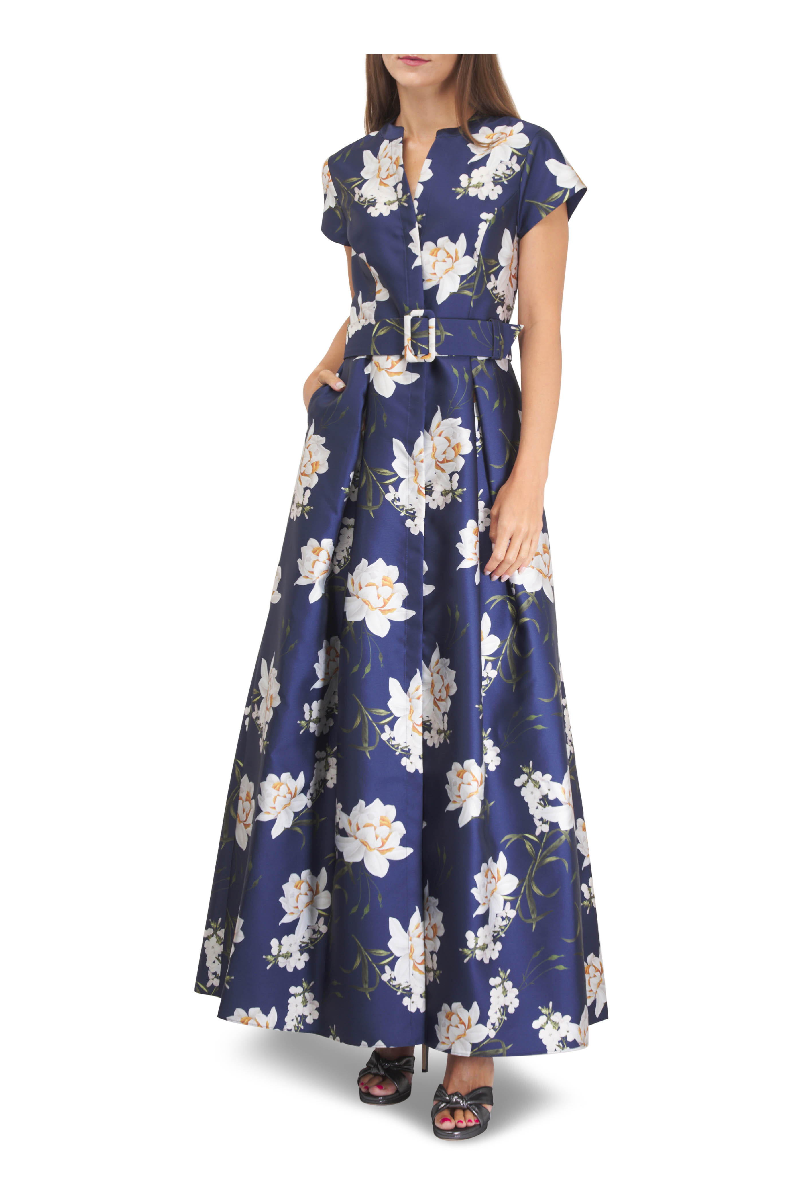 Marta Navy Narcissus Floral Print Gown